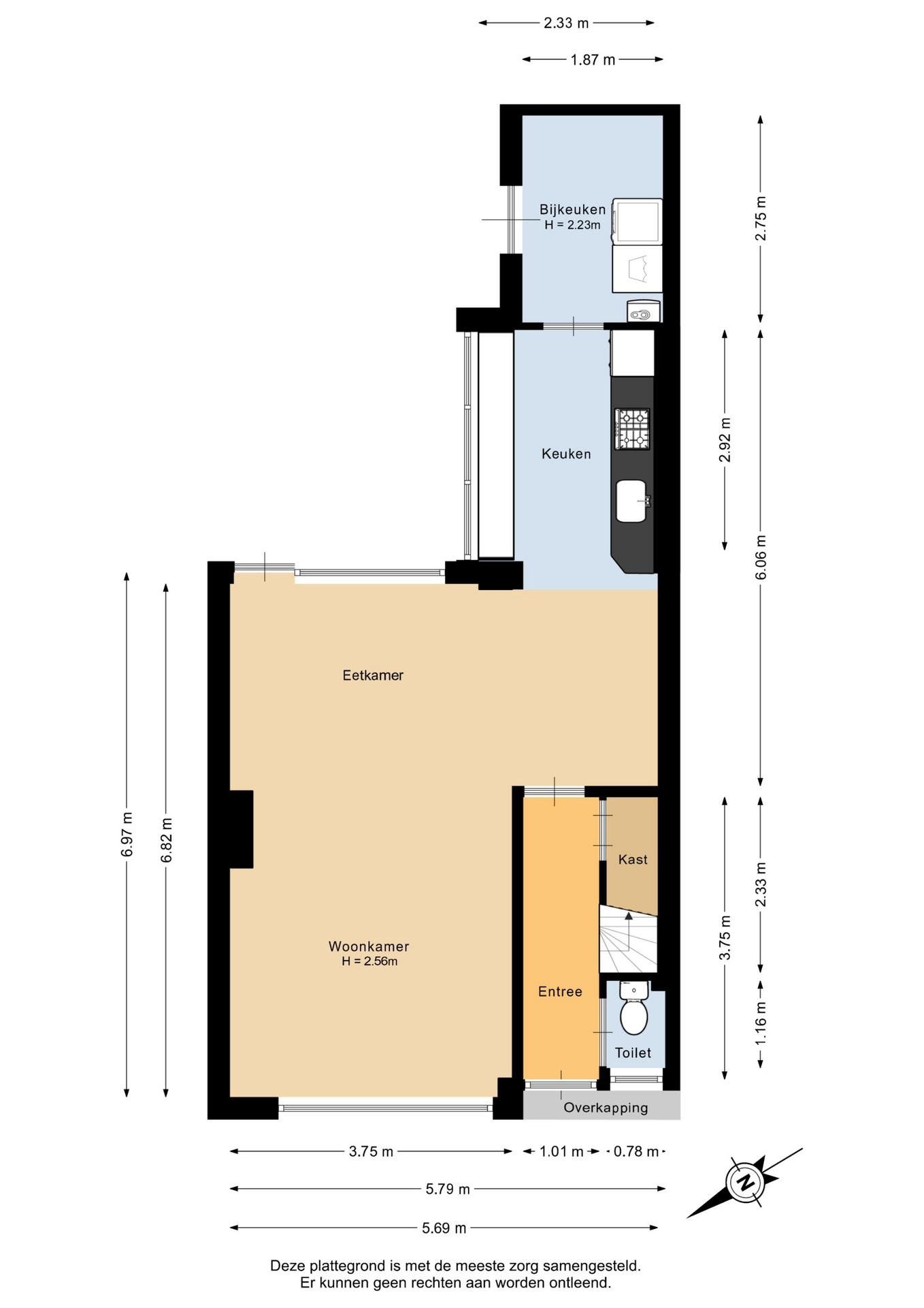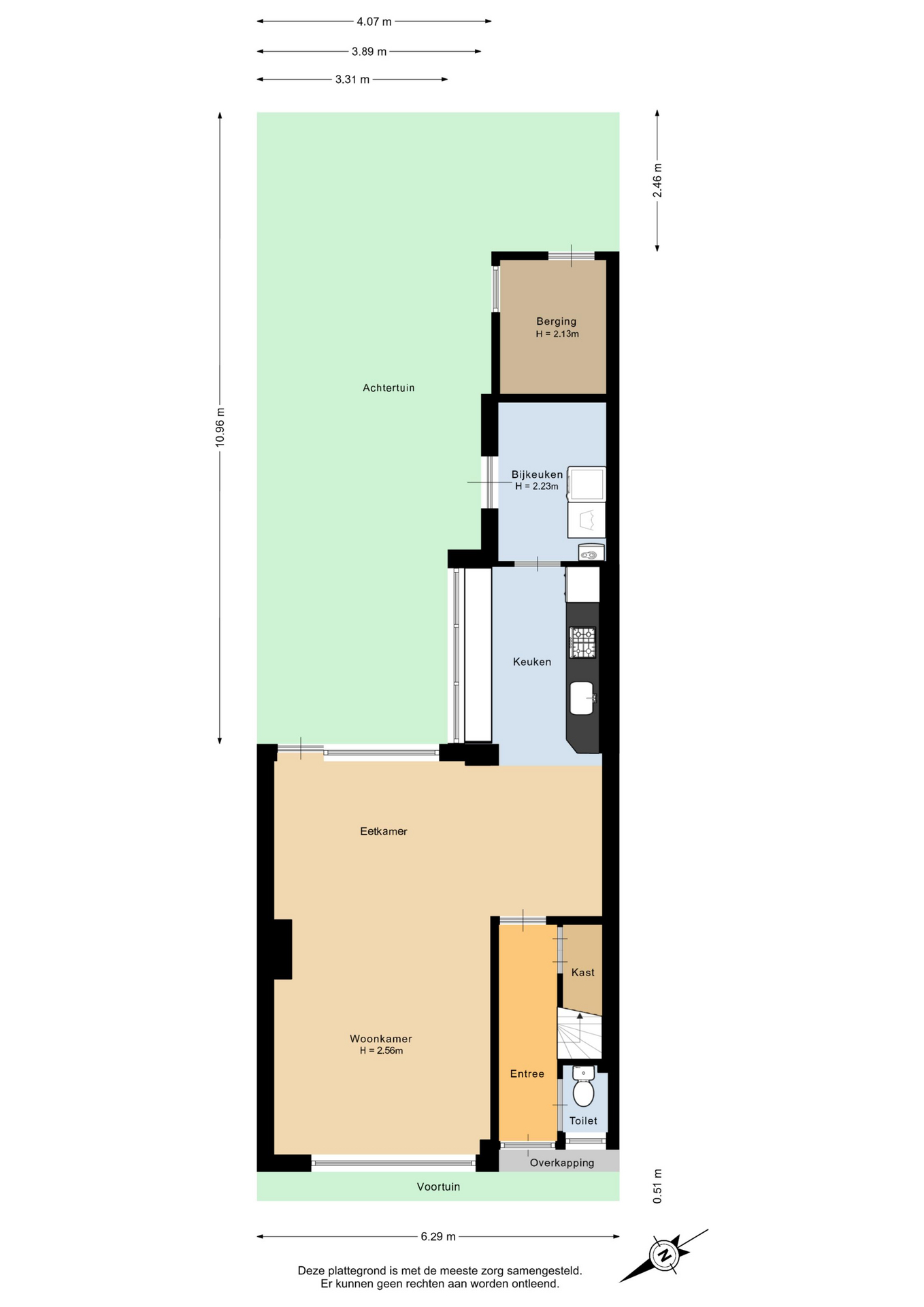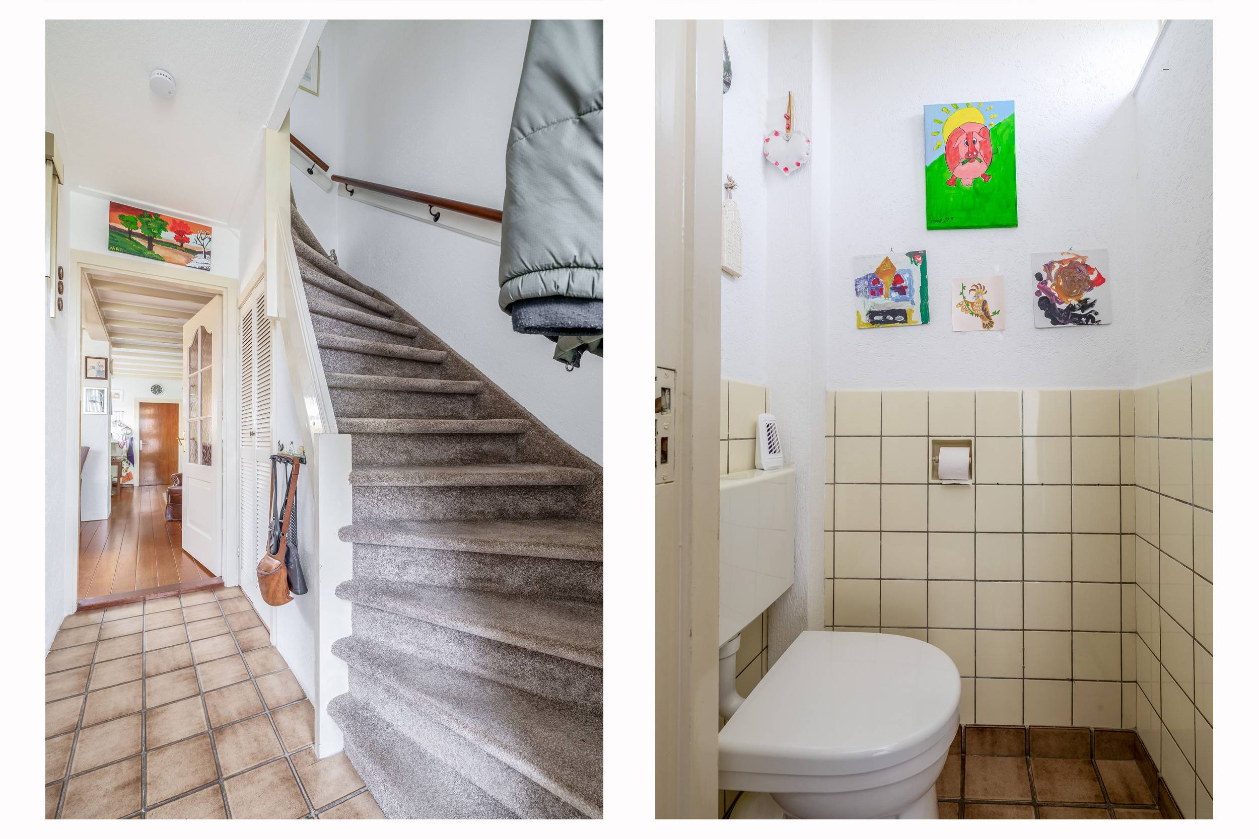 Voor de woning een groenperkje en parkeerhavens. Indeling van de woning is als volgt: entree, hal met meterkast en het toilet. Praktische trapkast en trapopgang.