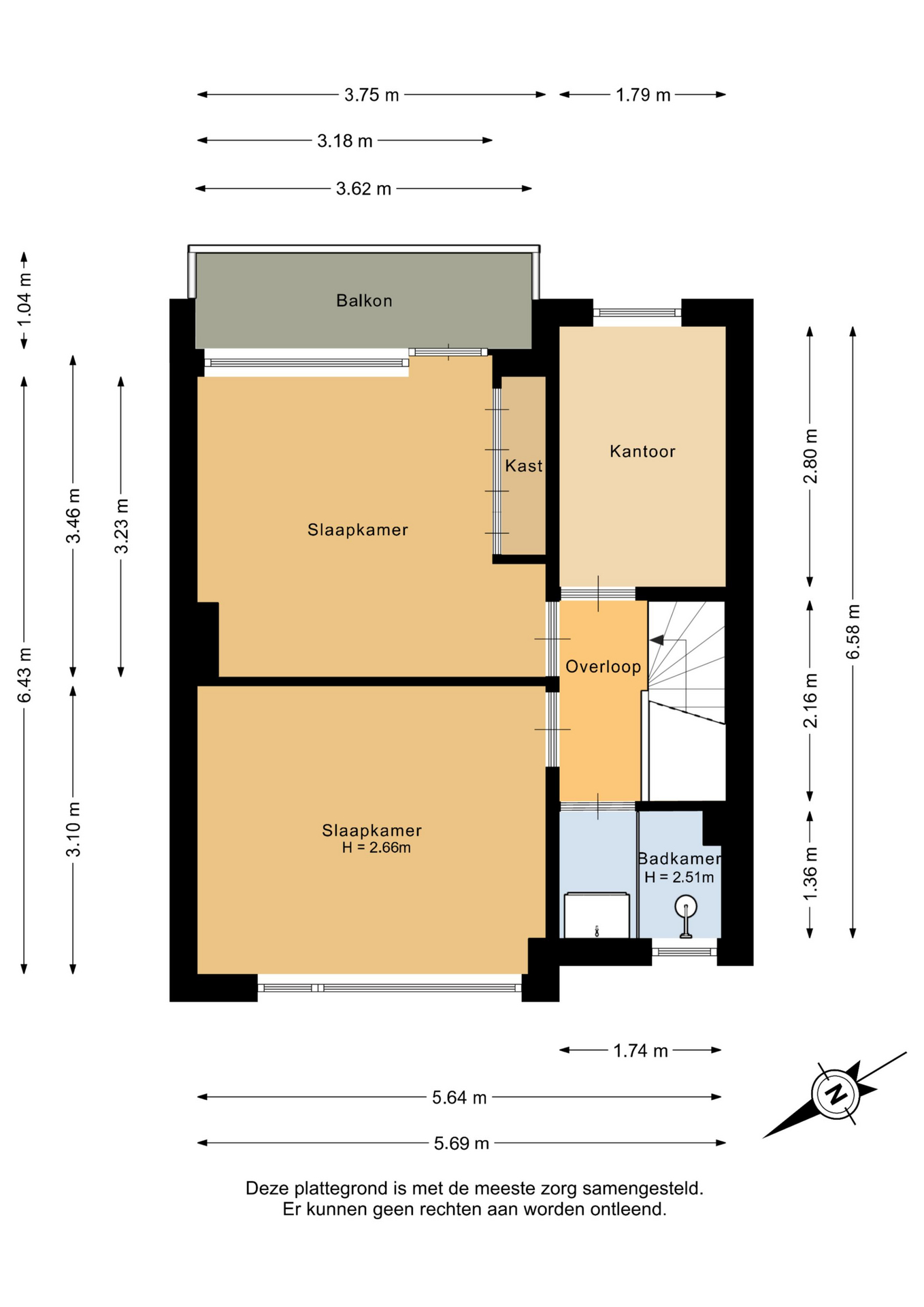 Op de verdieping twee ruime slaapkamers en een derde kantoorkamer/babykamer.