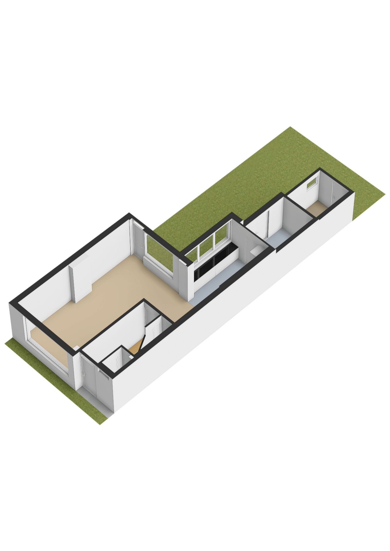 Toegang naar de lichte doorzon woonkamer met veel ruimte doordat de keuken zich in de aanbouw bevindt.