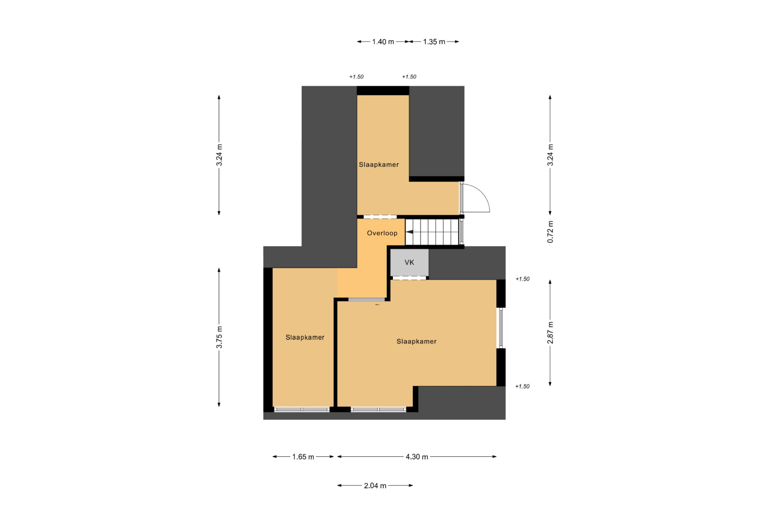 Op de eerste verdieping bevinden zich drie (slaap)kamers. De hoofdslaapkamer beschikt over een vaste kast.