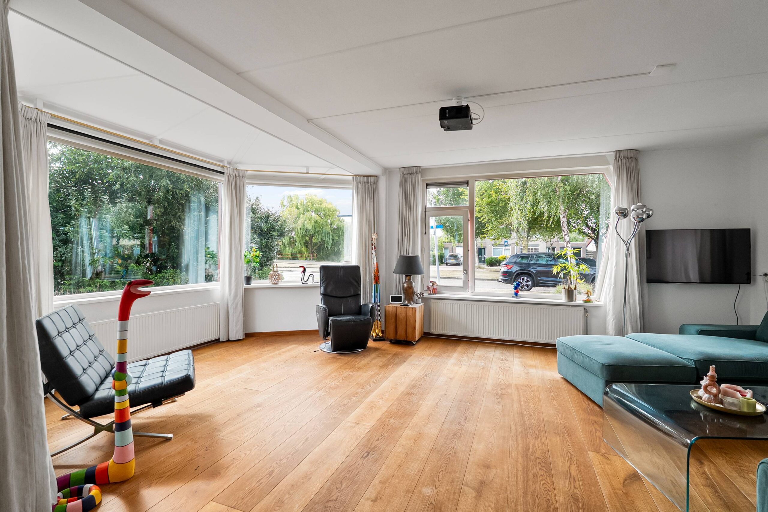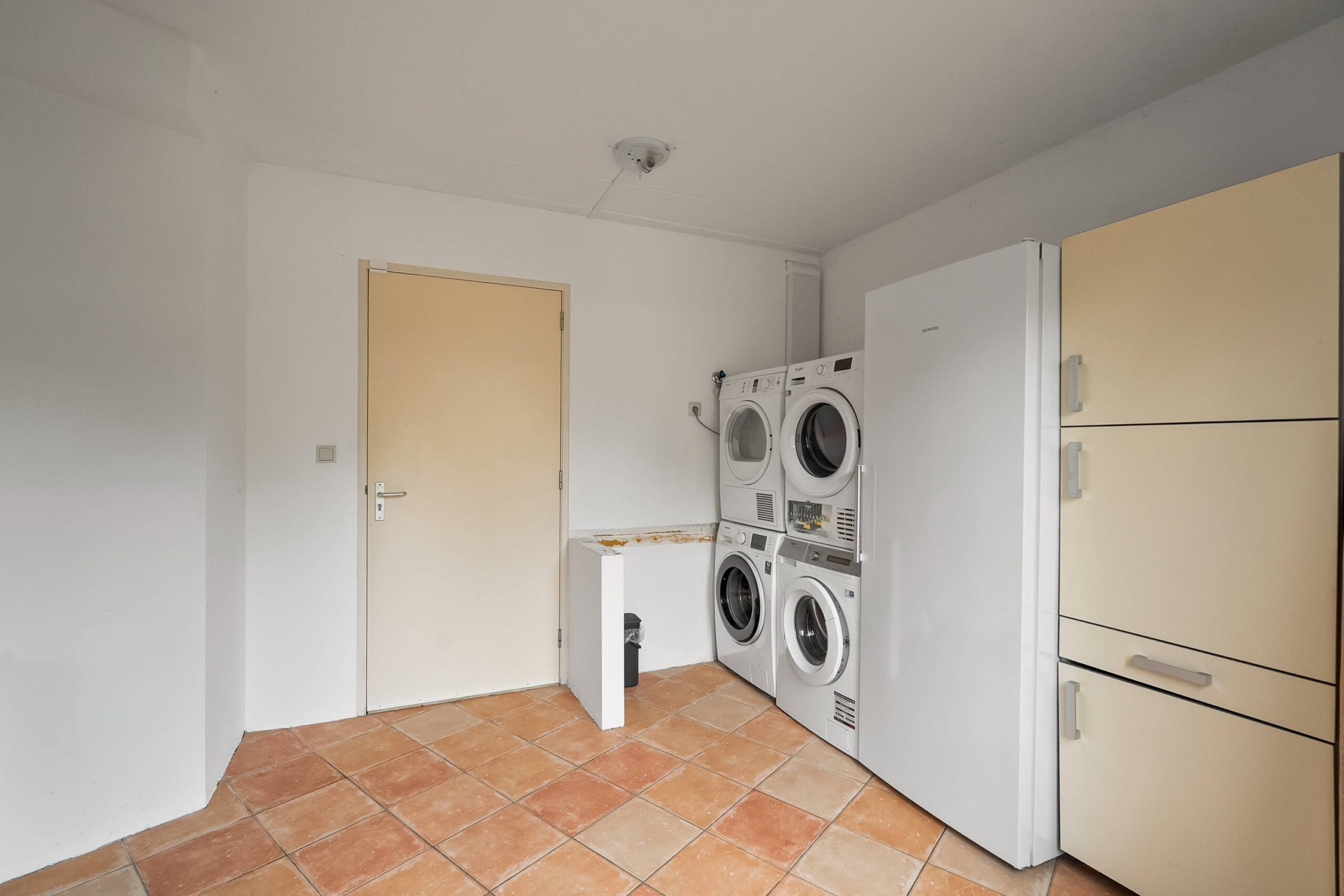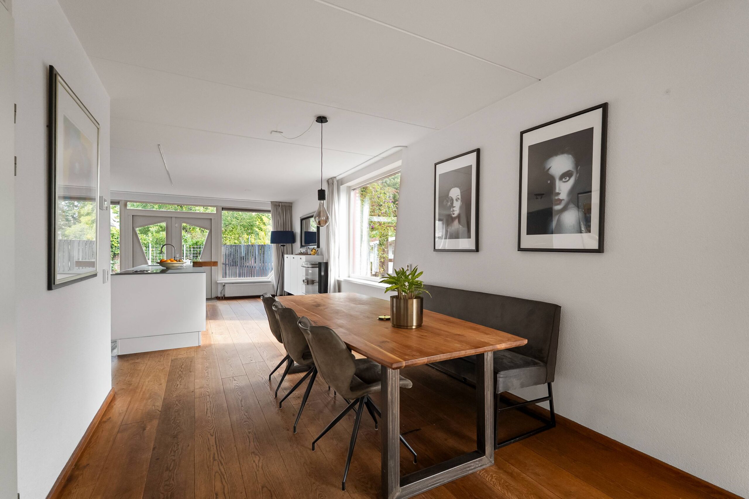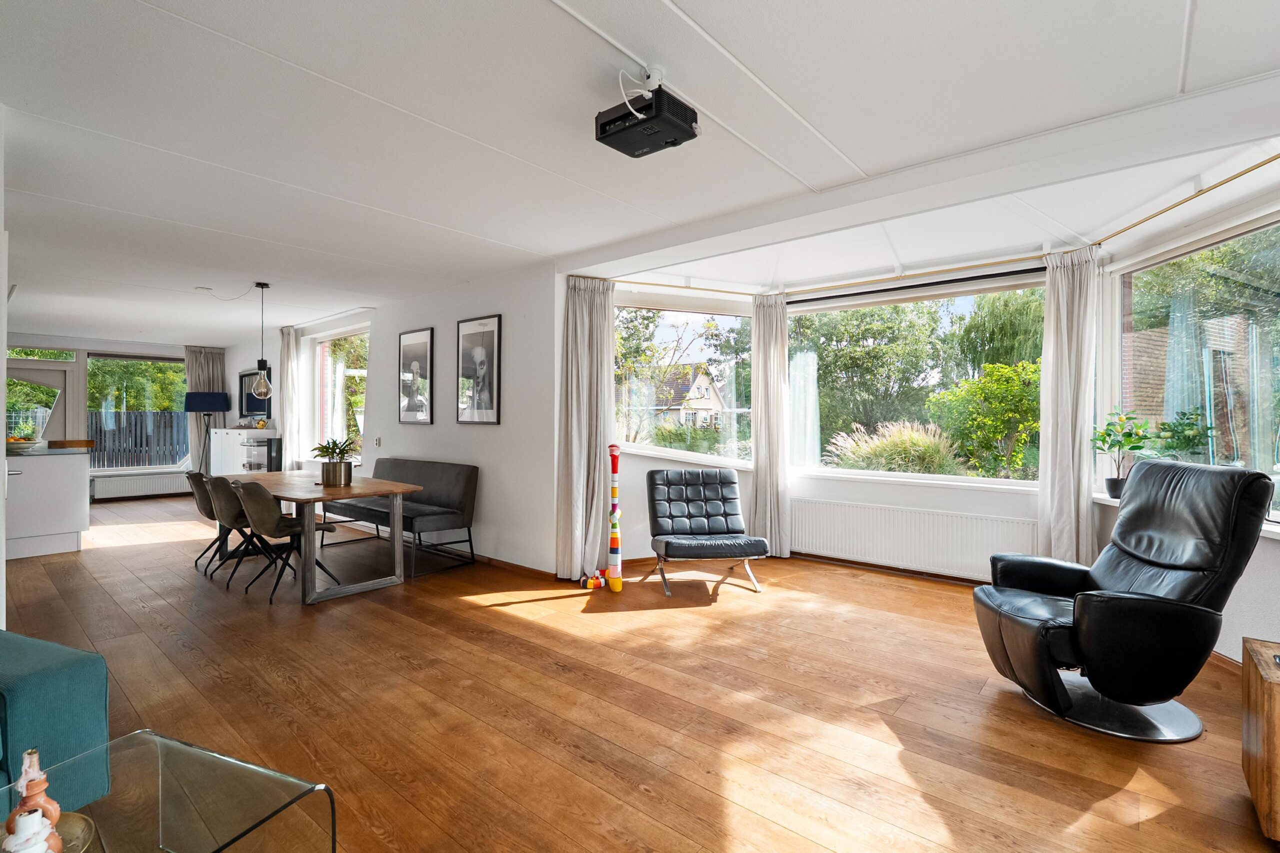 De woonkamer is erg licht dankzij de erker en grote raampartijen aan de voorzijde. Aan de achterzijde is in 2007 een aanbouw gerealiseerd in dezelfde architectonische stijl. Hier vind je de luxe keuken, uitgerust met een Bora inductiekookplaat met geïntegreerde afzuiging, een koel-vriescombinatie, vaatwasser, stoomoven en Quooker. De keuken staat in verbinding met een praktische bijkeuken met witgoedaansluiting en vanuit hier heb je toegang tot de garage met vliering en elektrische garagedeur.