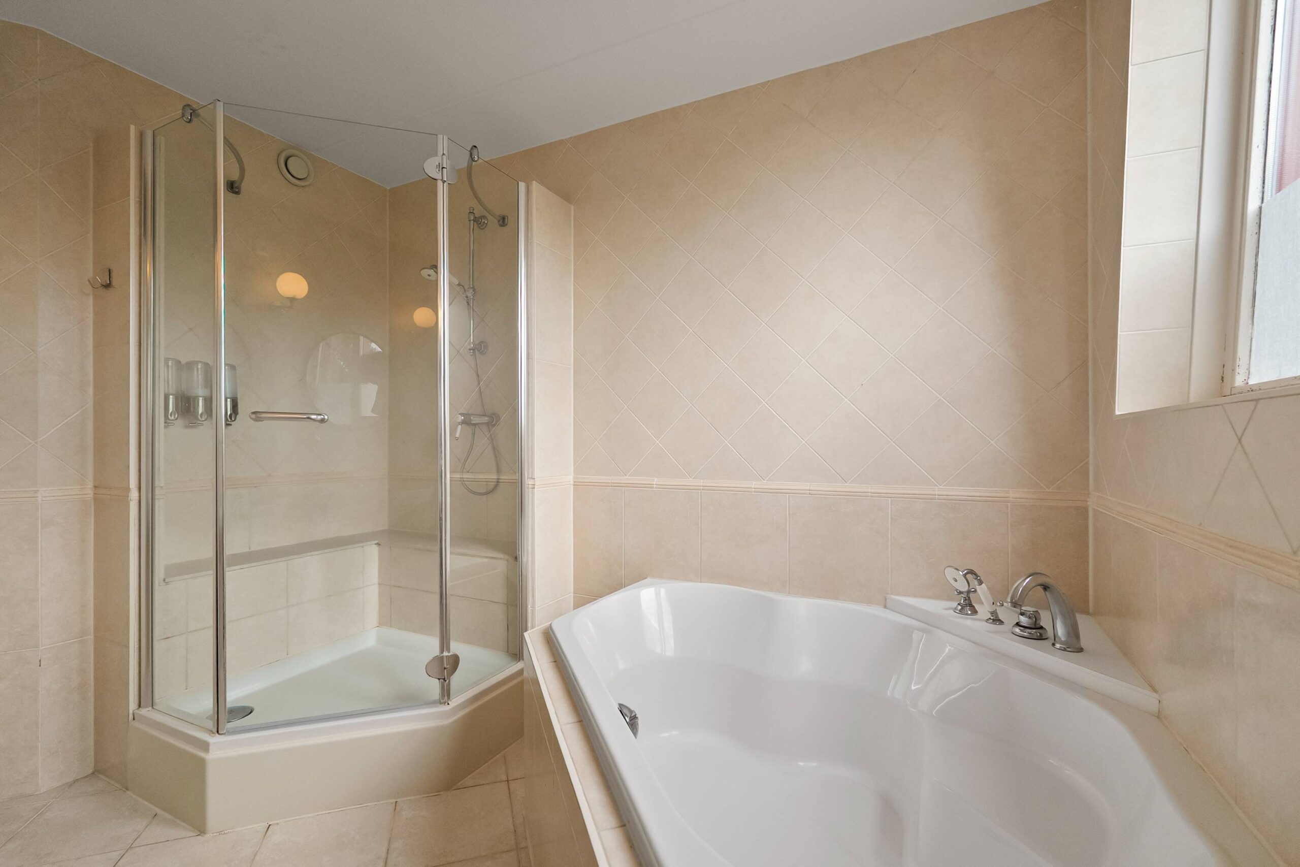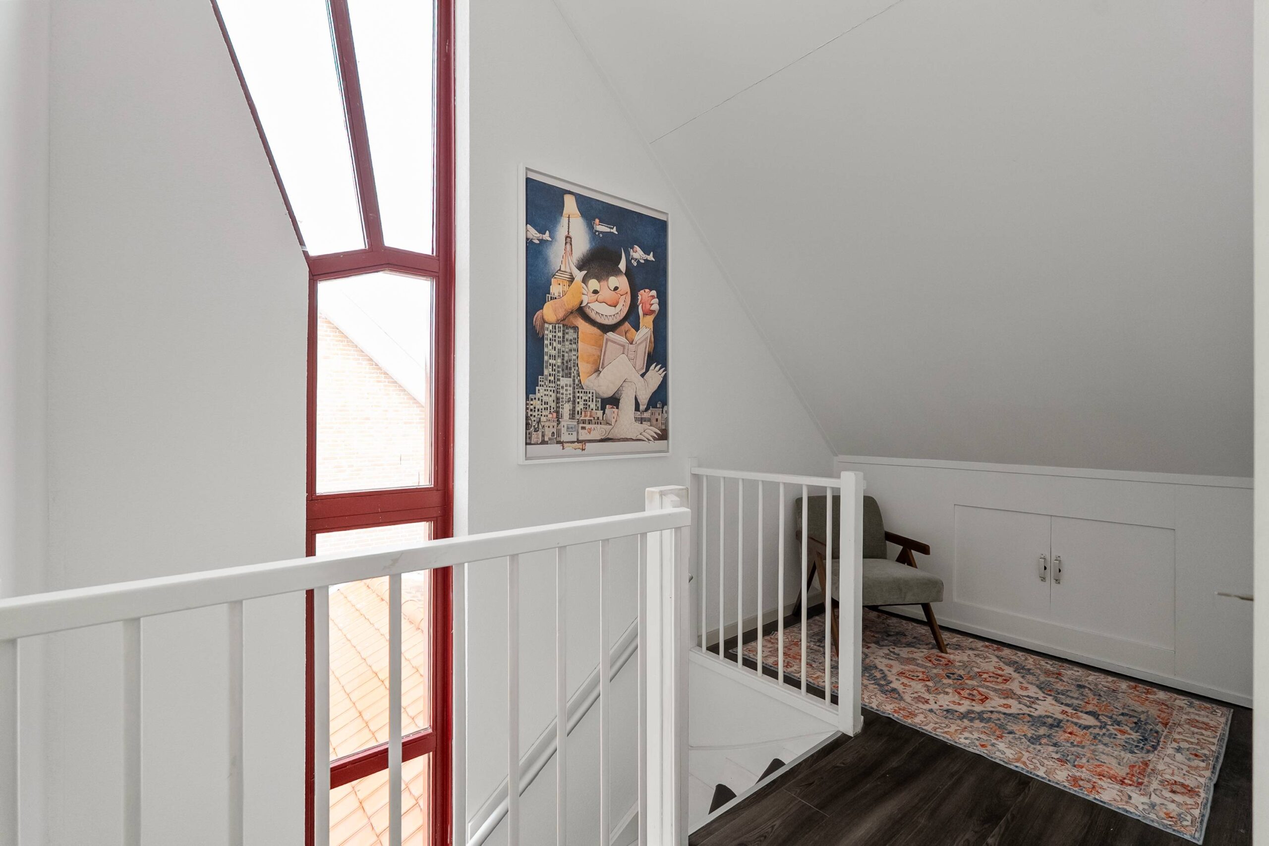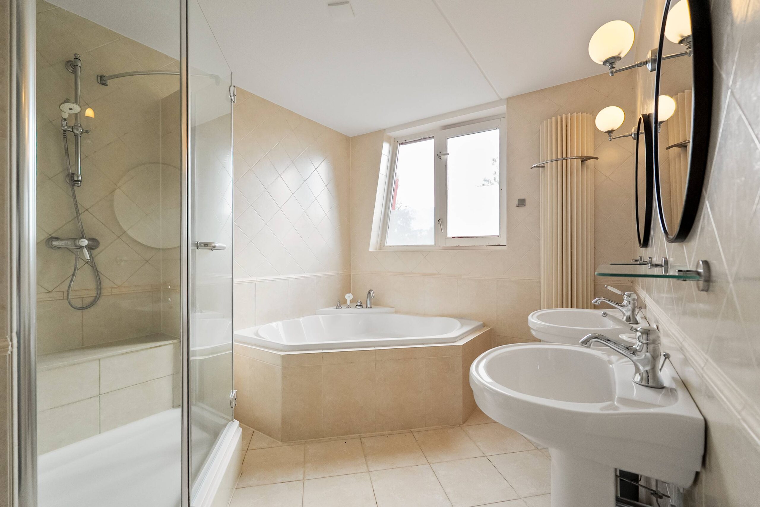 De woning telt maar liefst 5 slaapkamers, verdeeld over de eerste en tweede verdieping. Op de eerste etage bevinden zich 3 slaapkamers, een apart toilet en een complete badkamer met dubbele wastafel, ligbad, douchecabine en handdoekradiator. De hoofdslaapkamer biedt toegang tot een zonnig dakterras. Op de overloop bevindt zich nog een praktische vaste kast.