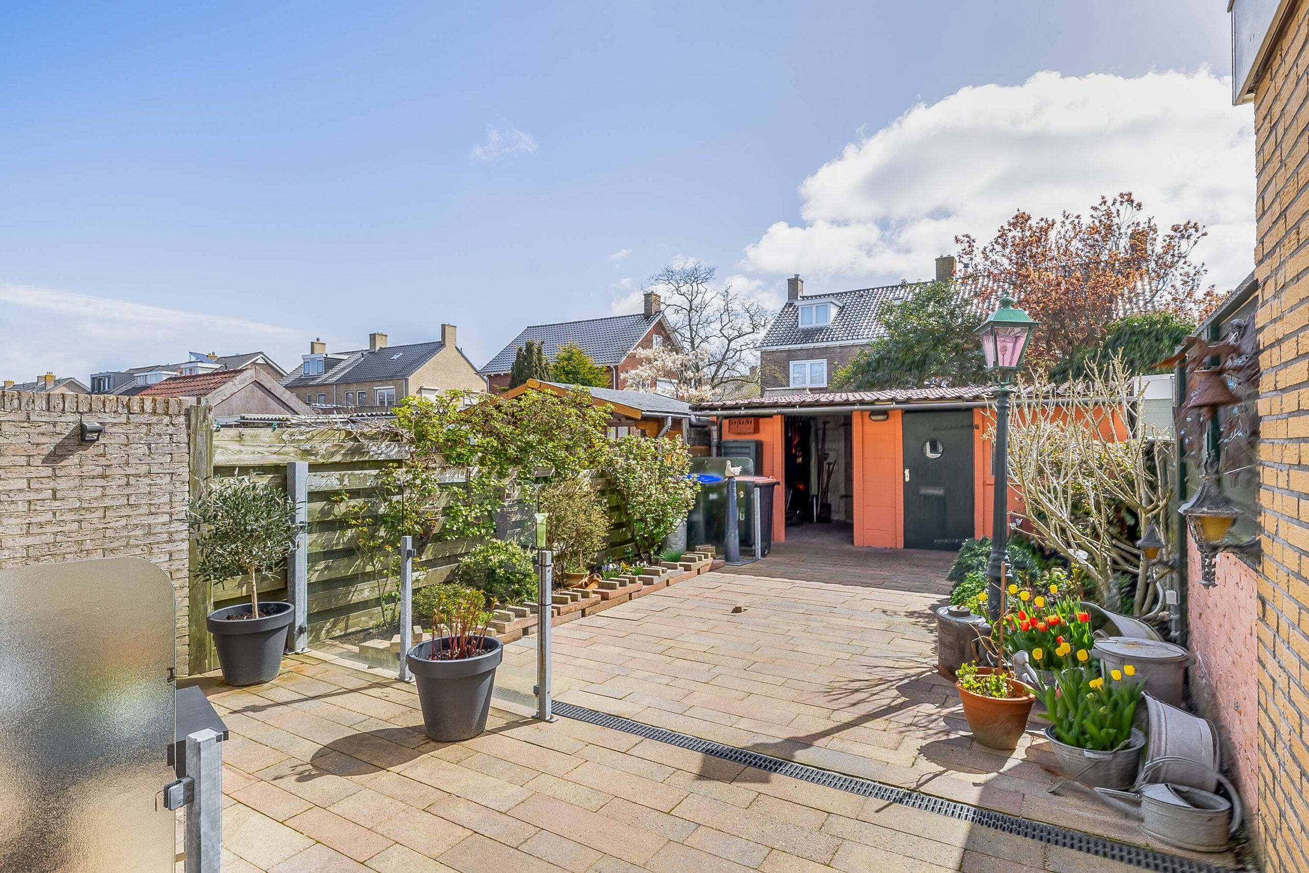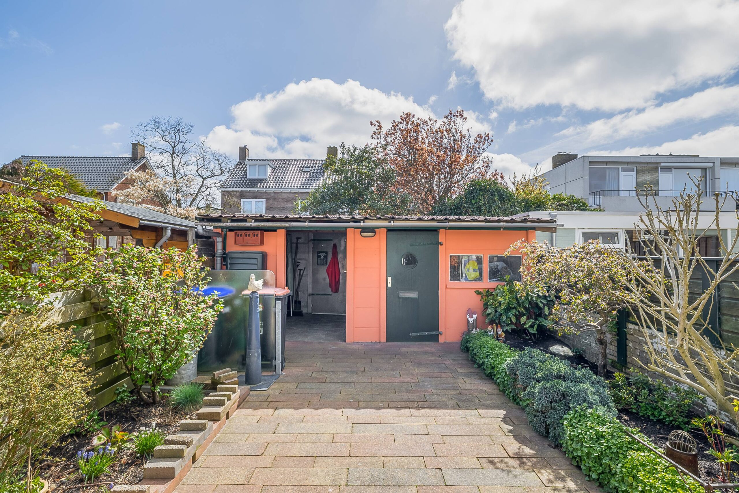 De achtertuin is op het zonnige zuidoosten gelegen en ingericht met bestrating en beplanting. Achterin de tuin staat een stenen berging en via de achterom is de tuin goed bereikbaar.