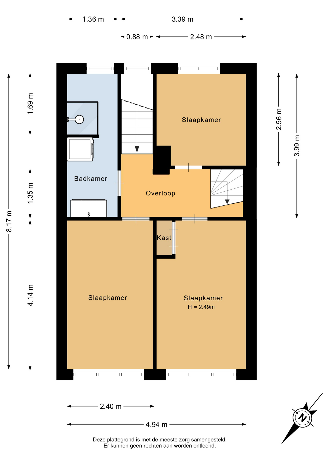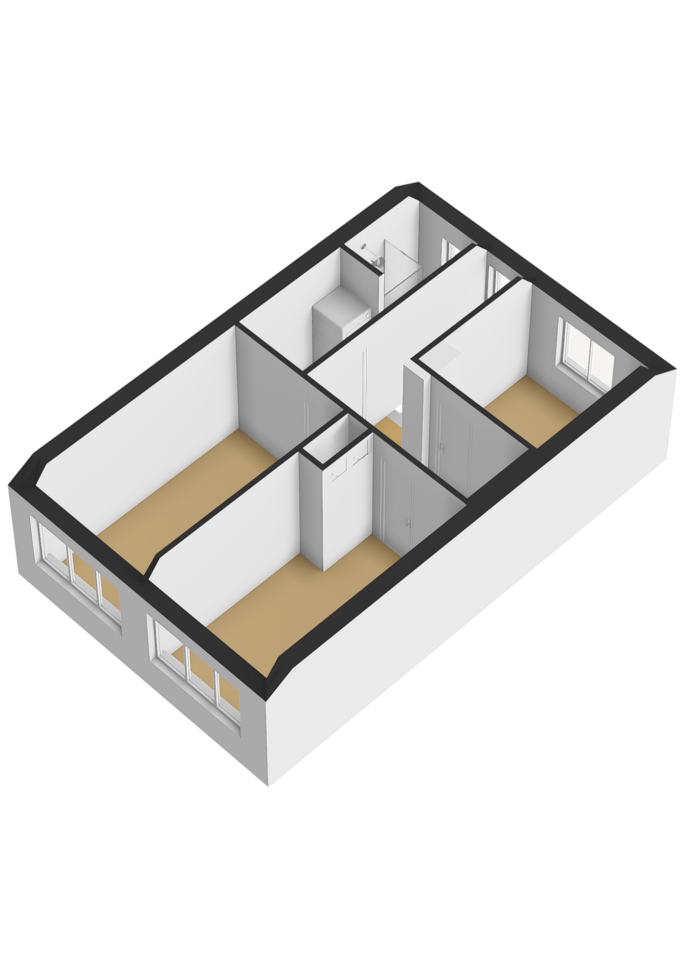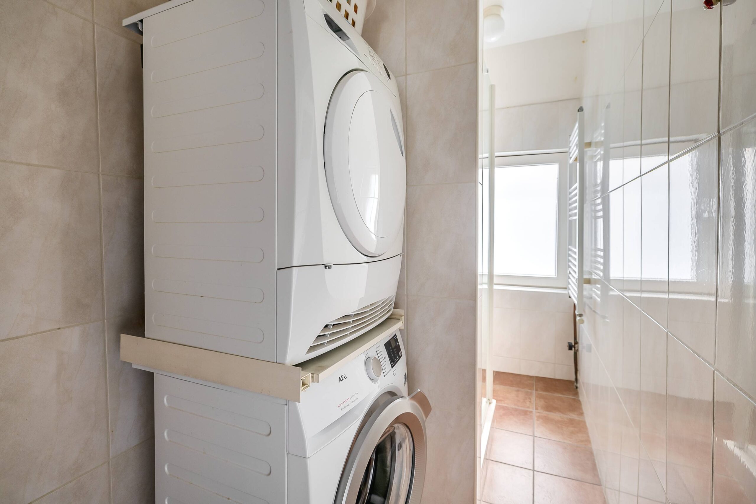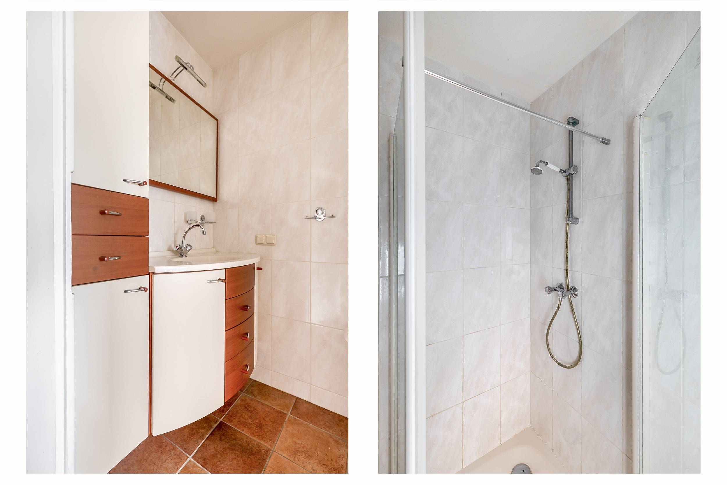 Op de eerste verdieping zijn drie slaapkamers aanwezig, waarvan één met een vaste kast. In de badkamer tref je de aansluitingen voor de wasmachine en wasdroger, een wastafelmeubel en douchehoek.