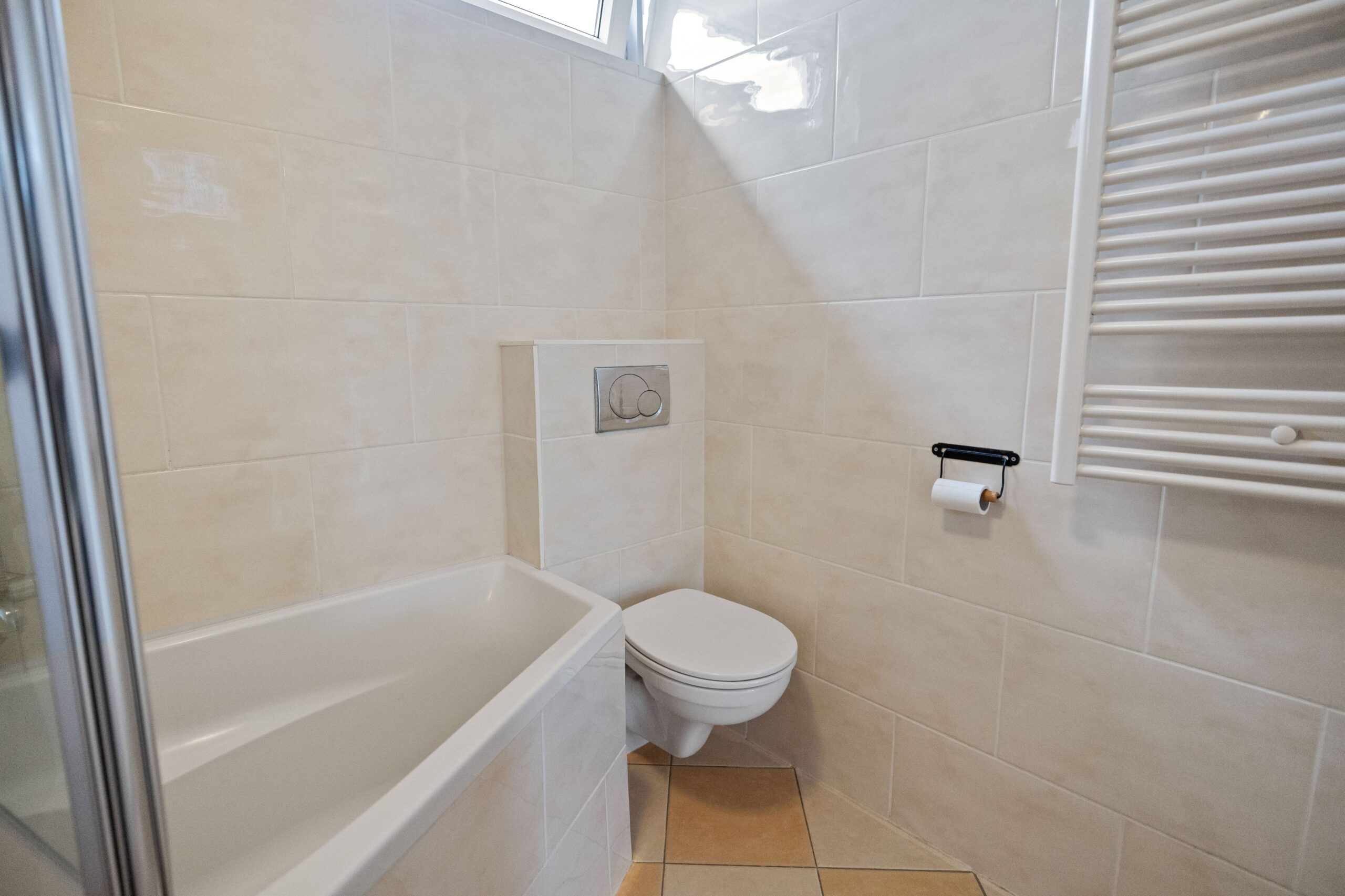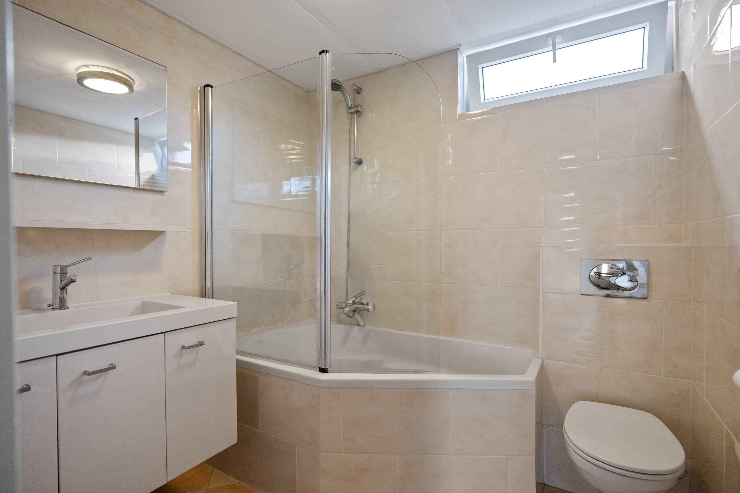 Op de eerste verdieping bevinden zich drie goede slaapkamers en een badkamer met douche/ligbad, vrijdragend toilet, wastafelmeubel en designradiator. Aan de voorzijde (bovenverdieping) zijn in 2024 kunststof kozijnen geplaatst inclusief nieuw HR++ beglazing. De woning wordt verwarmd via de CV ketel type Nefit (bouwjaar ça. 19).