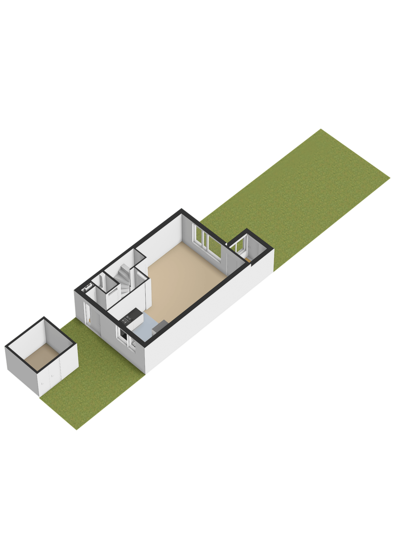 – Berging met kunststof deuren