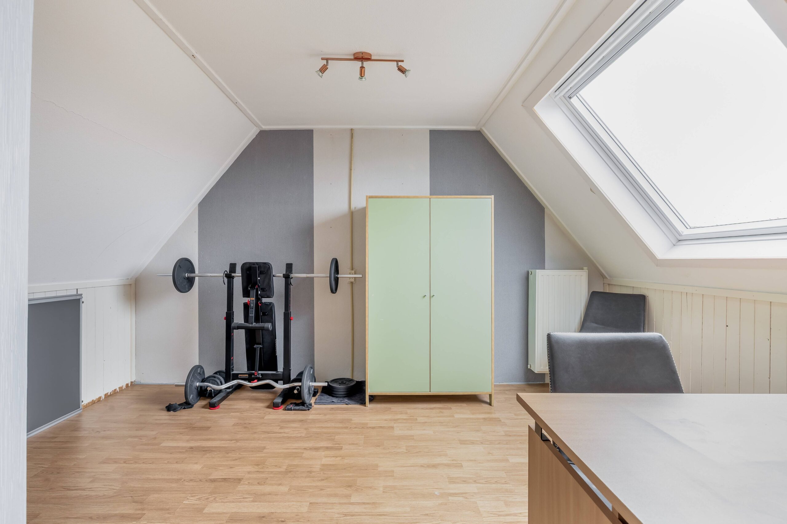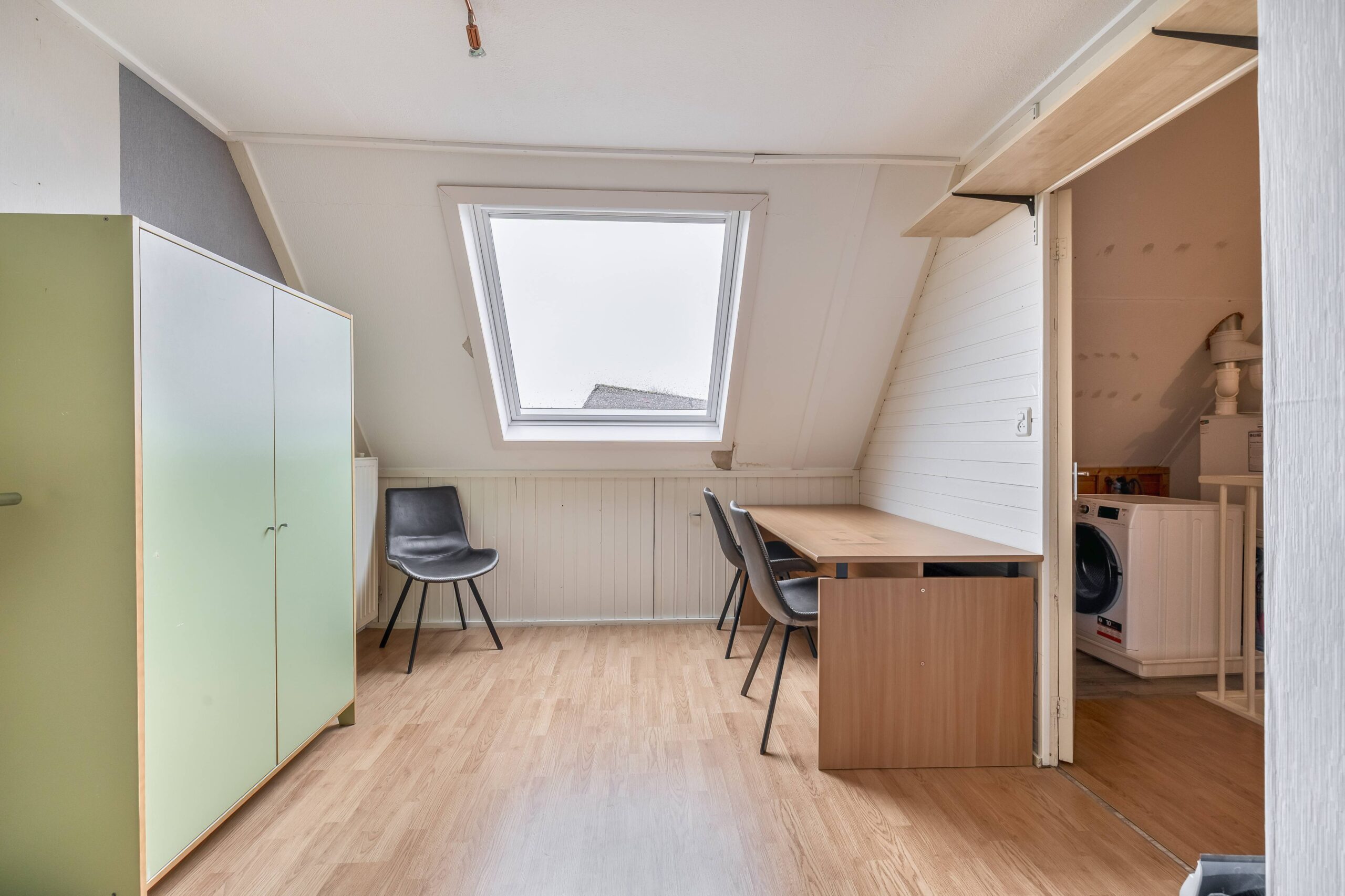Op de 1e verdieping bevinden zich 2 slaapkamers en de moderne badkamer. Deze is volledig betegeld en ingericht met een wastafelmeubel, spiegelkast, inloopdouche en vrijdragend toilet. De zolderverdieping is via een vaste trap bereikbaar. Op de voorzolder tref je de cv-ketel en opstelling van het witgoed, alsmede bergruimte. Aansluitend een 3e slaapkamer met dakvenster.