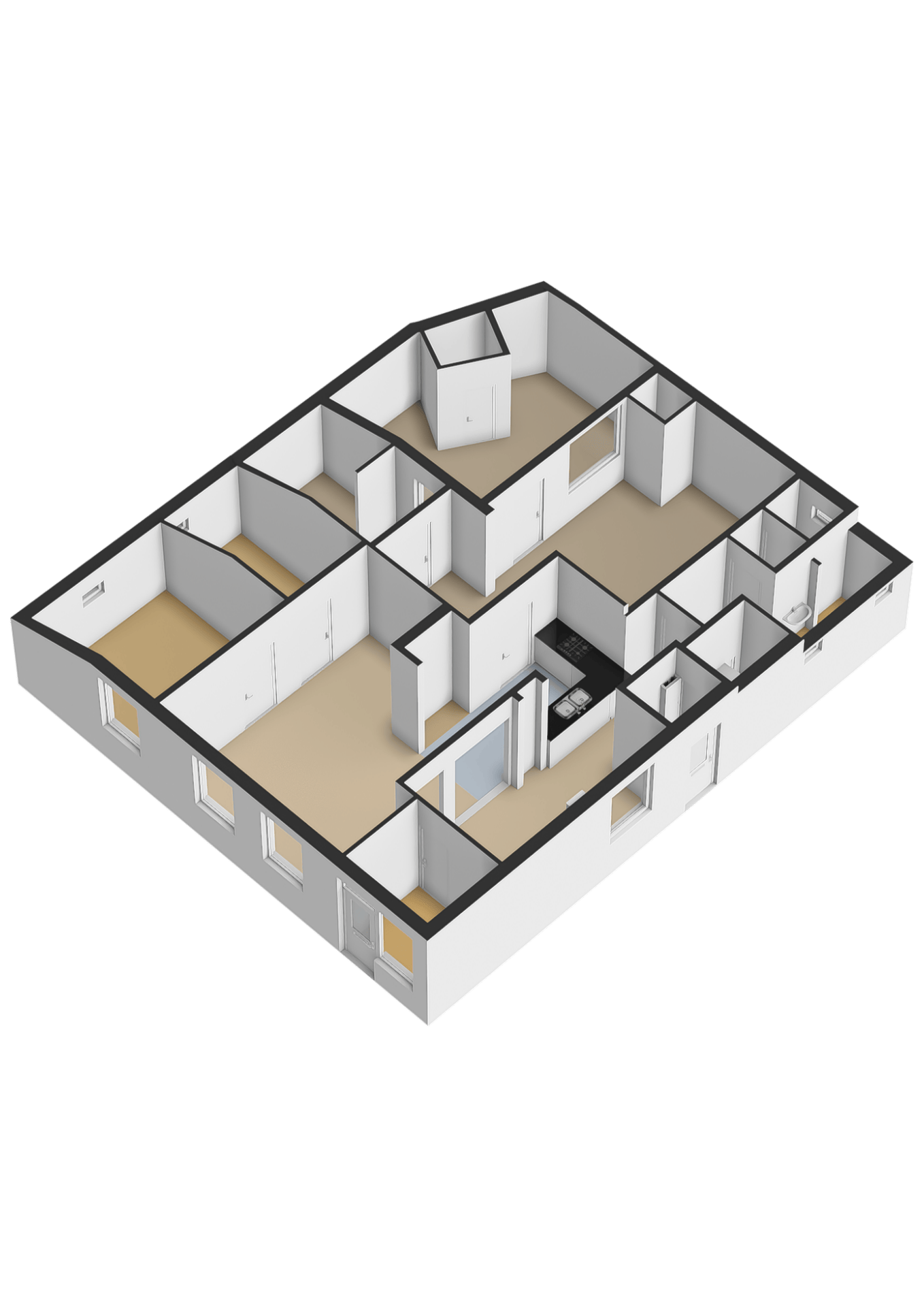 Op de eerste verdieping een woonoppervlakte van 68 m2, dus hier volop ruimte om bijvoorbeeld 4 slaapkamers te realiseren.