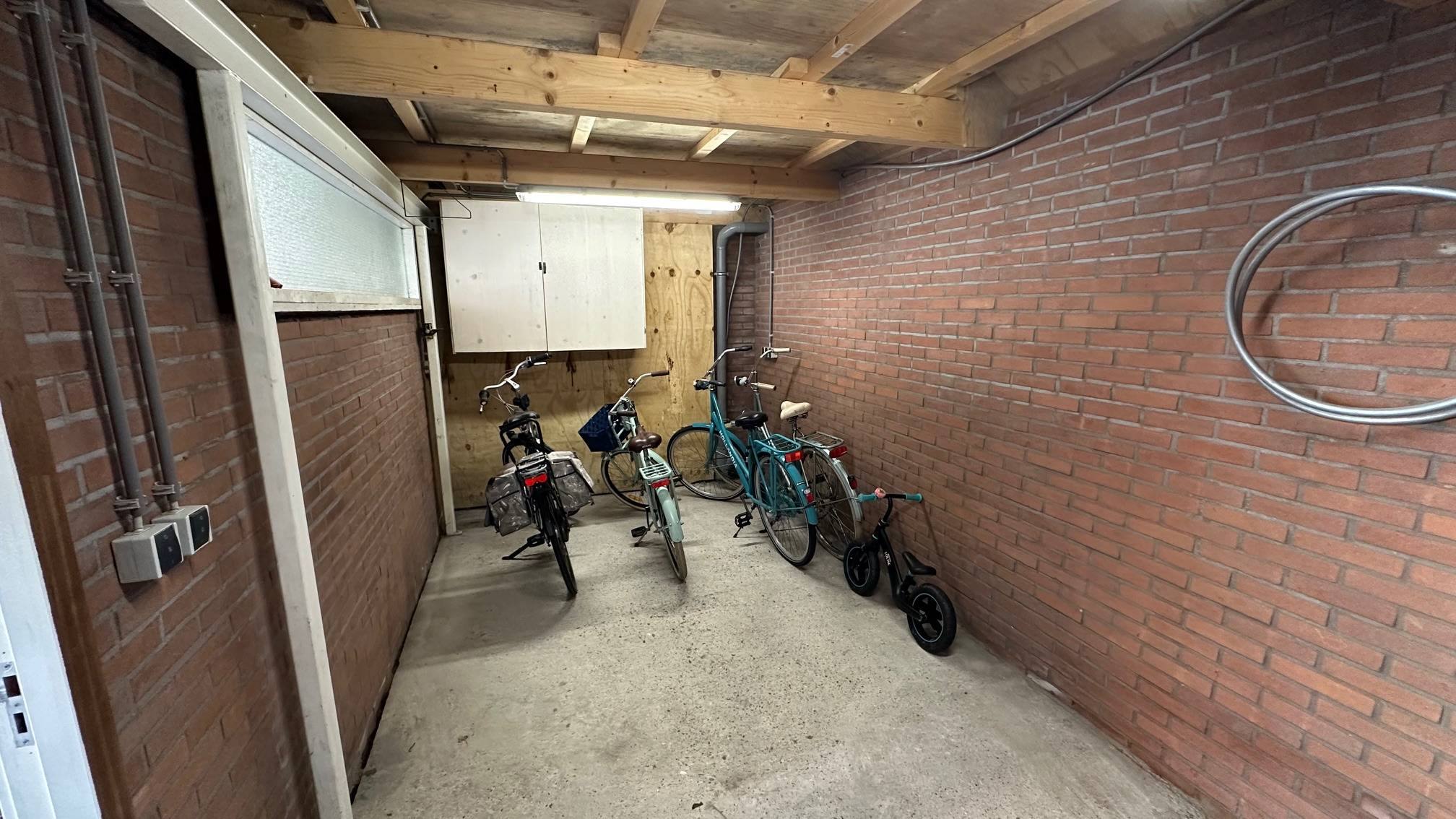 Via de voortuin toegang tot de woning. Tochtportaal, hal met trapopgang, trapkast en modern vrijdragend toilet met fontein. De keuken bevindt zich aan de voorzijde van de woning en is voorzien van alle wenselijke inbouwapparatuur. De woonkamer is uitgebouwd en zodoende erg ruim. Via openslaande deuren toegang tot de verzorgd aangelegde achtertuin met achterom (zijpoort), bestrating, beplanting en een ruime vrijstaande stenen berging met overkapping. De berging biedt extra bergruimte op de vliering.