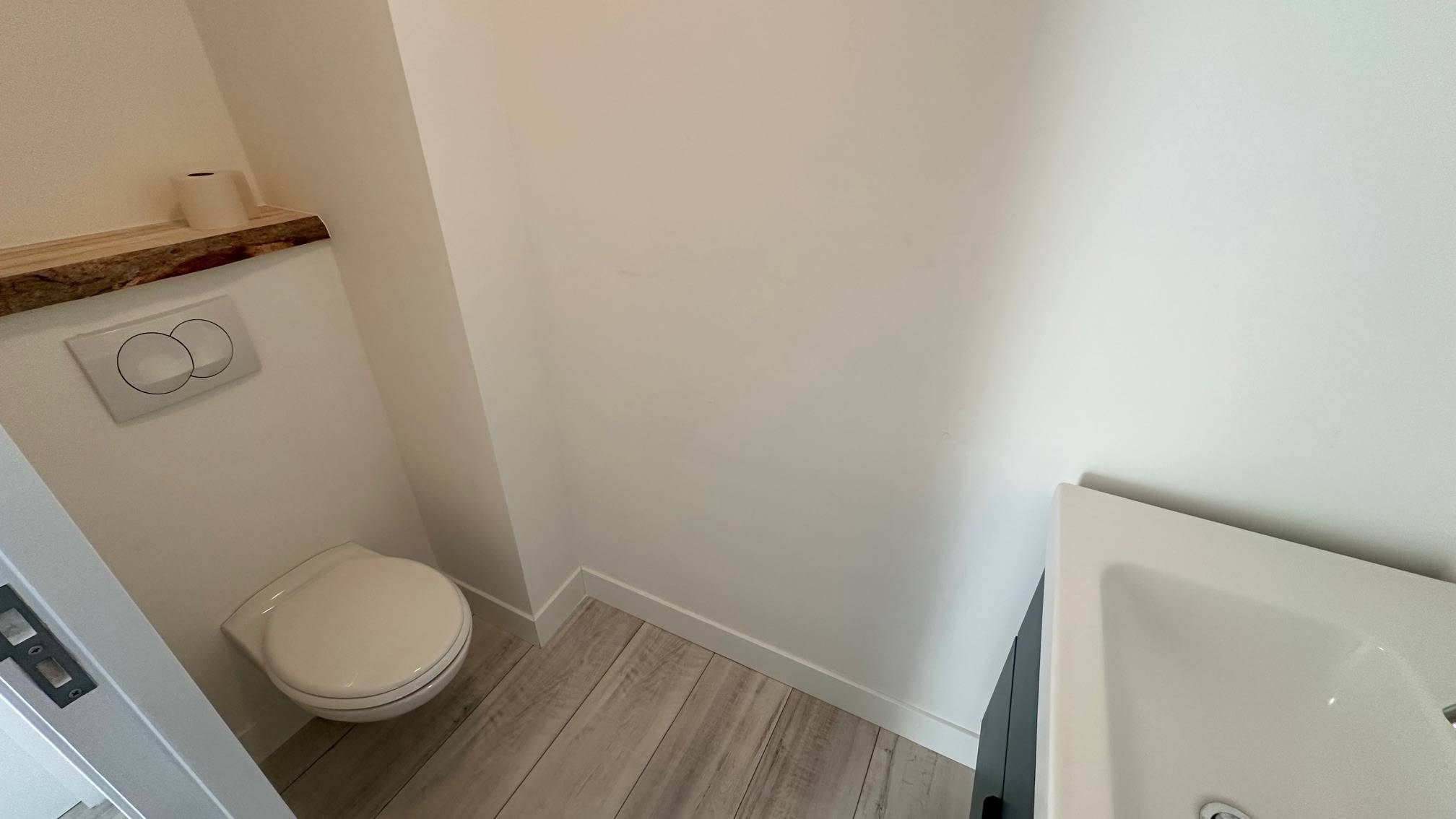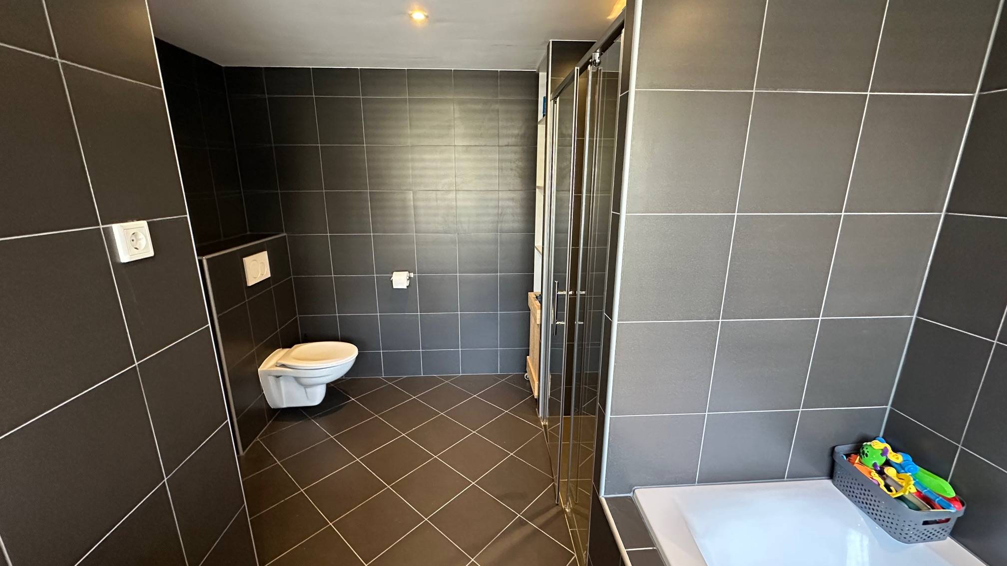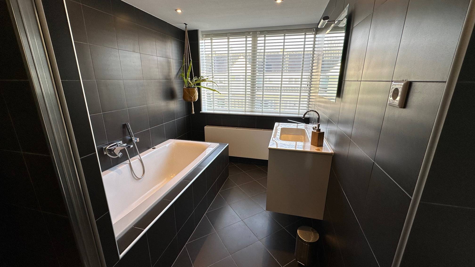 Op de eerste verdieping bevinden zich drie slaapkamers en de luxe badkamer. De volledig betegelde badkamer is ingericht met een wastafelmeubel, afsluitbare douche, ligbad en 2e vrijdragend toilet.