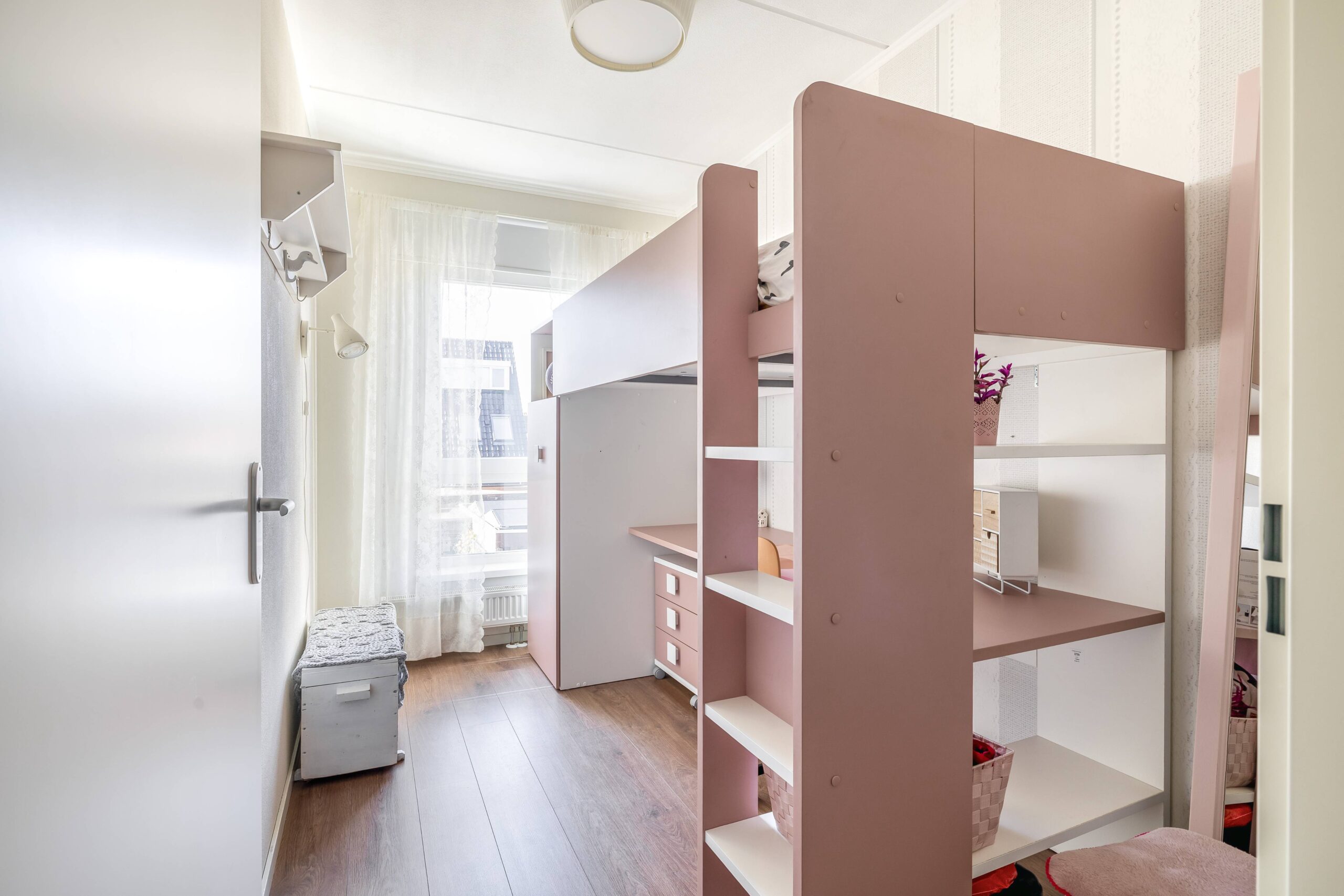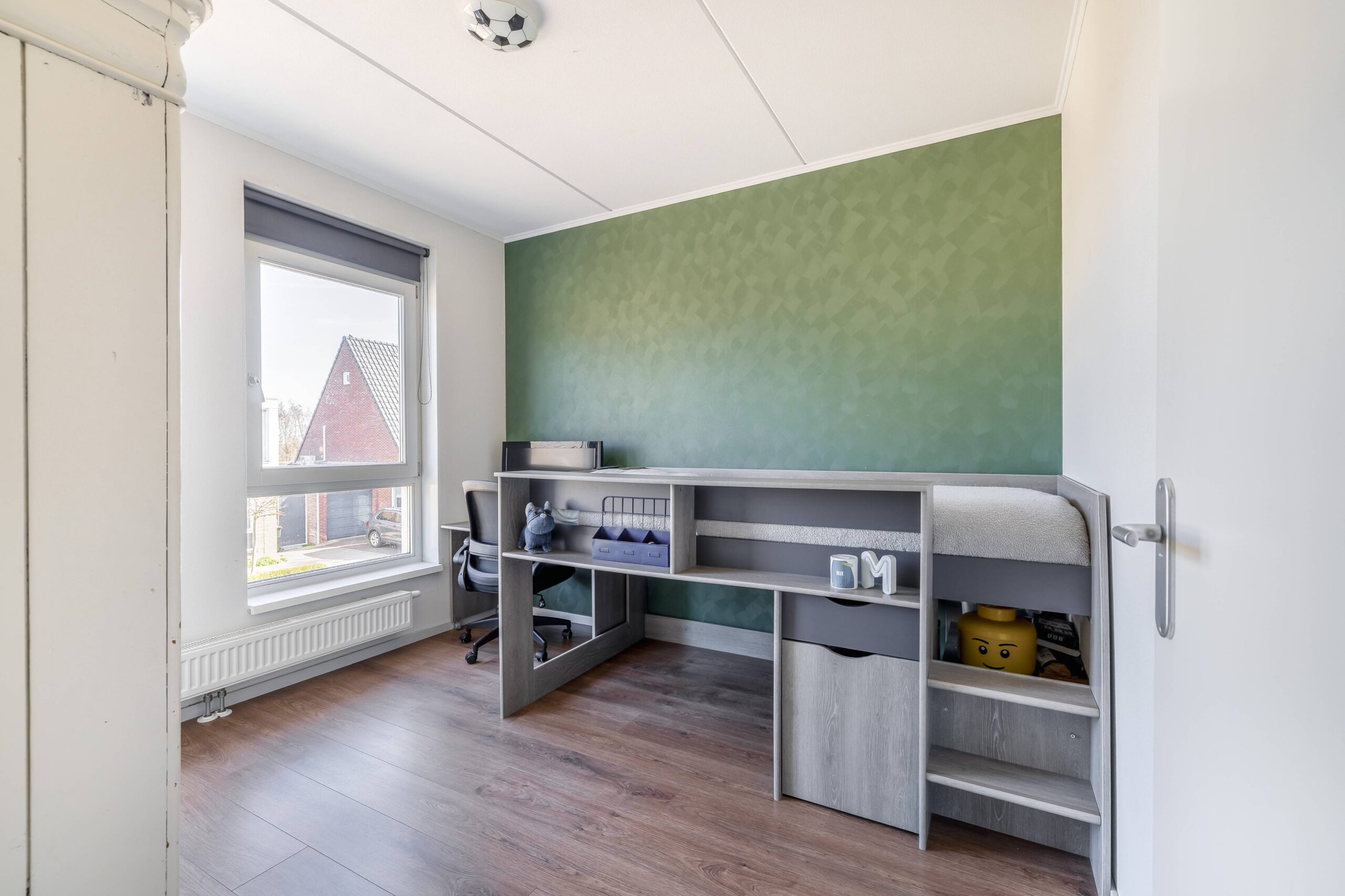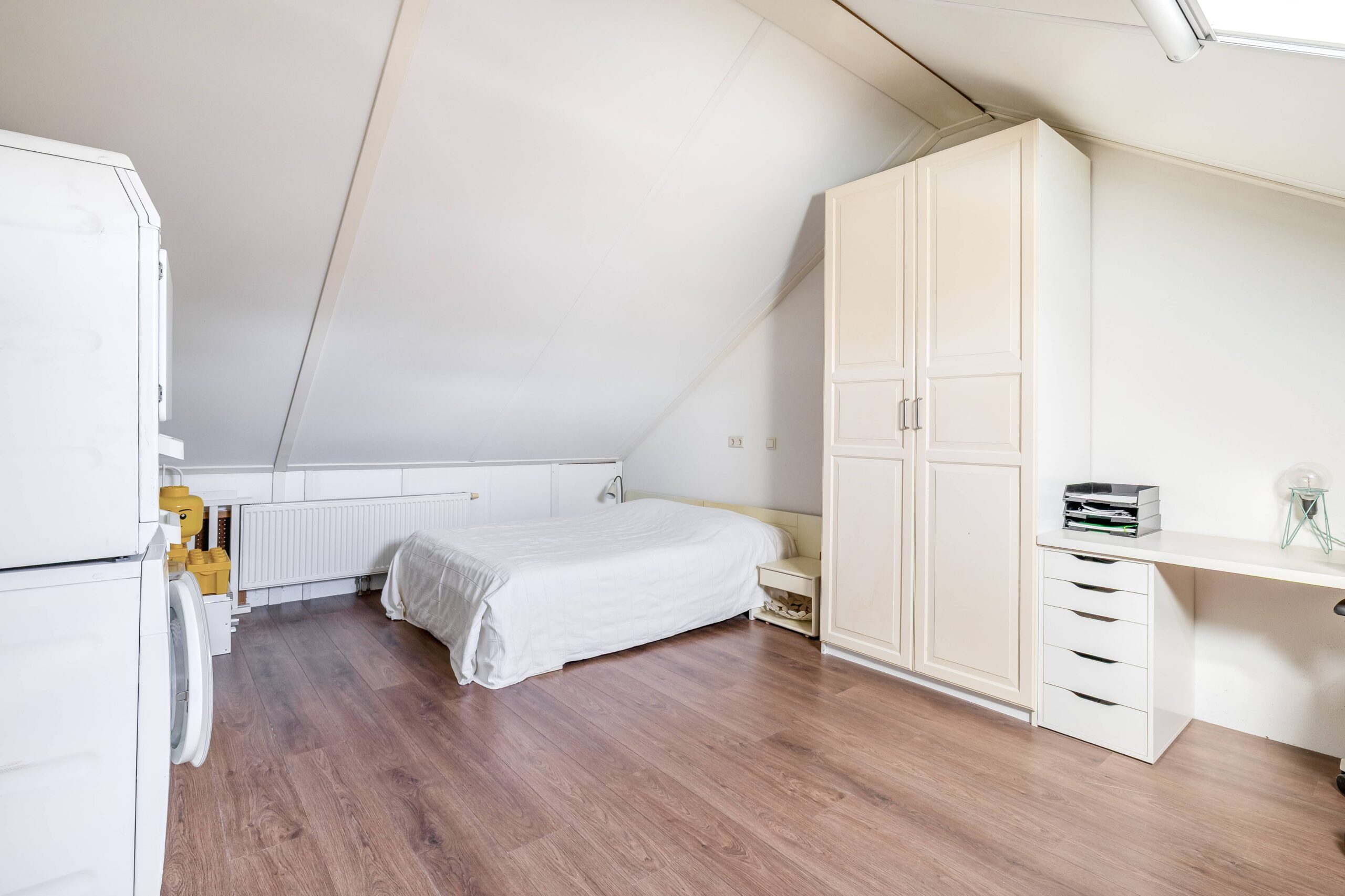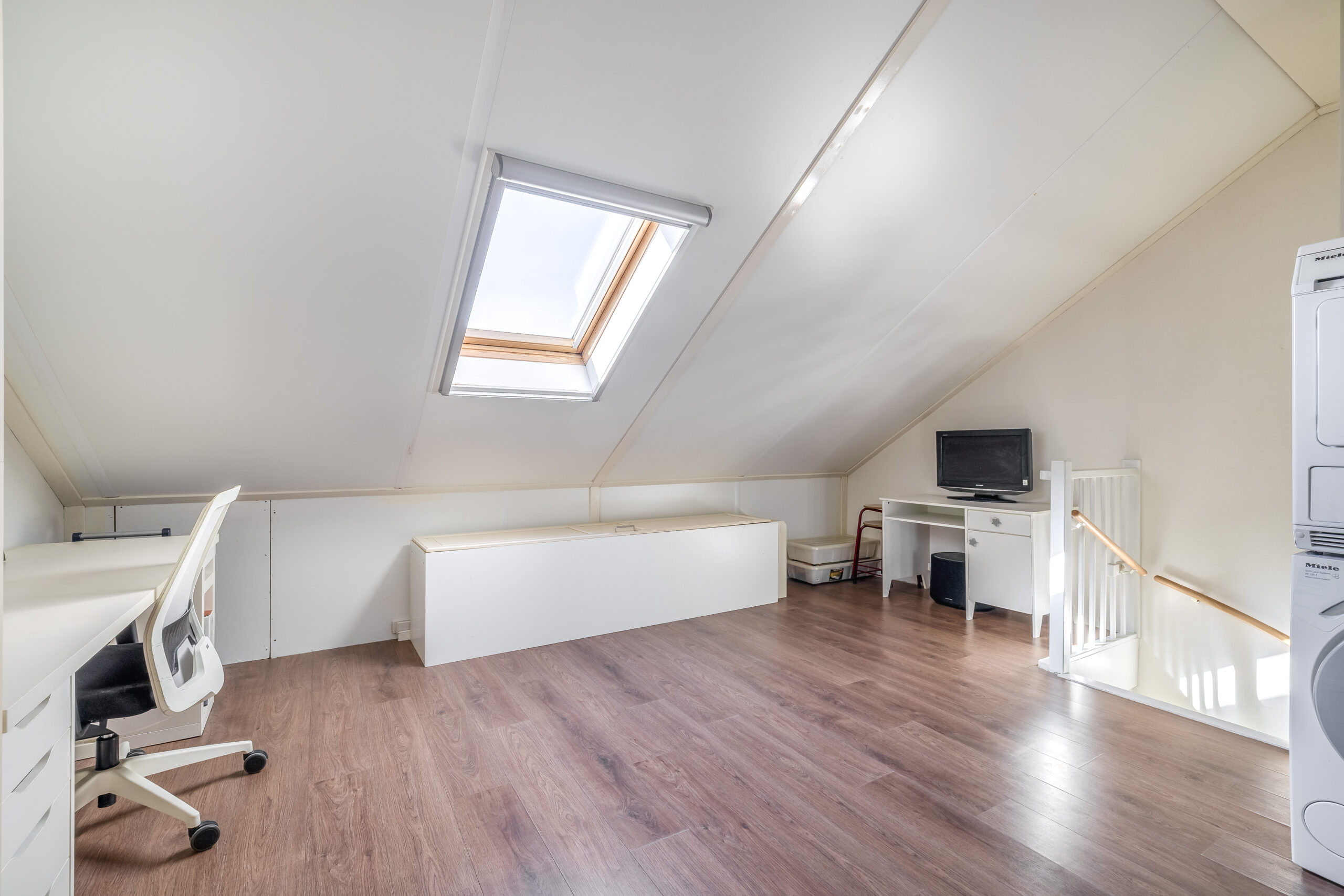 Op de 2e verdieping tref je een grote 4e slaapkamer aan en de opstelling cv- ketel en de aansluiting van de wasmachine.