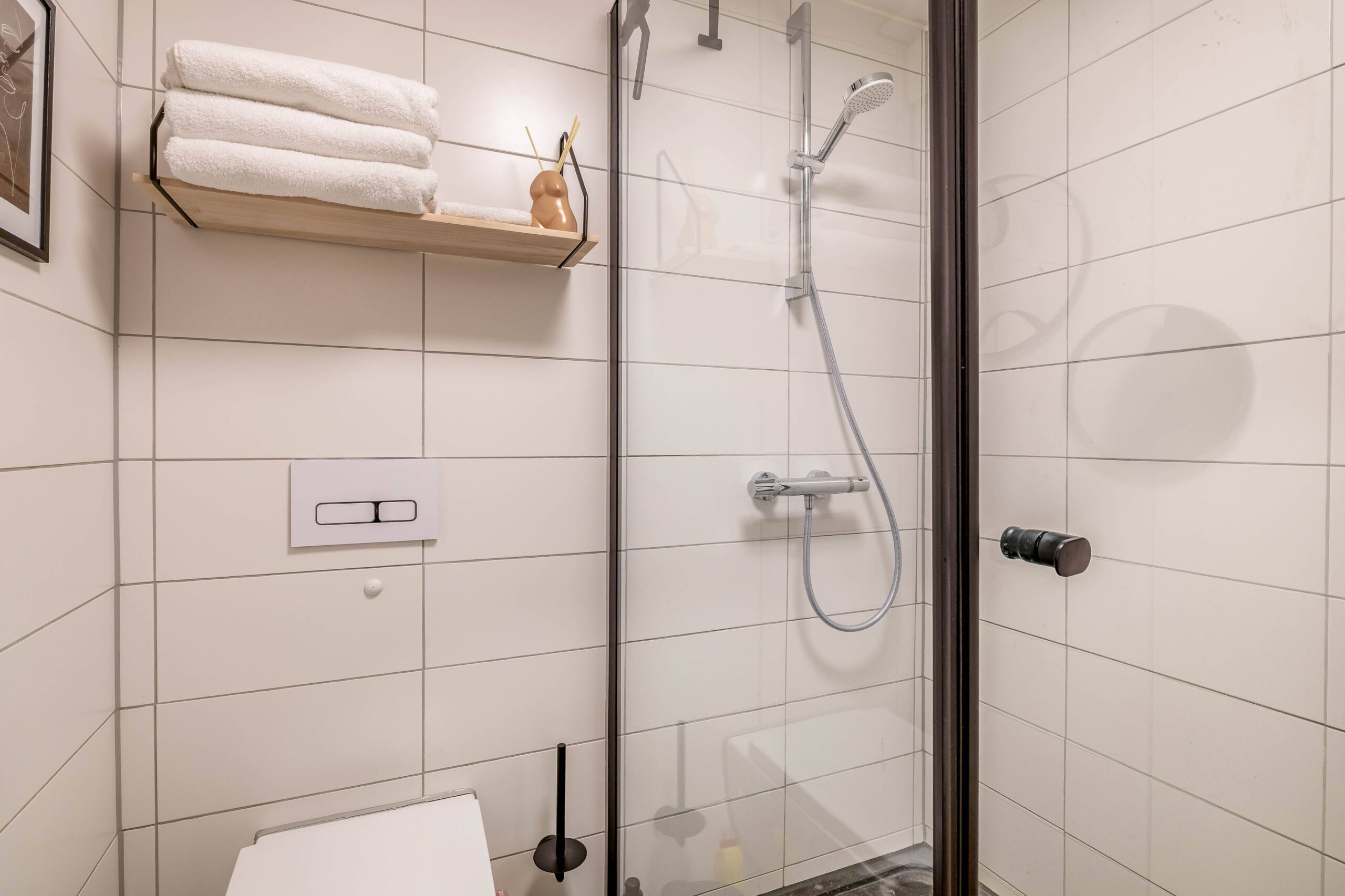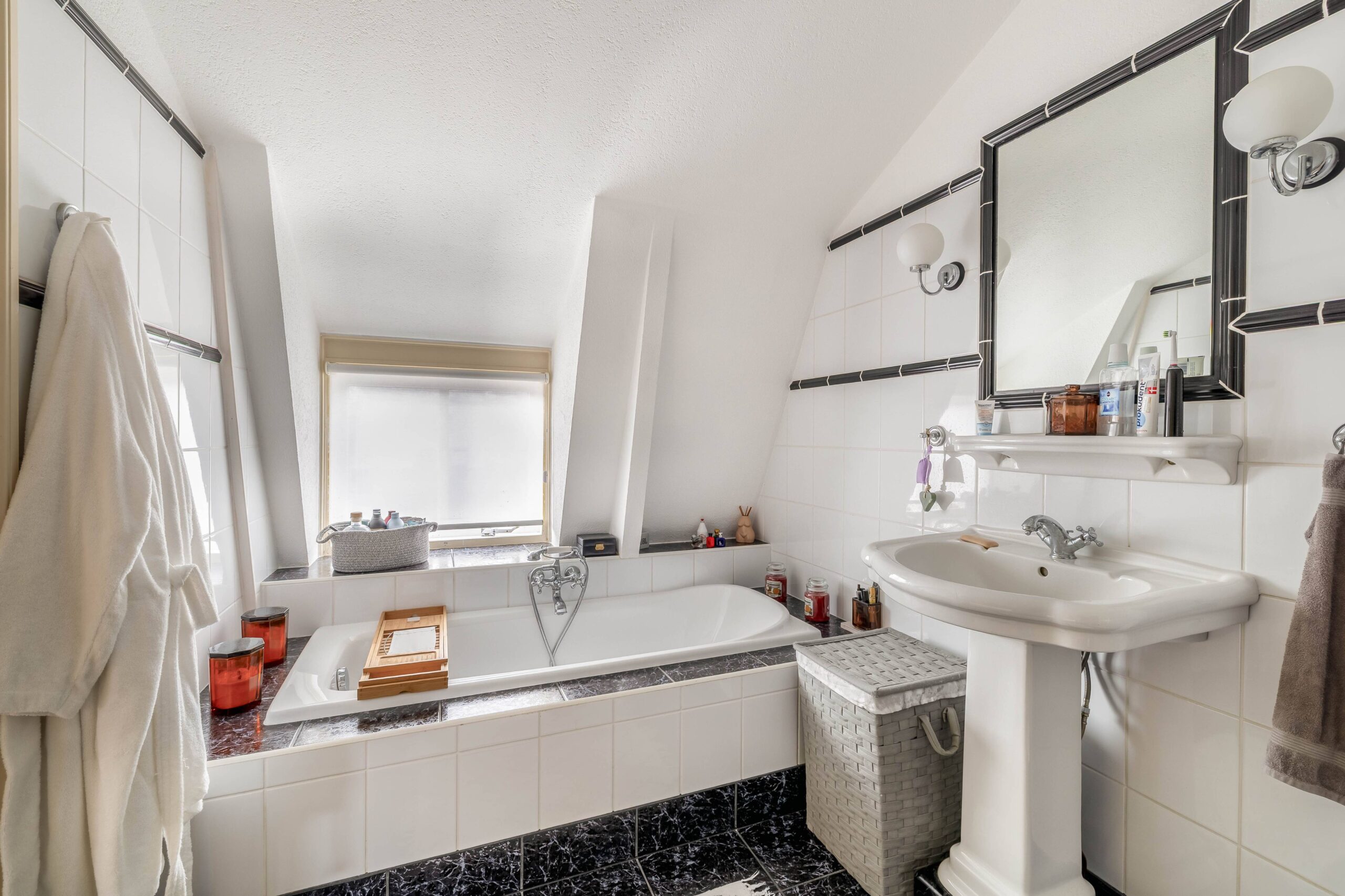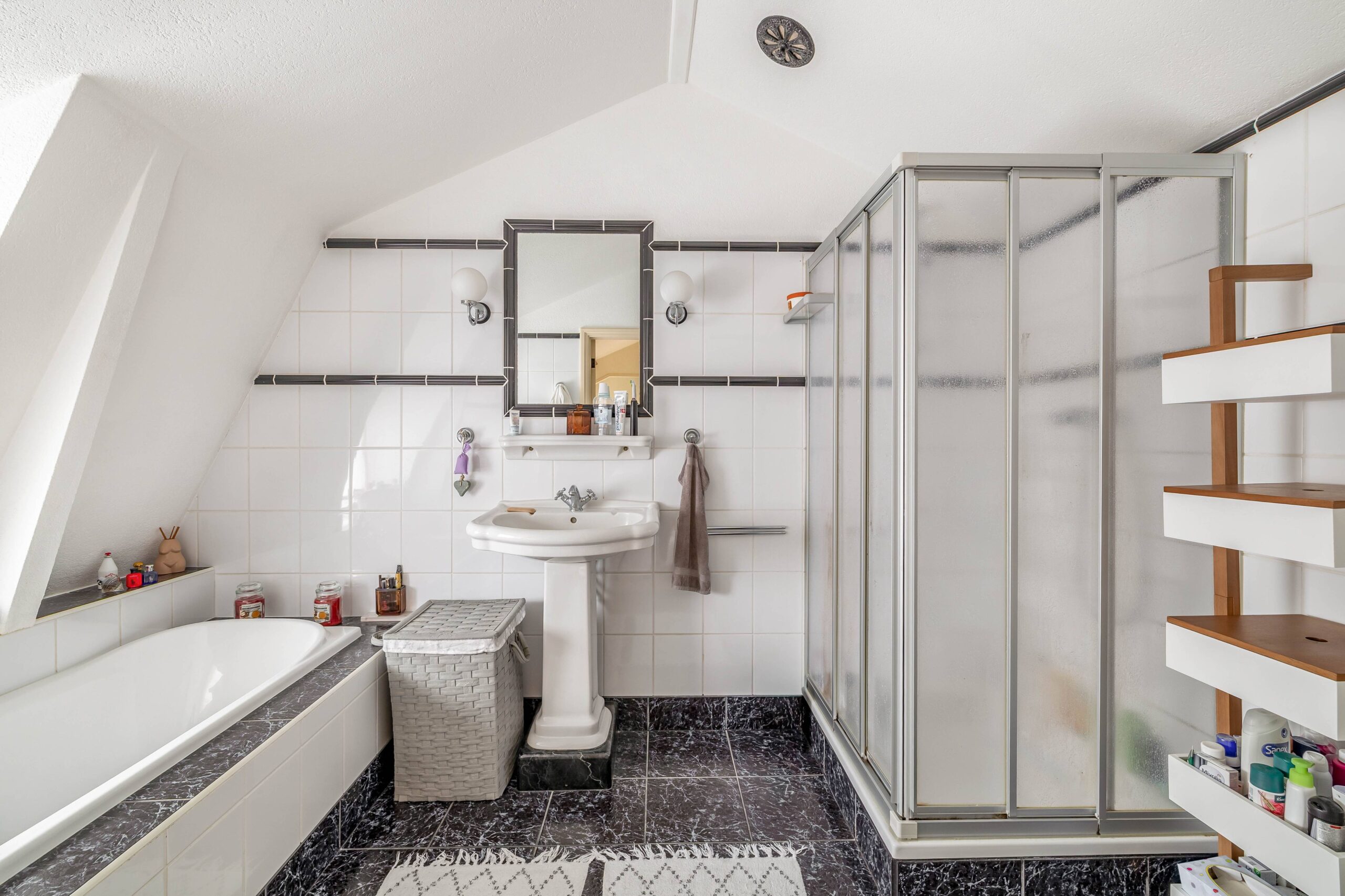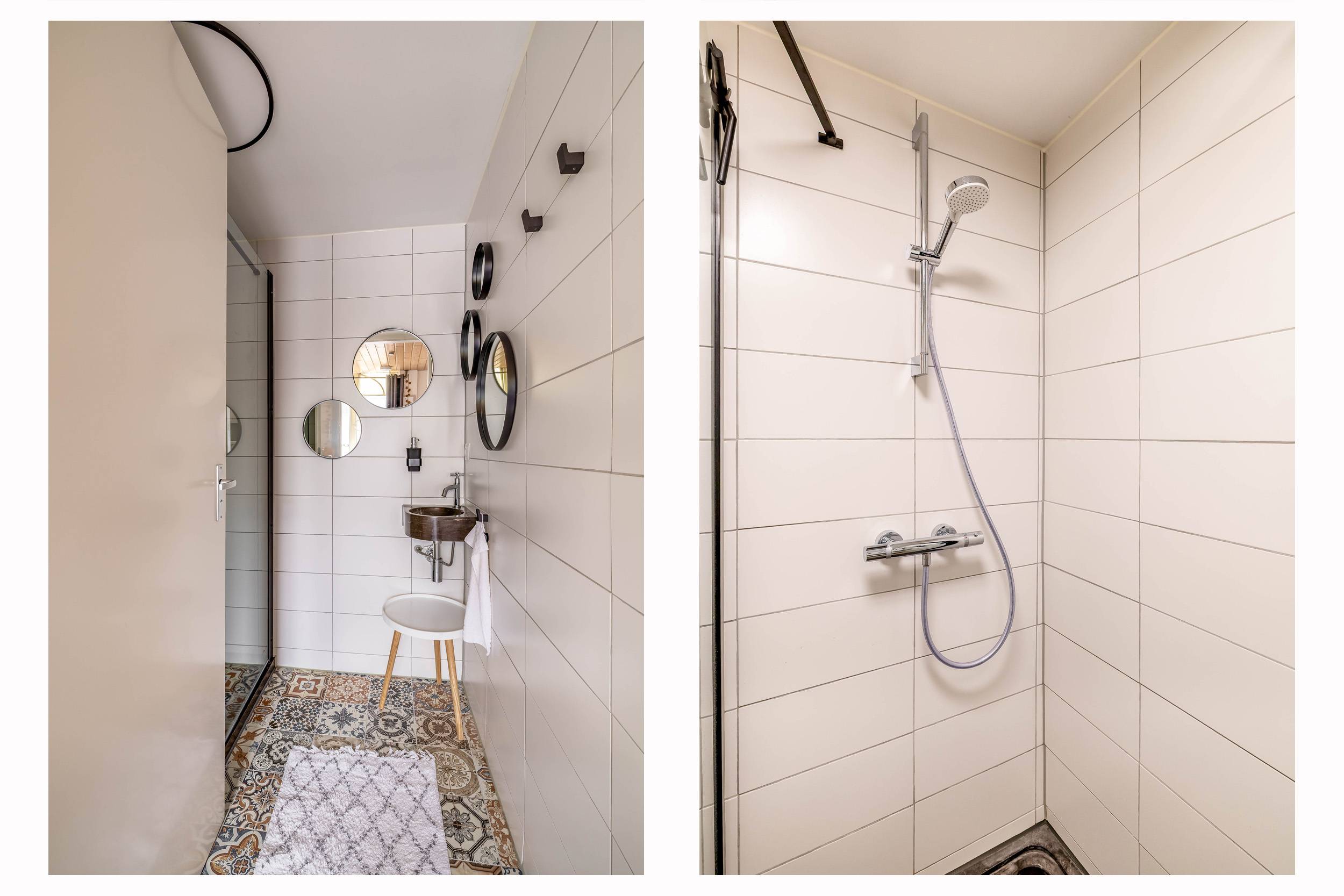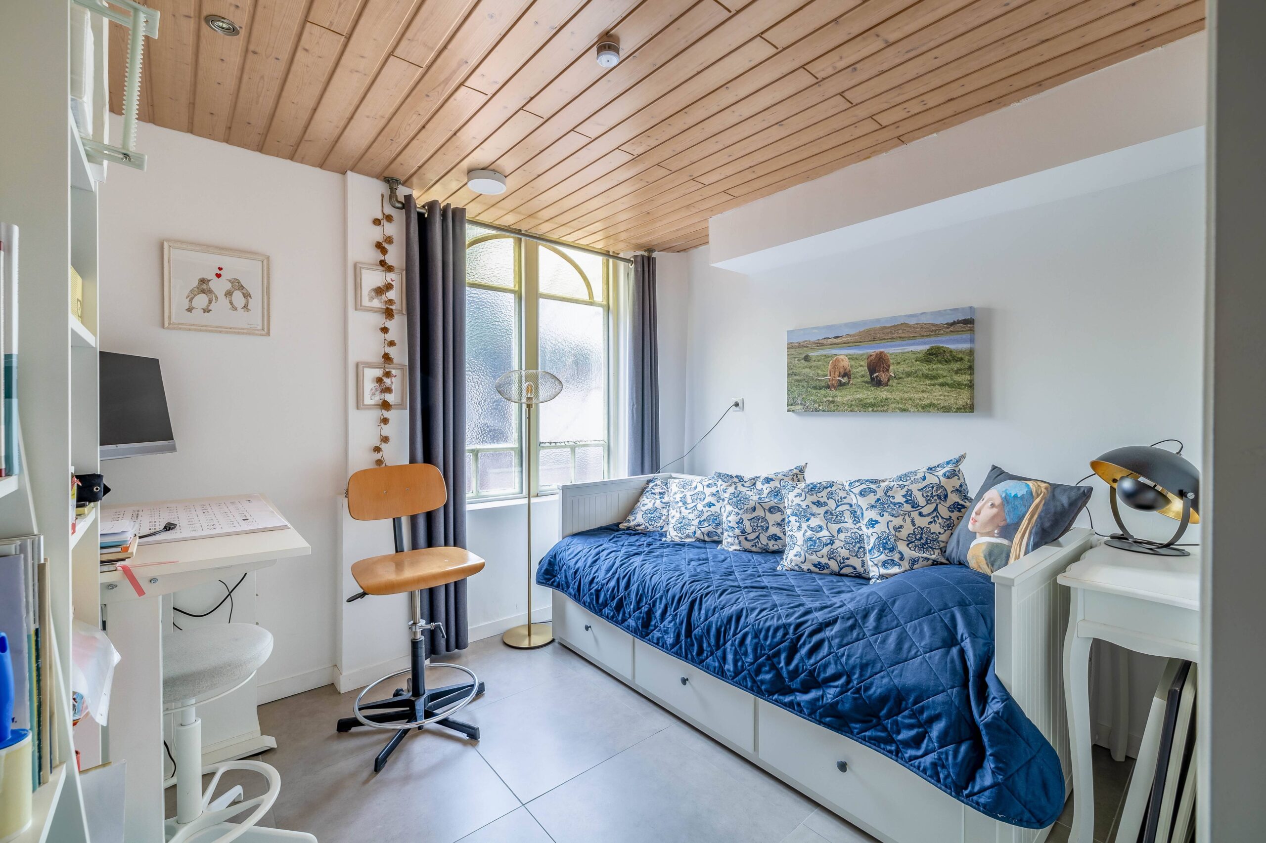 De slaapkamer is praktische ingedeeld met kastruimte en de luxe nieuwe badkamer met douchecabine met hardstenen bak, harstenen wastafel en vrijdragend toilet. De tegels op de vloer passen uitstekend bij de sfeer van de woning en zijn nog aanwezig voor de hal.