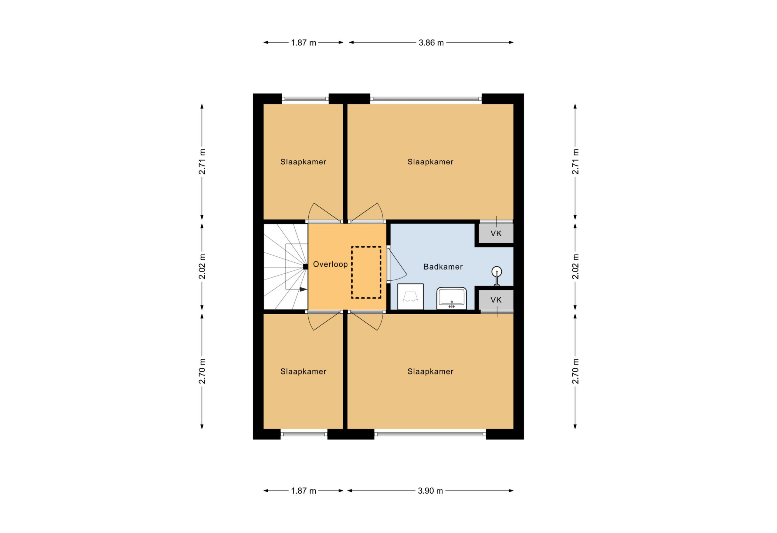 Op de 1e verdieping 2 grote slaapkamers, 2 kleinere slaapkamers en de badkamer. Deze is volledig betegeld en voorzien van inloopdouche, wastafelmeubel en aansluiting van het witgoed. Middels een vlizotrap is een mooie grote bergzolder voor de opslag van vakantiekoffers en andere spullen te bereiken.