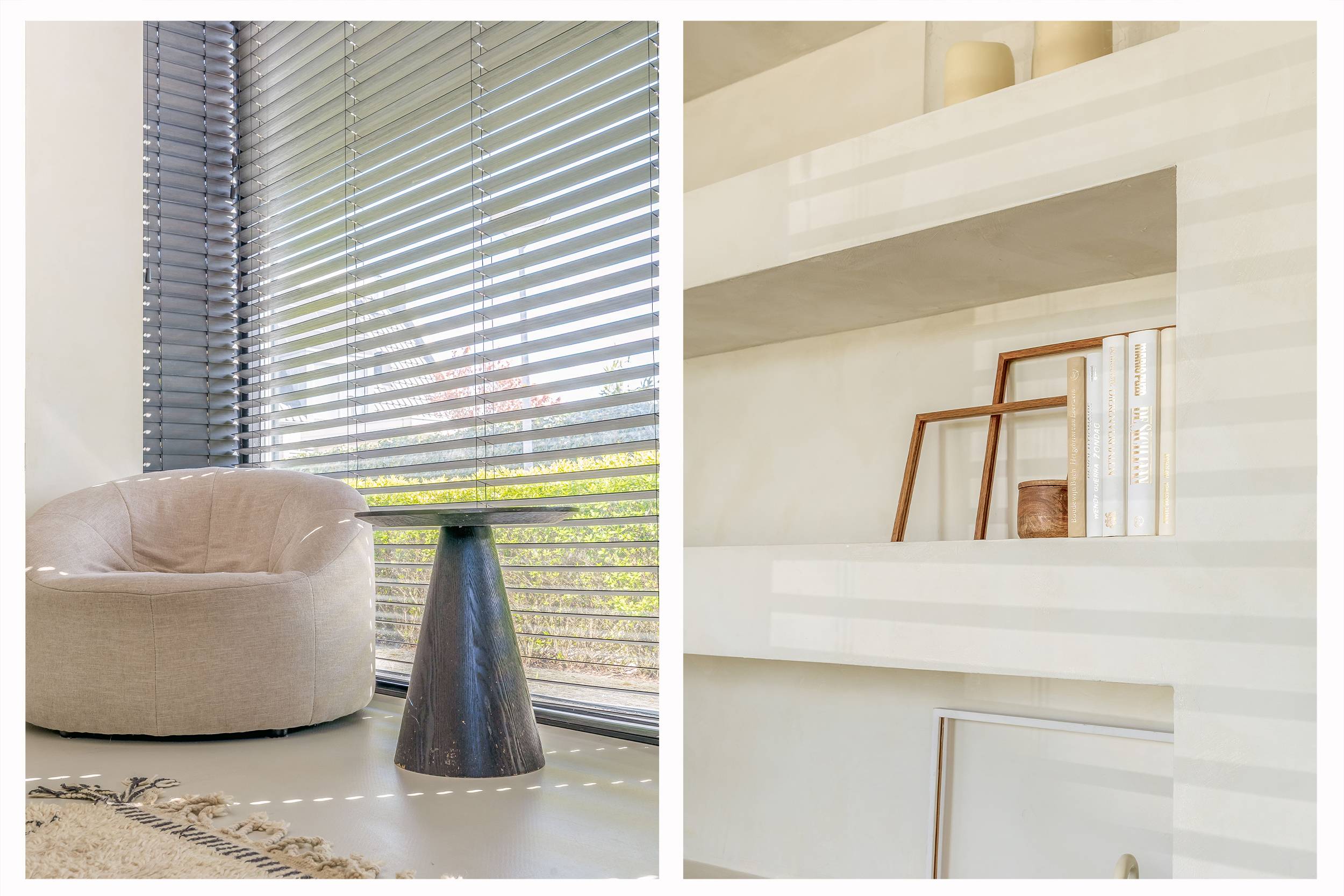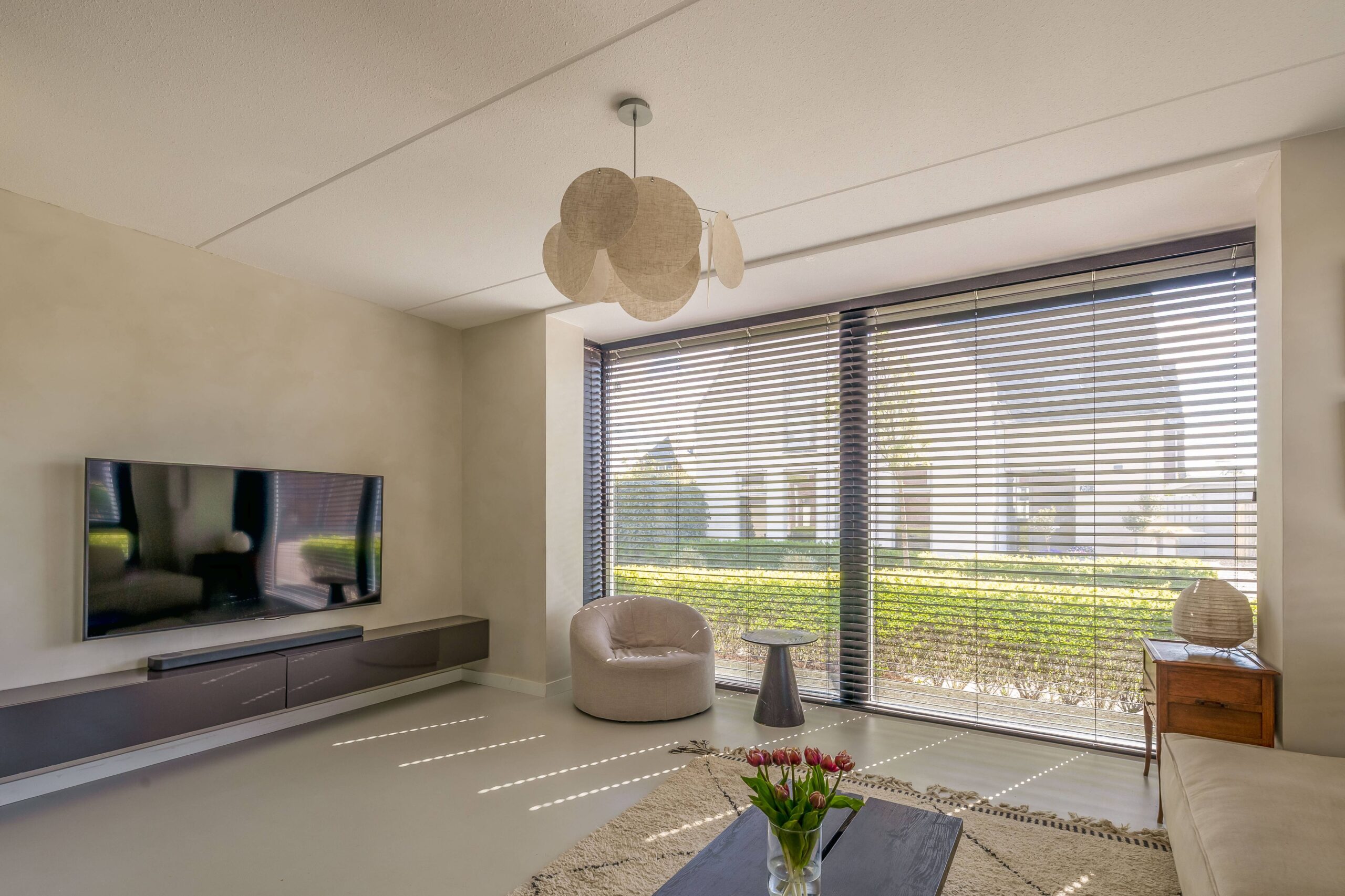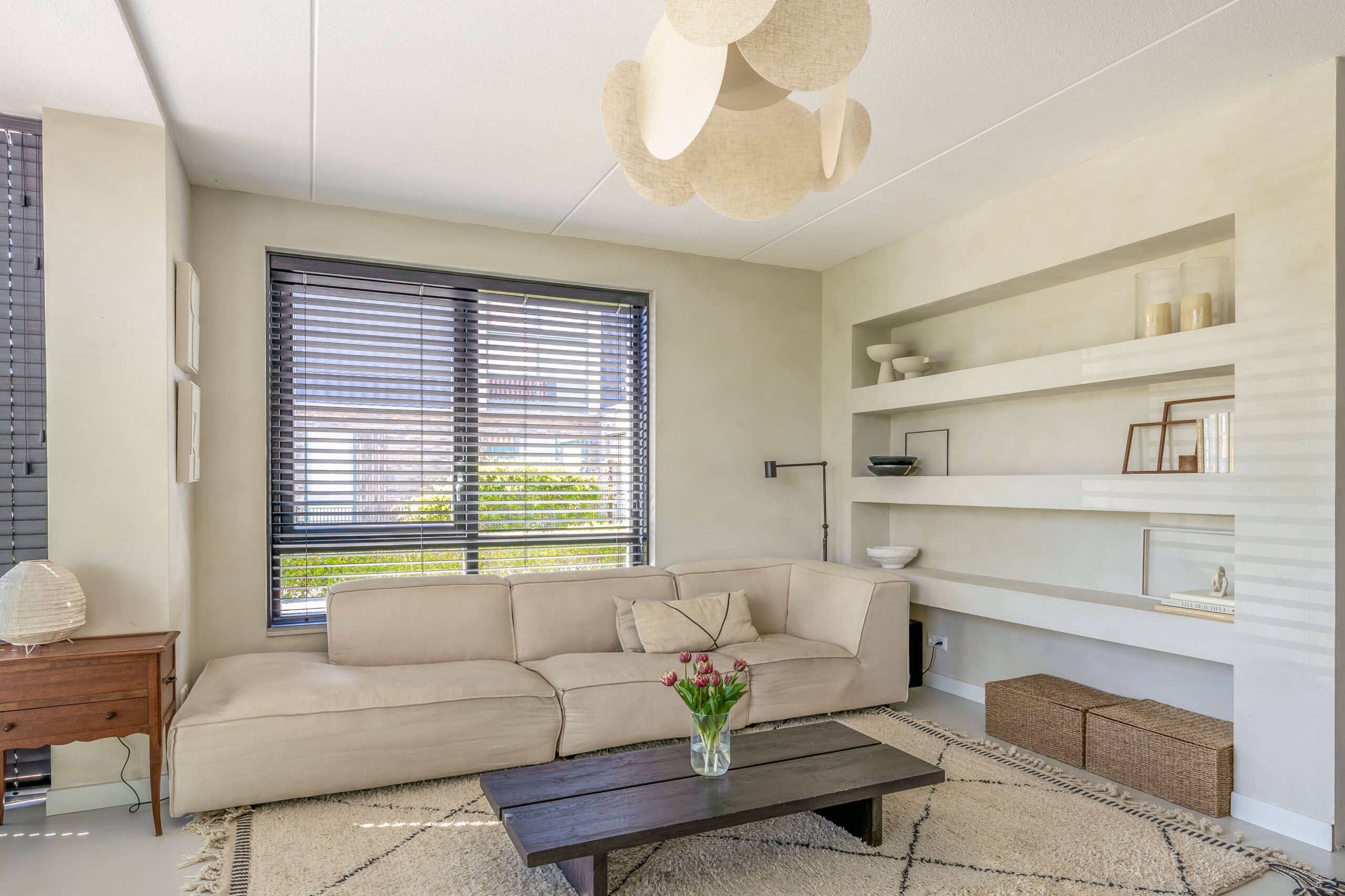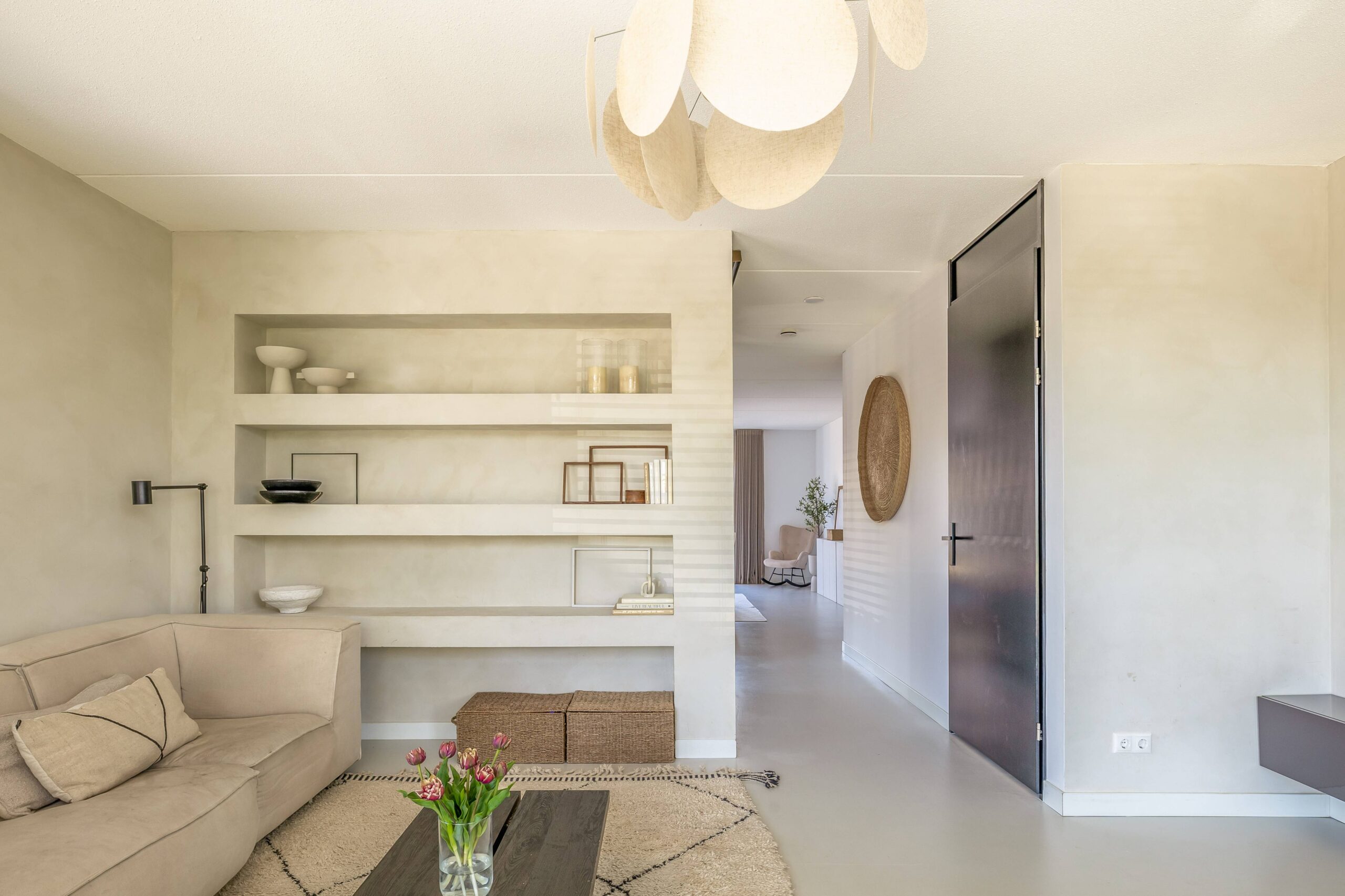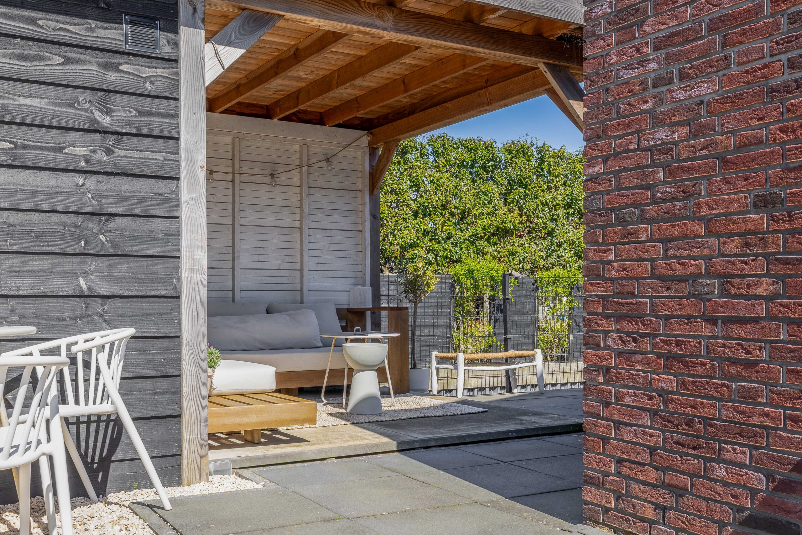 Via de zij-entree betreed je de woning. De hal biedt toegang tot een modern toilet met fonteintje en betonciré wanden en leidt via een stijlvolle bronskleurige schuifdeur naar de leefruimte. Aan de voorzijde bevindt zich de woonkamer, terwijl aan de achterzijde de royale eetkeuken is gesitueerd: de plek waar koken, tafelen en samenzijn centraal staan.