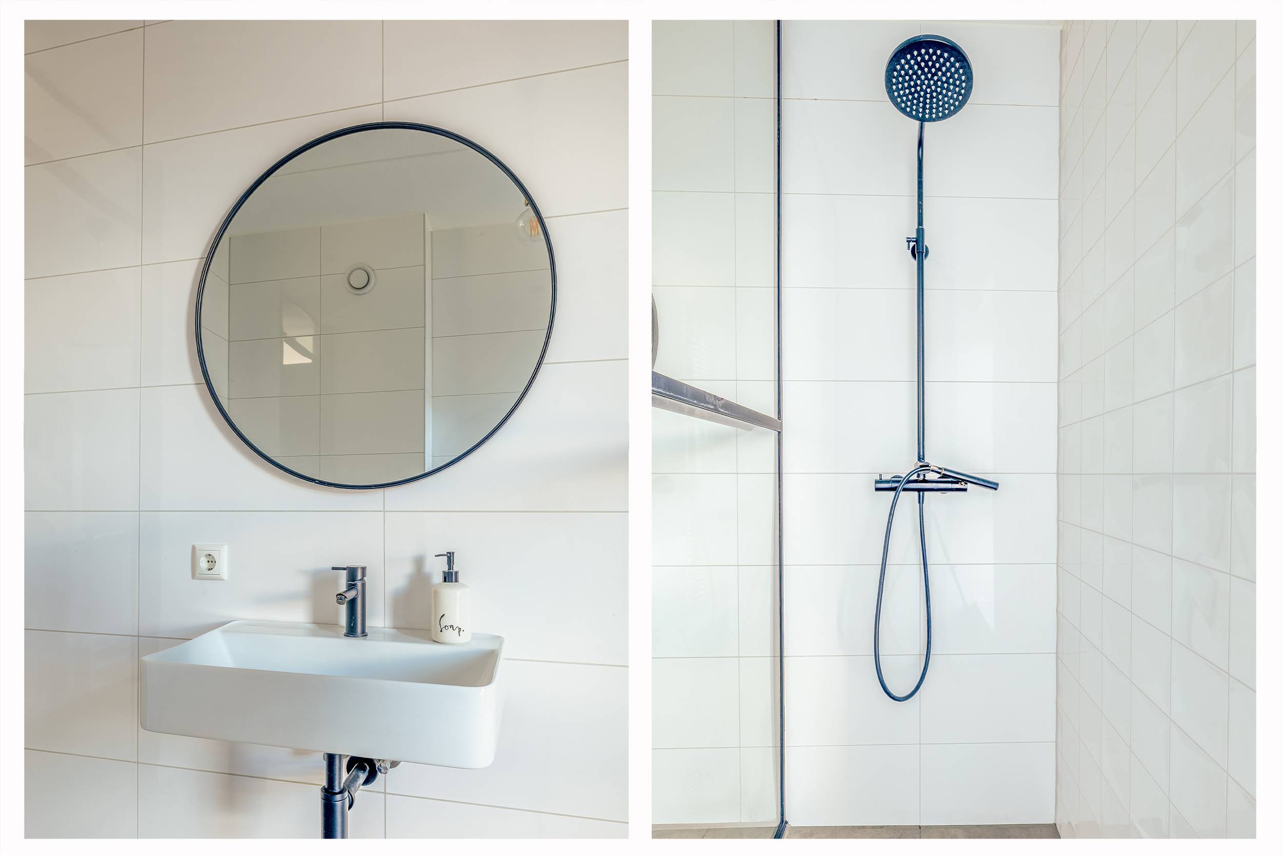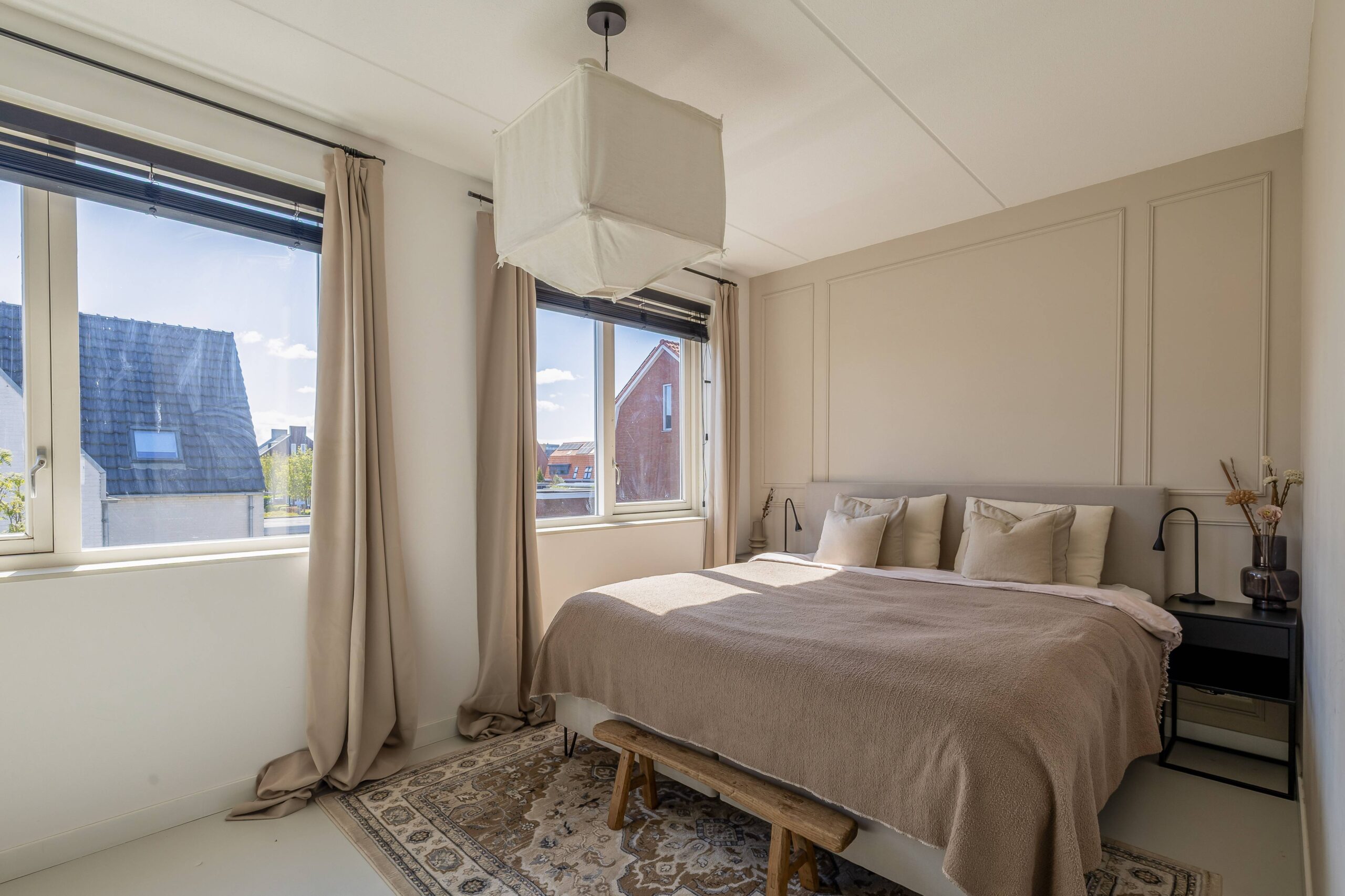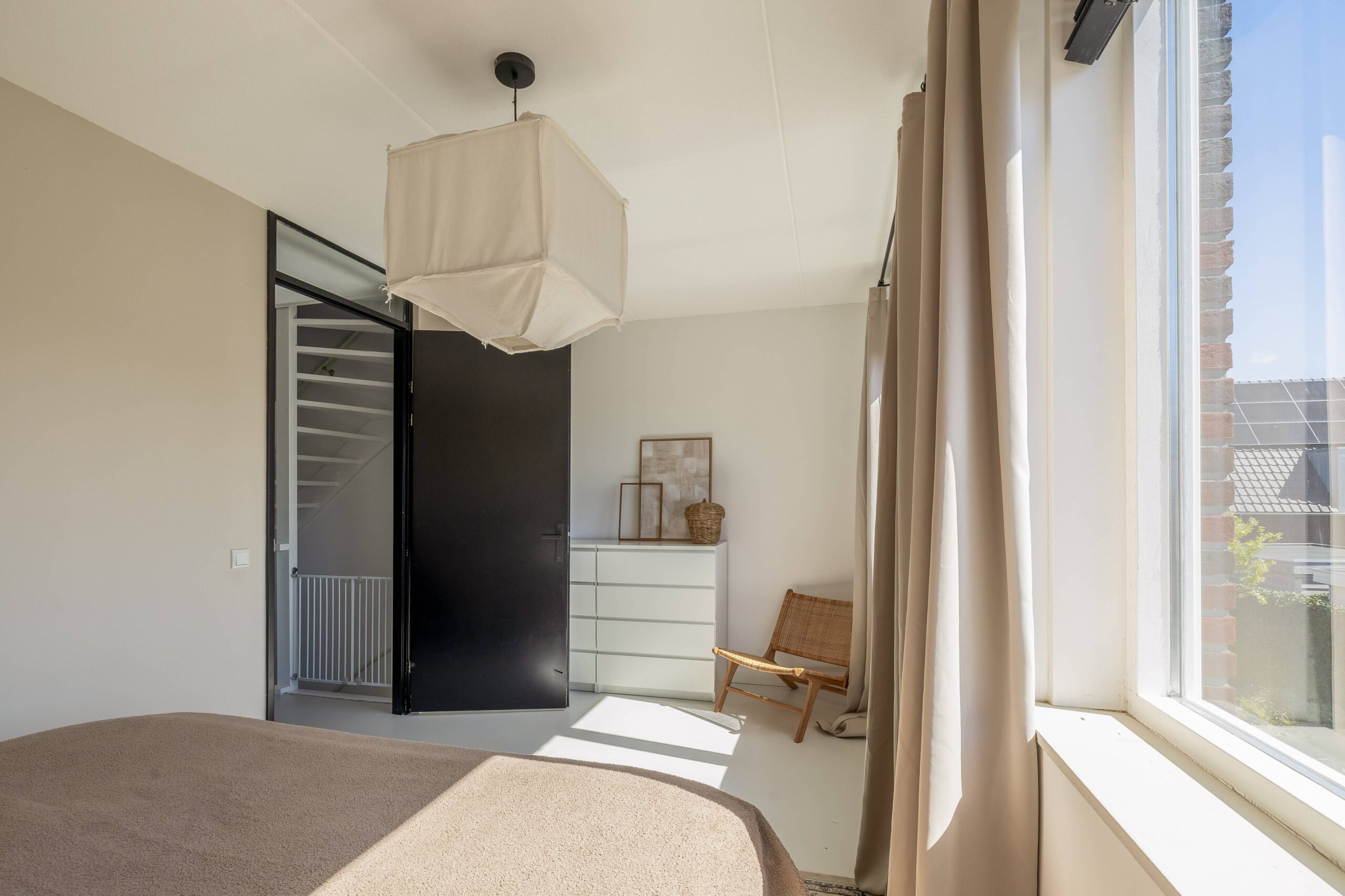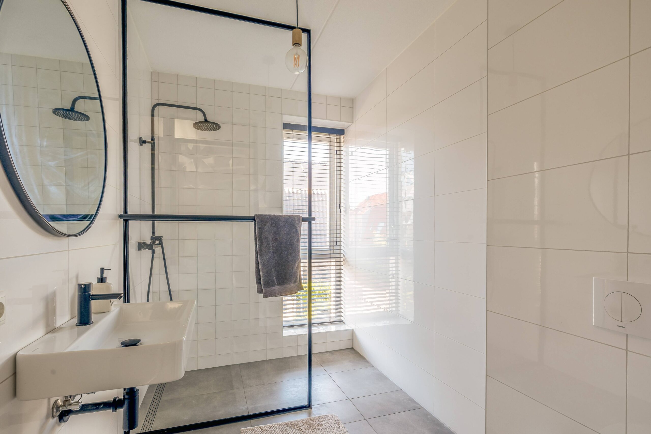 Op de eerste verdieping bevinden zich drie slaapkamers met grote raampartijen. De badkamer beschikt over een wastafelmeubel, een ruime inloopdouche en een tweede toilet.