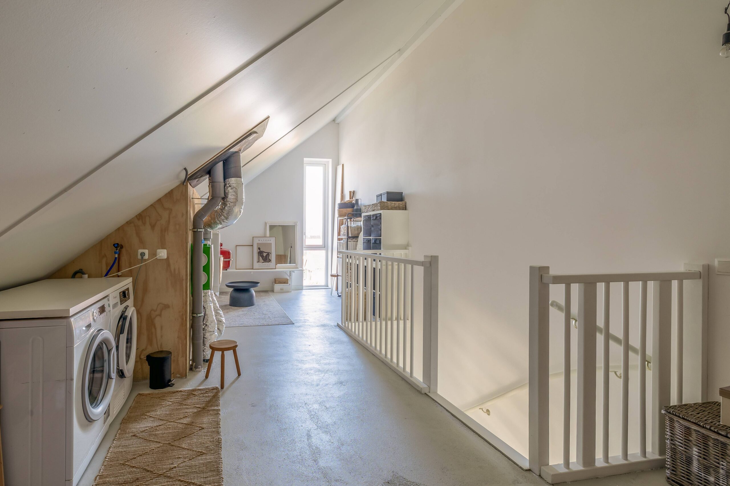 De tweede verdieping is bereikbaar via een vaste trap en biedt momenteel één royale open ruimte met aansluitingen voor de wasmachine en de opstelling van de cv-ketel. Dankzij de indrukwekkende hoogte tot aan de nok voelt deze verdieping bijzonder ruim aan. Hier bestaat bovendien de mogelijkheid om nog twee extra slaapkamers te realiseren.