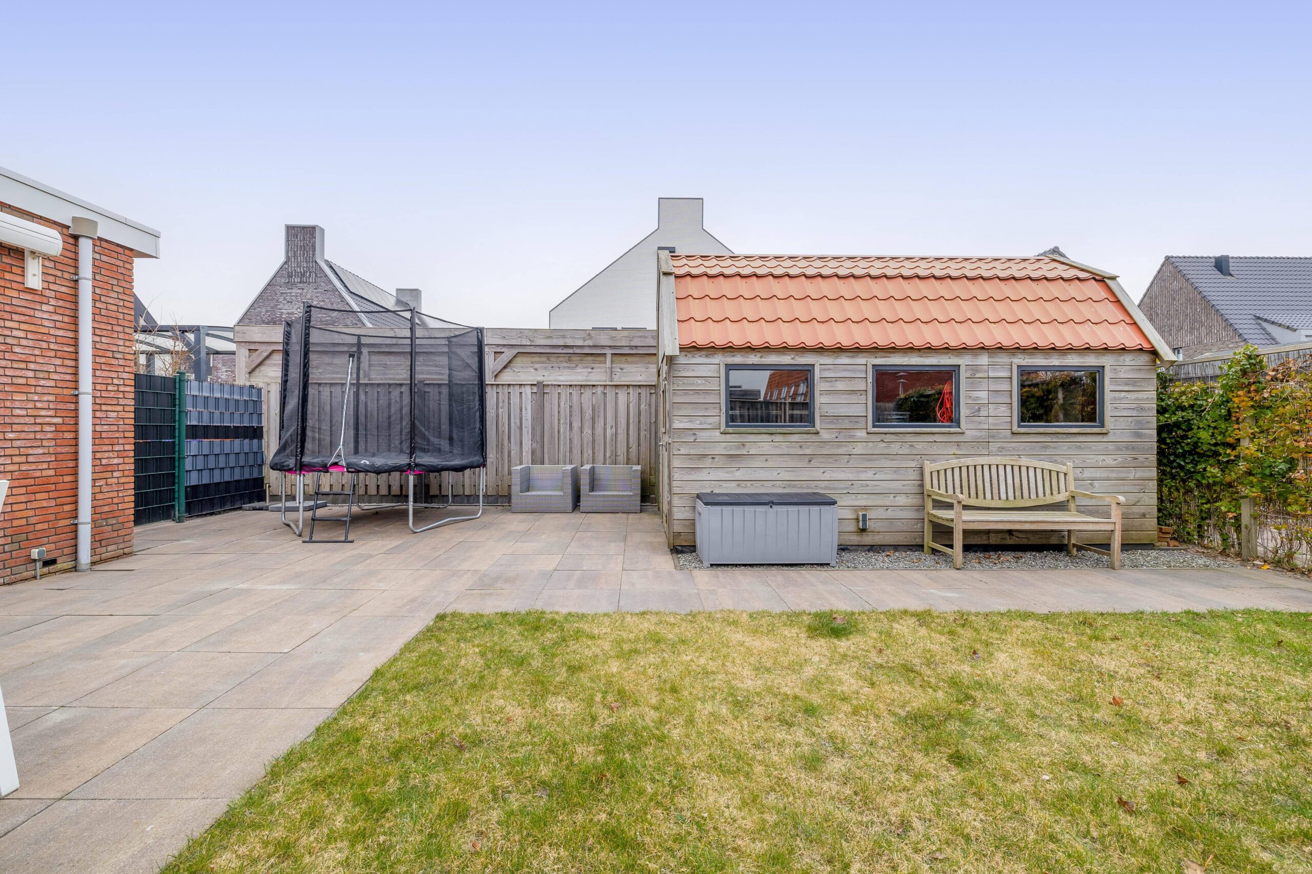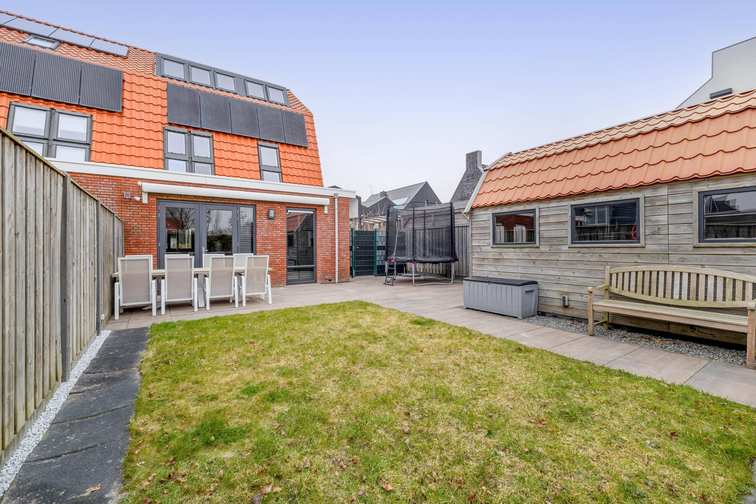 Er liggen totaal 13 panelen op de woning. De afgesloten tuin met hekwerk is ruim en ingericht met gras en tegels. Grote vrijstaande houten berging met kap en betonvloer. Dubbele deuren dus ideaal voor de klusser of de motorrijder.