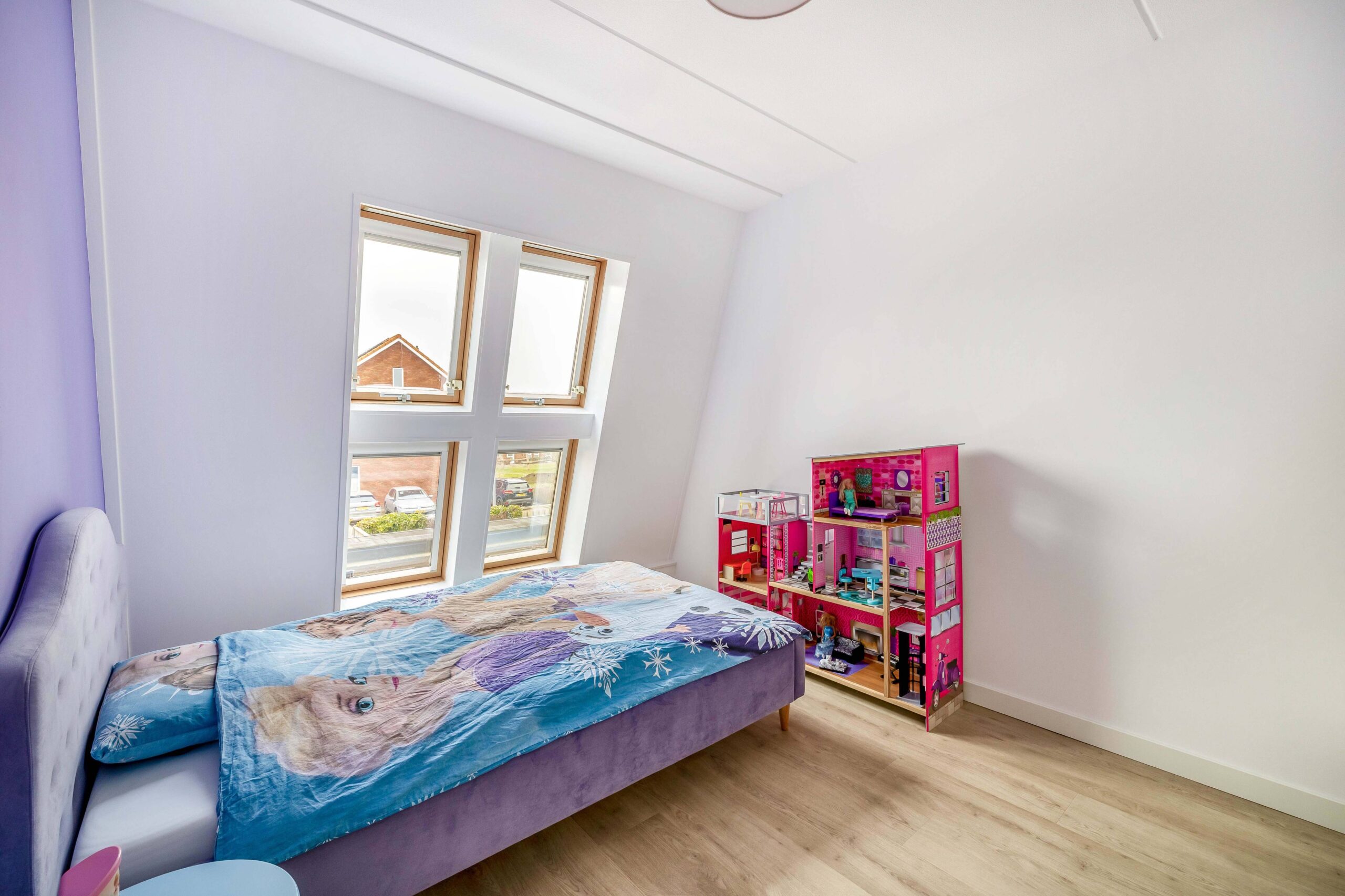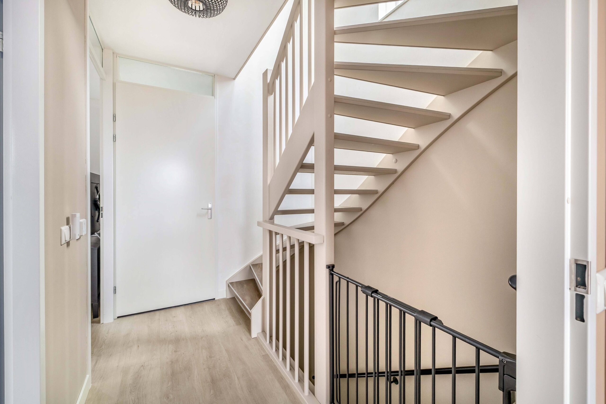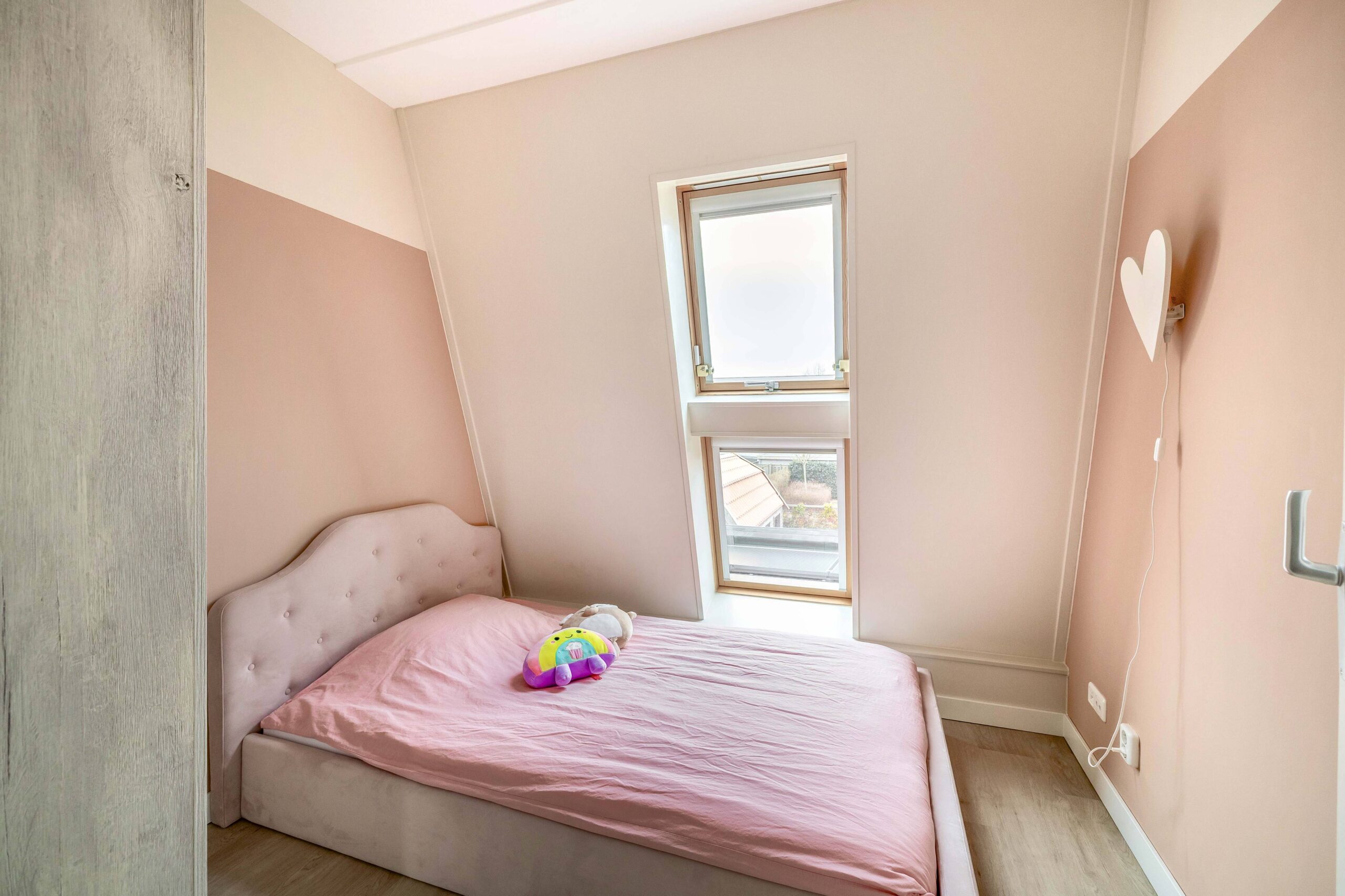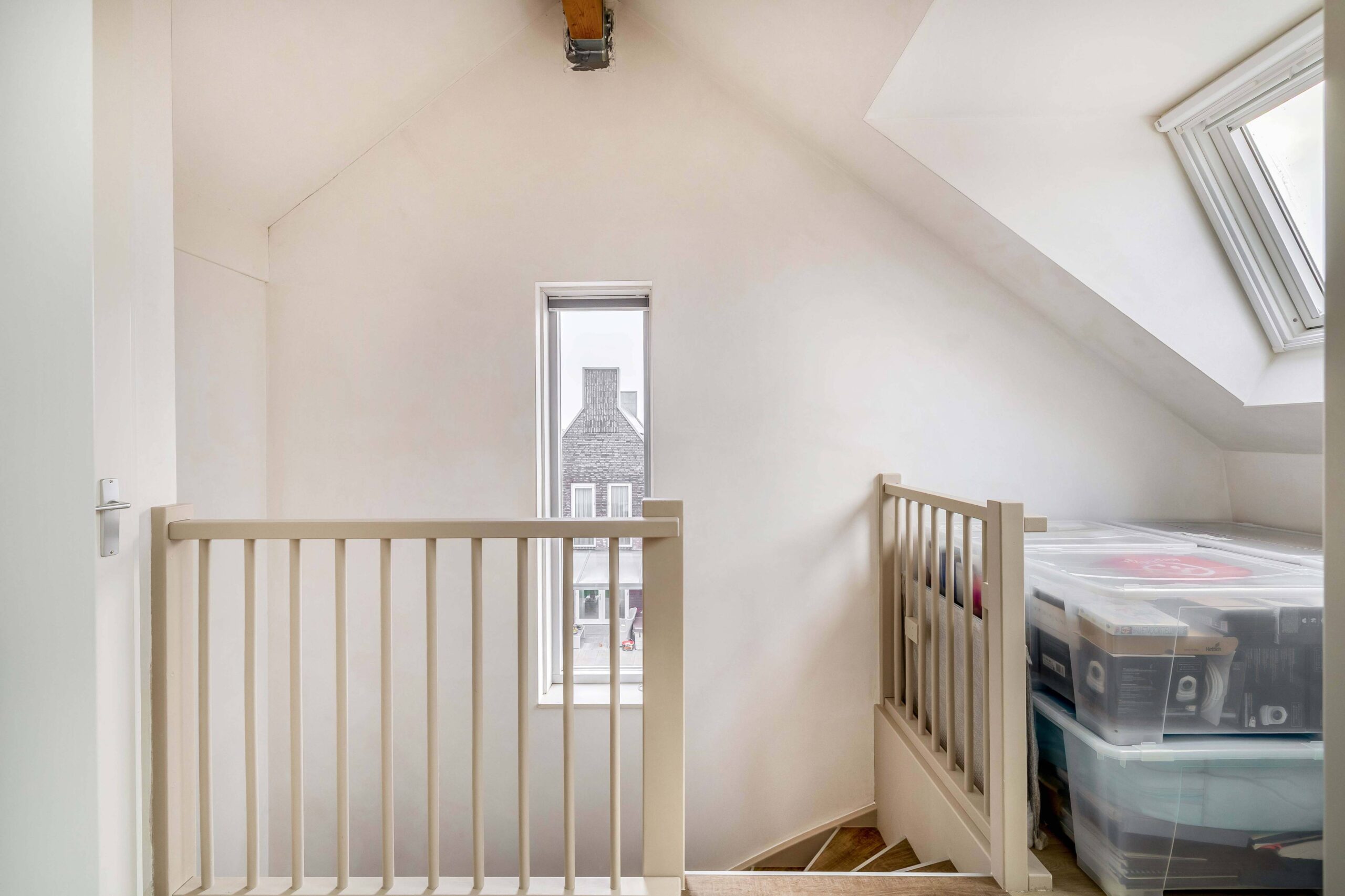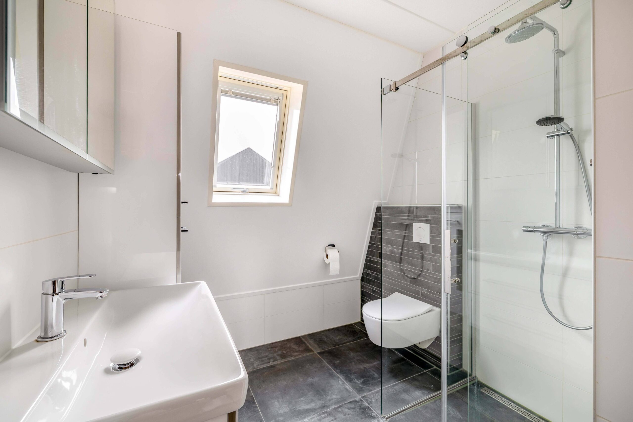 Via de mooie door upstairs beklede trap met pvc kom je op de 1e verdieping, waar een nieuwe pvc vloer in 2021 is gelegd. Aan de achterzijde twee slaapkamers met dubbele dakramen. En aan de voorzijde de ruime hoofdslaapkamer. De badkamer is ingericht met een inloopdouche met schuifdeur, wastafelmeubel, kast en 2e vrijdragend toilet.