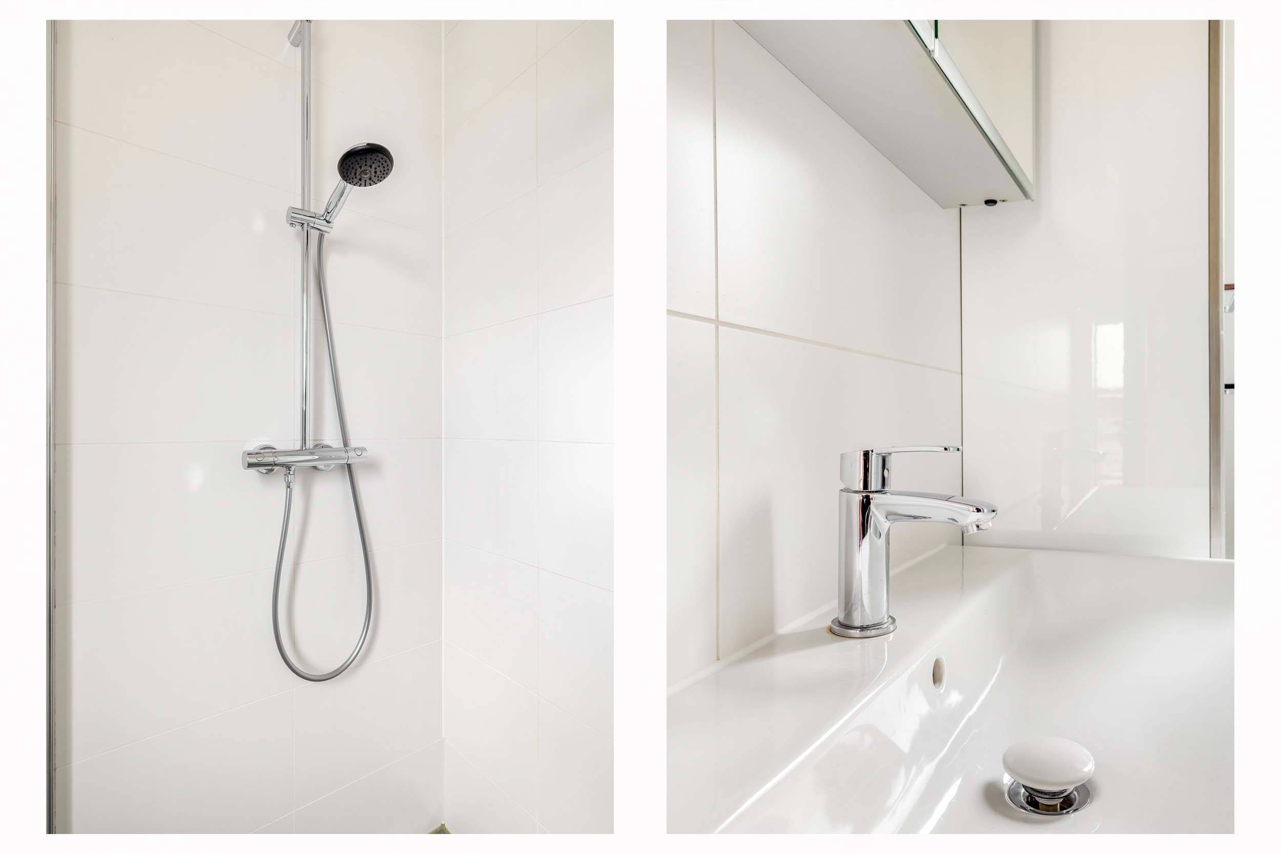 Het toilet is luxe met vrijdragend closet en fontein. De hele woning is strak geverfd hetzij de met renovlis behangen wanden, hetzij de grotendeels gestuukte wanden.