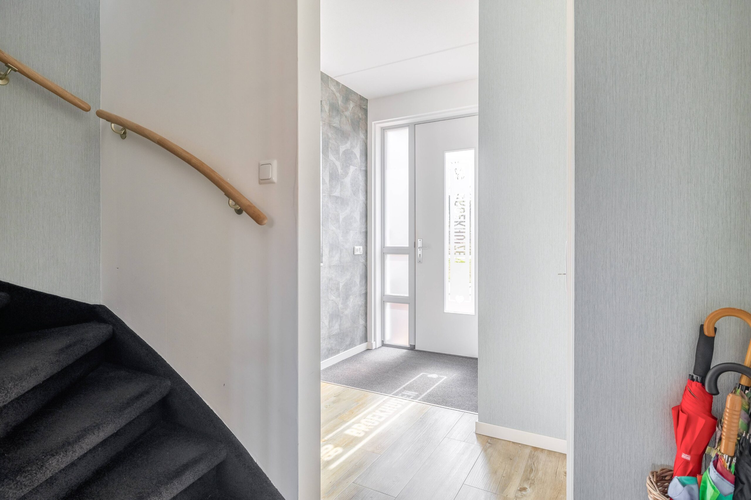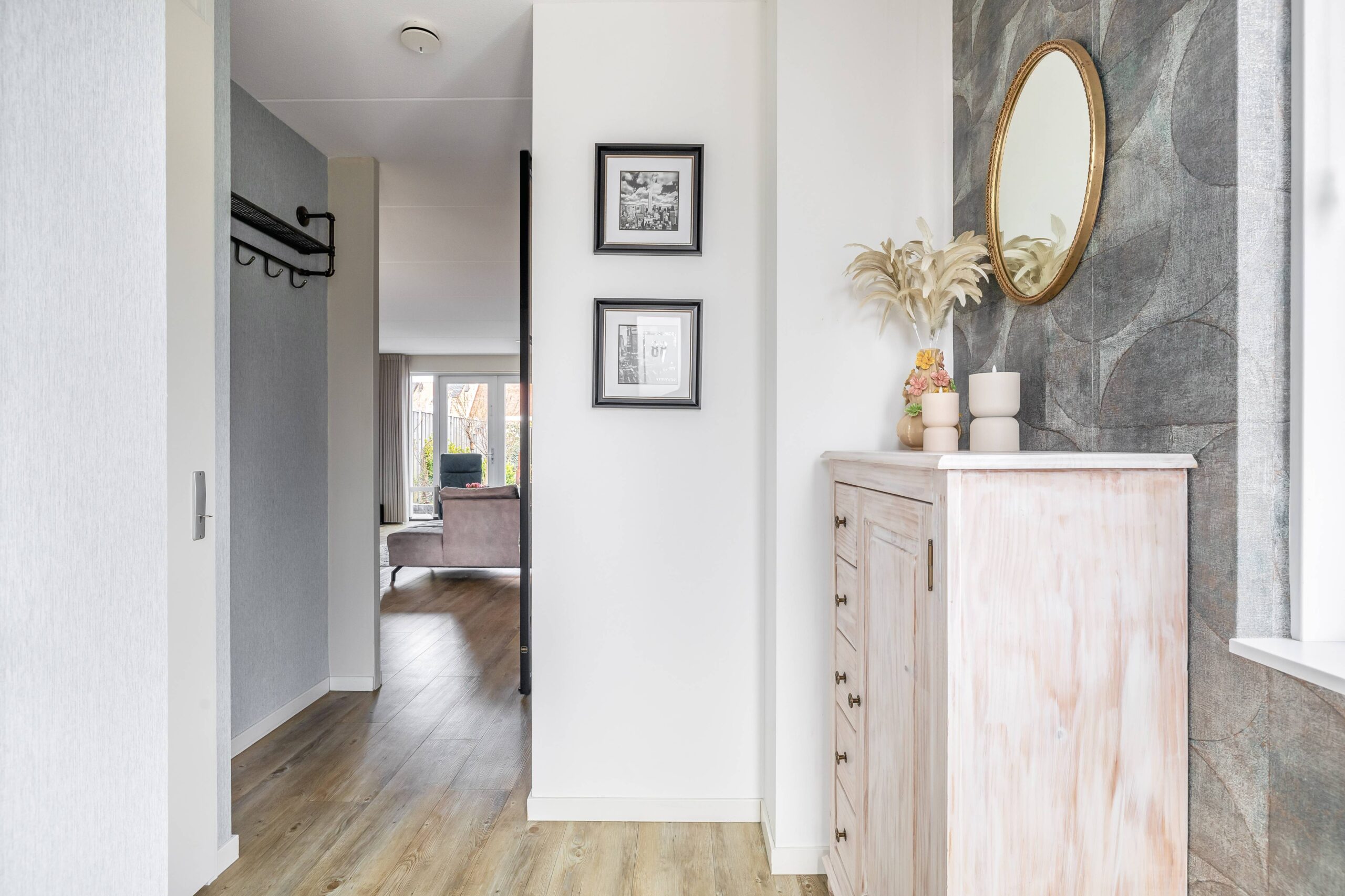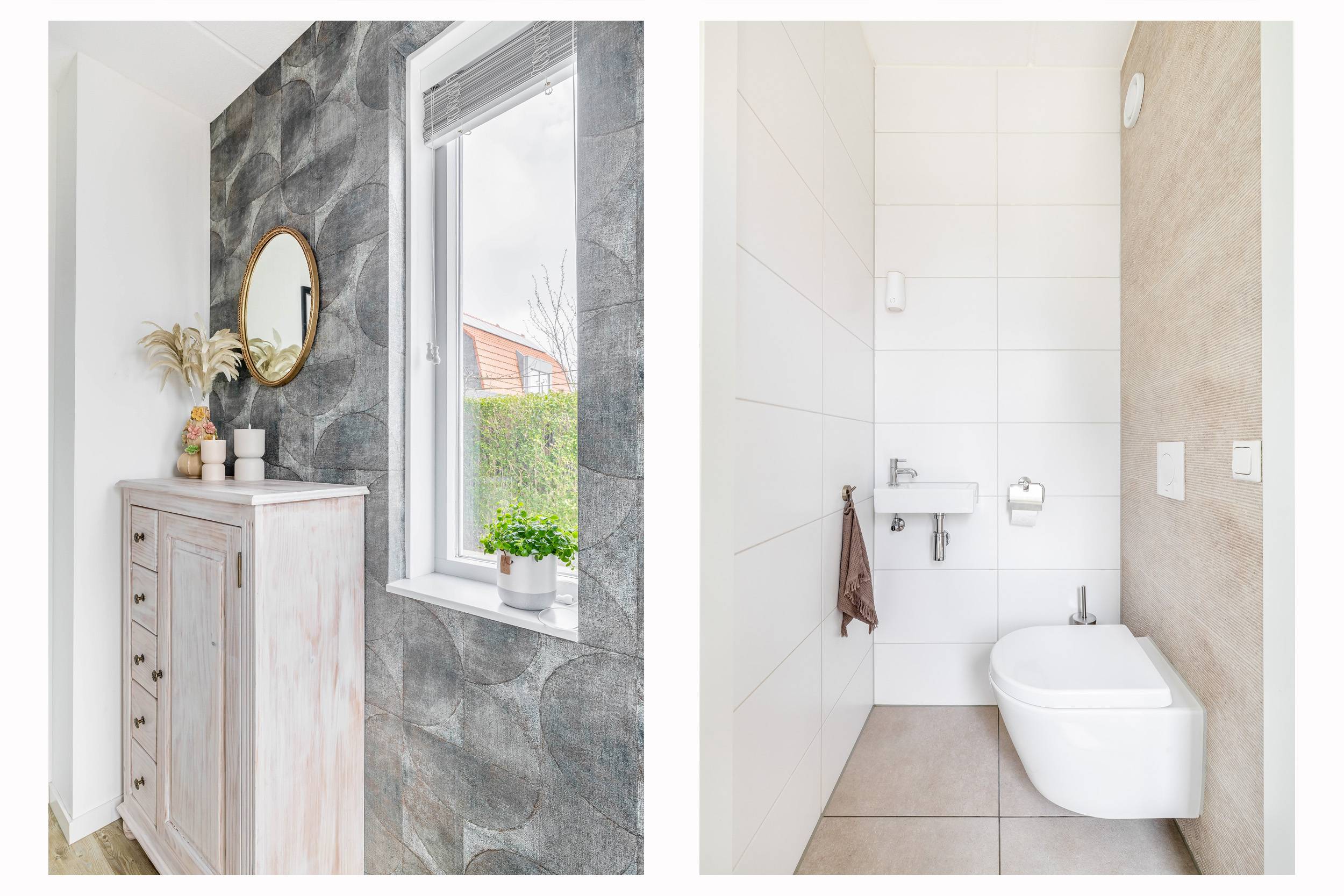 De entree is aan de zijkant en vanaf dat moment als je binnenkomt wordt je verliefd op deze woning. Op de vloer een mooie pvc vloer, ideaal voor de vloerverwarming. De gehele woning heeft renovlies strak behang wat eruit ziet als gestuukte wanden. Het toilet is luxe uitgevoerd. De meterkast voldoet aan de huidige tijden en ook de zeer geliefde taatsdeur naar de woonkamer is aanwezig.