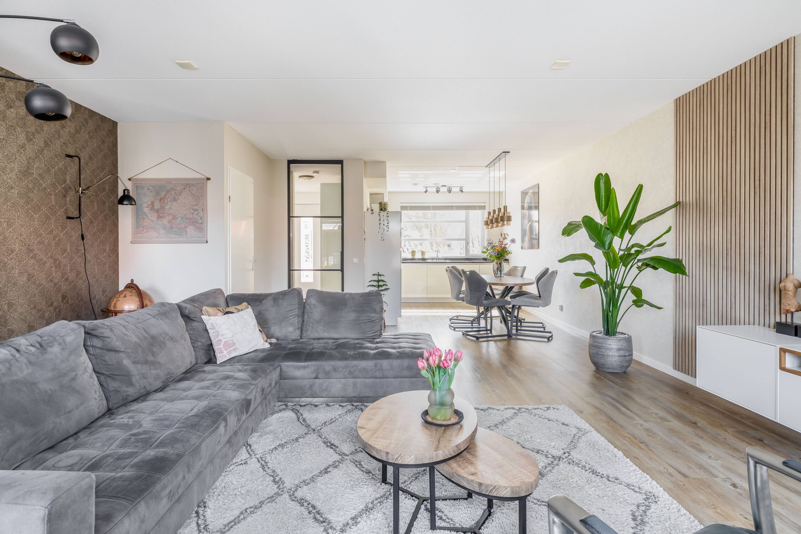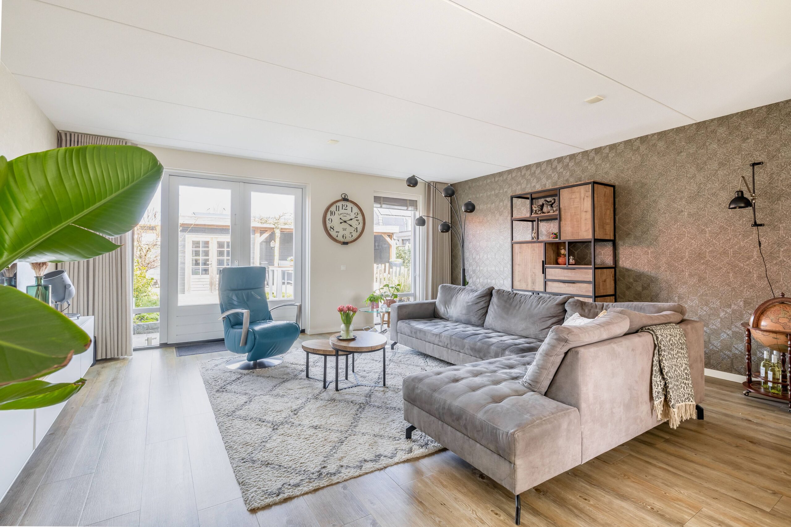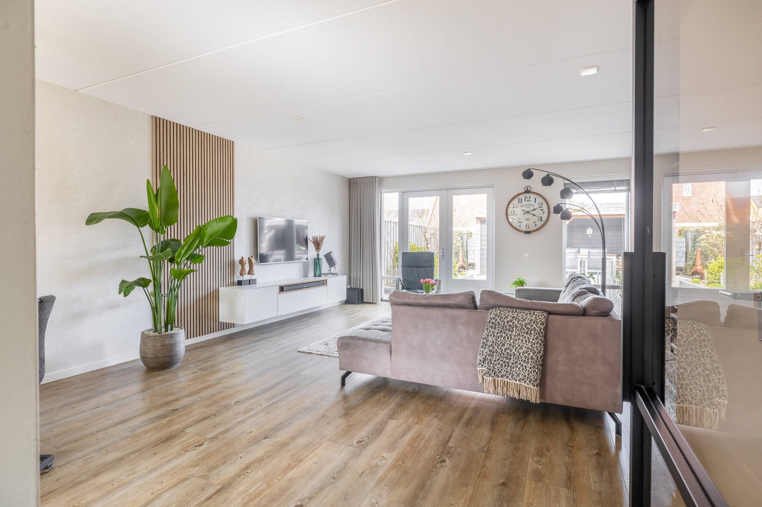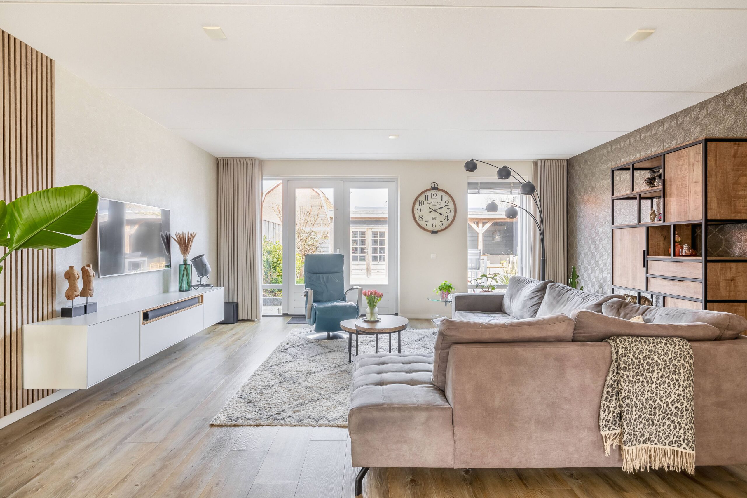 De woonkamer is heerlijk ruim met aan de achterzijde veel lichtinval door de ramen en tuindeuren.