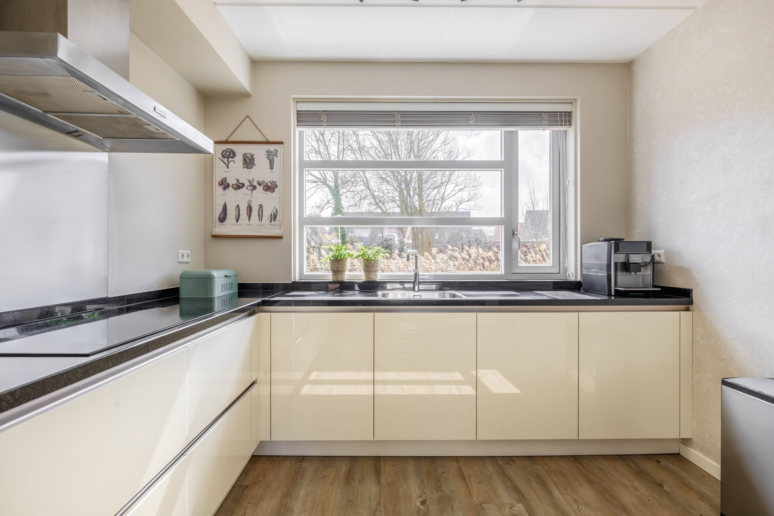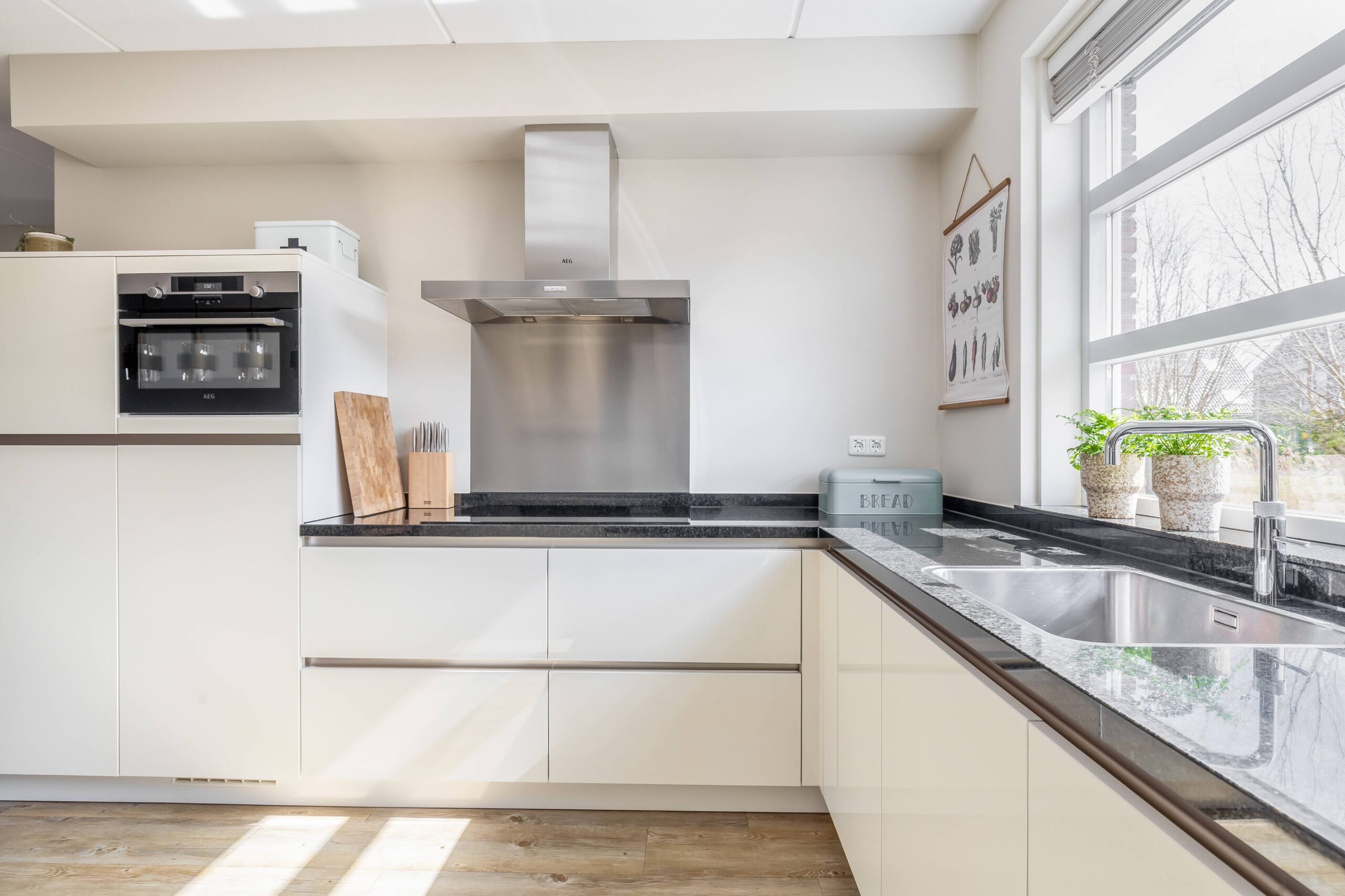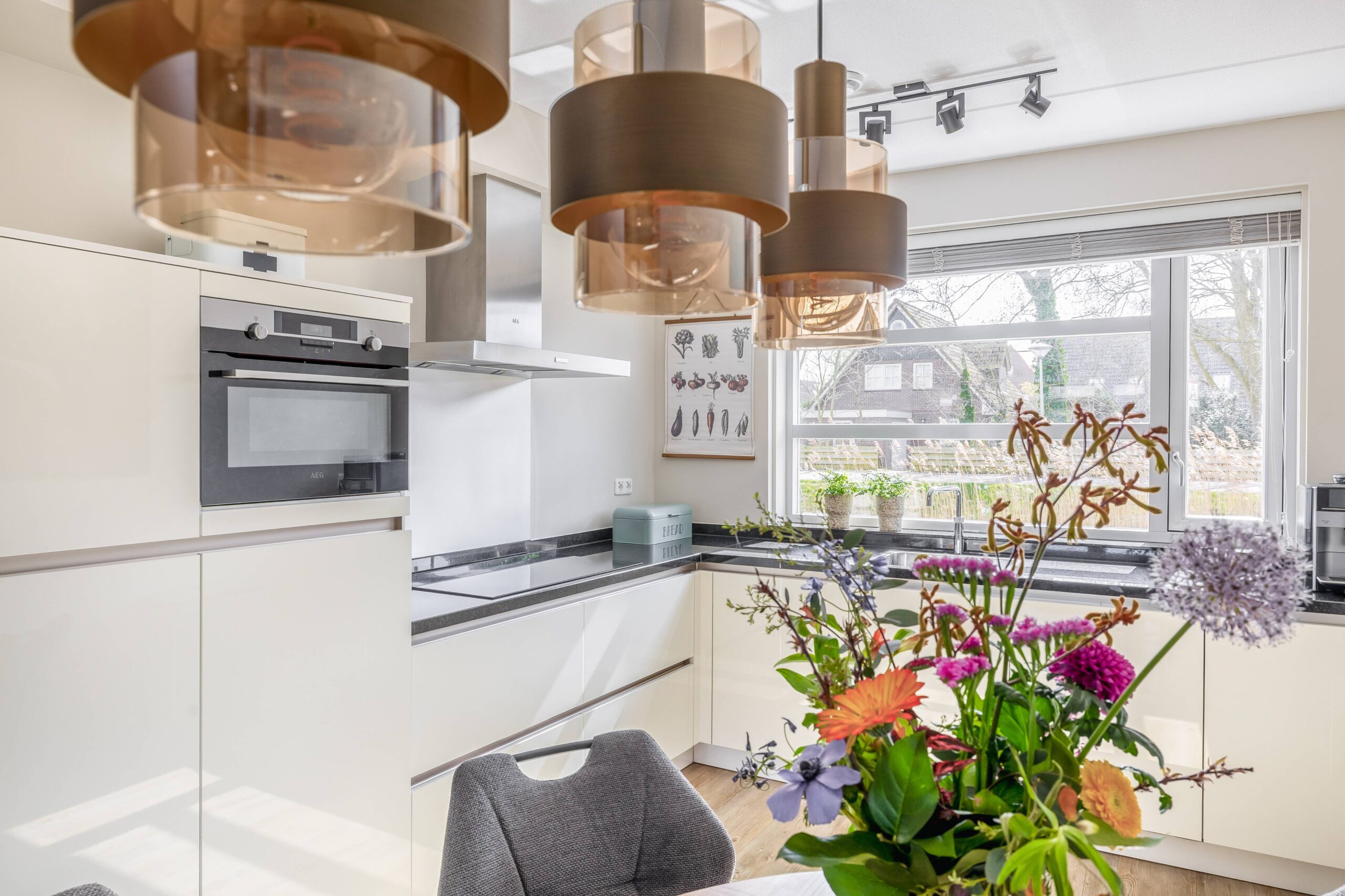De keuken is aan de voorzijde gelegen. Mooie luxe keuken met inbouwapparatuur zoals de koelkast, vaatwasser, afzuigkap, combi-magnetron en 5-pits inductiekookplaat.