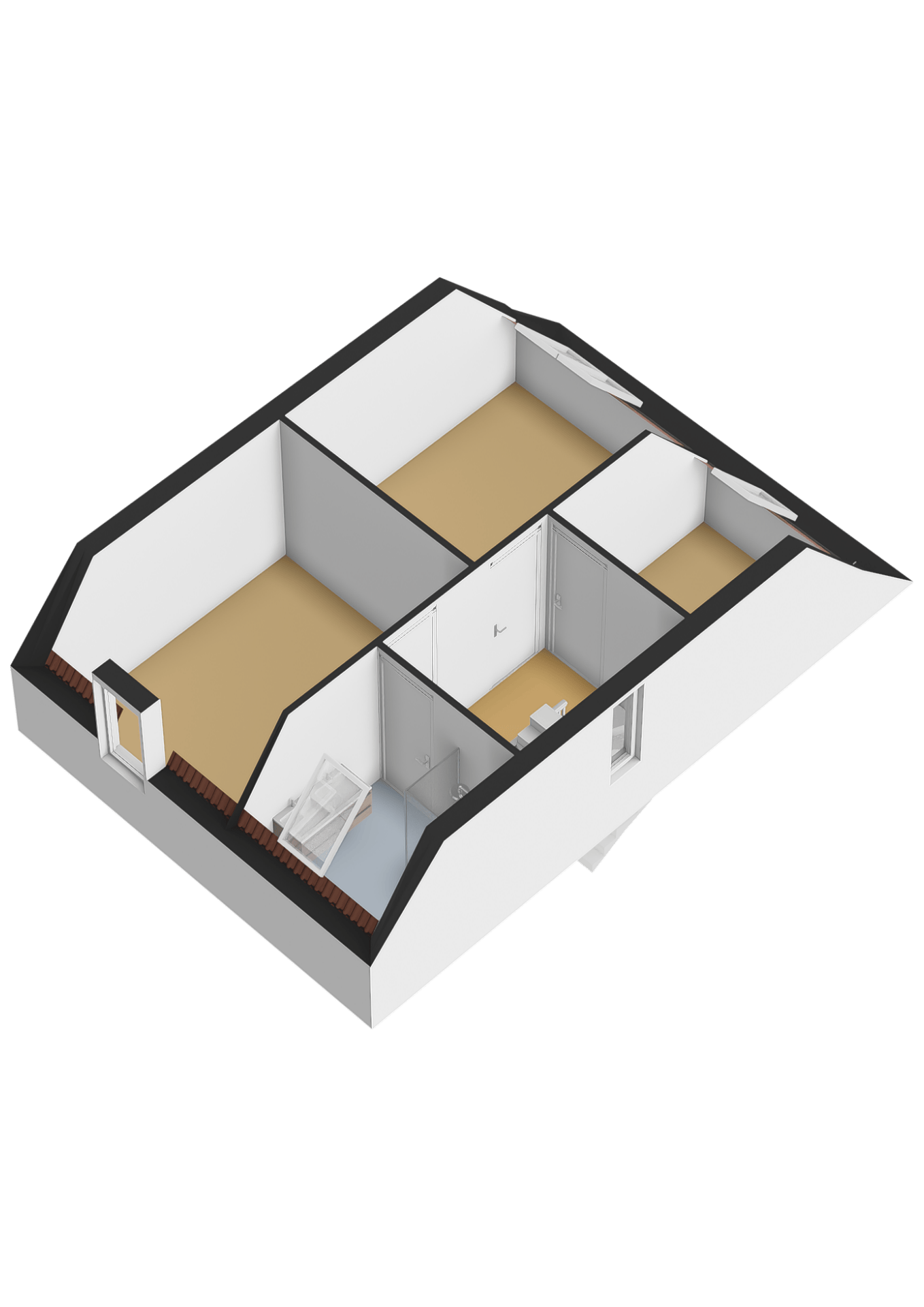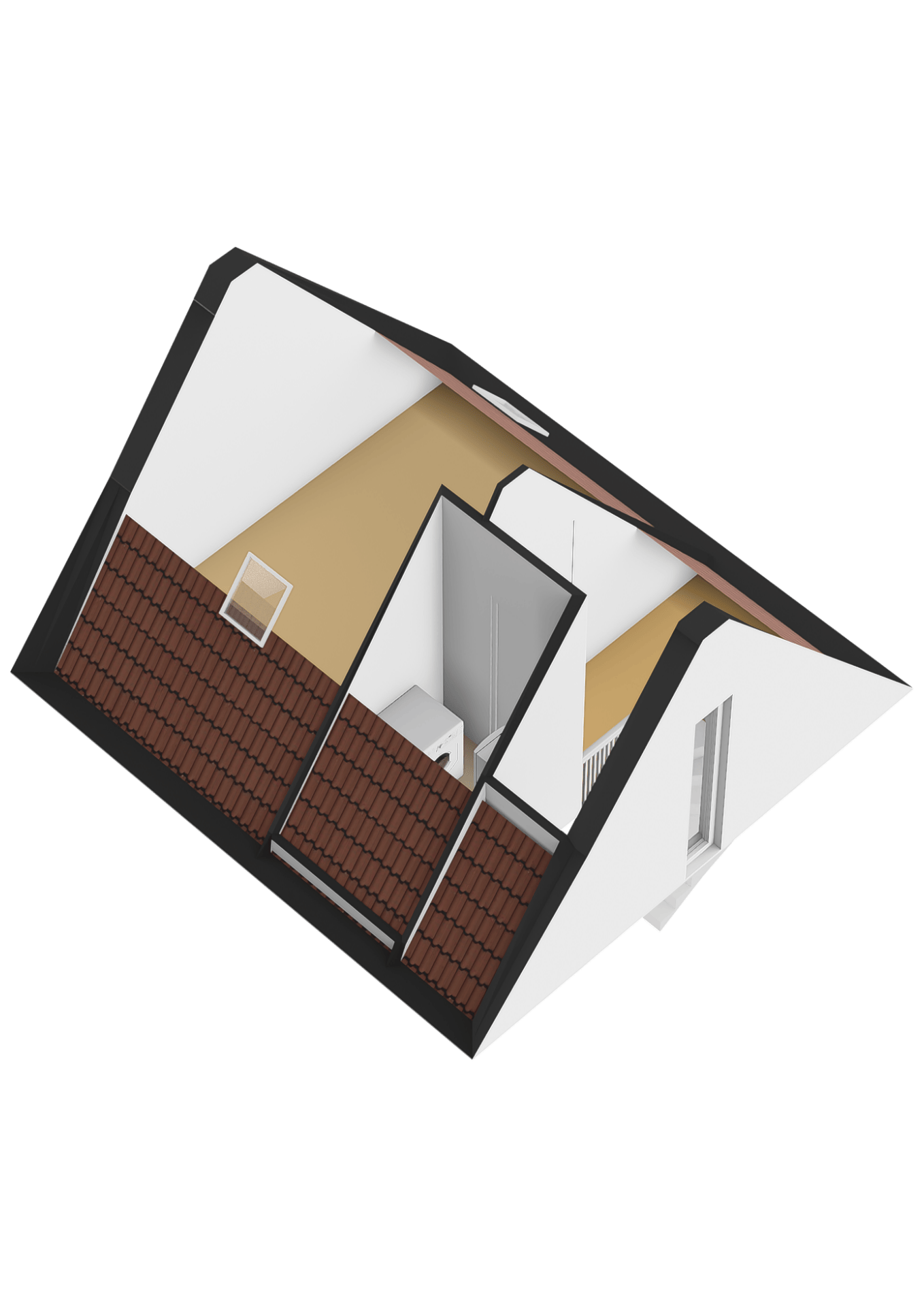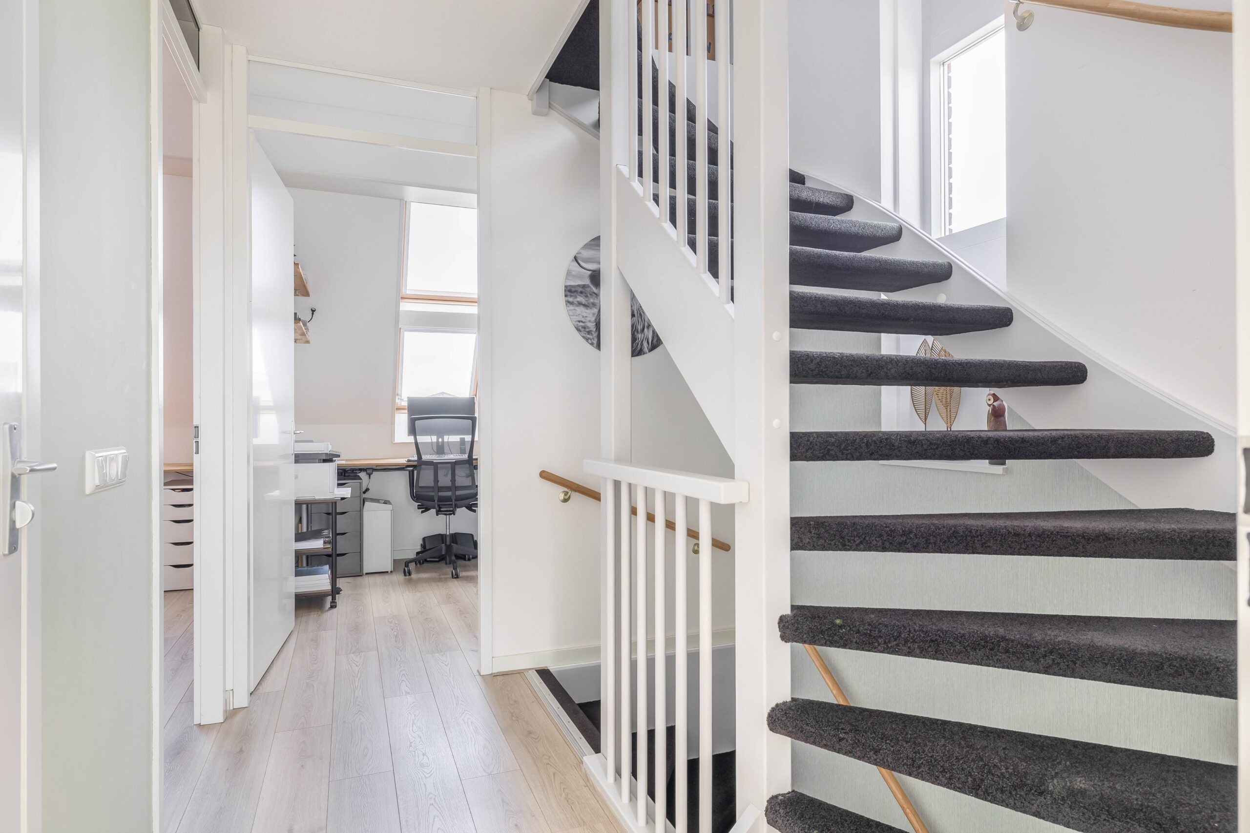 Vaste trap naar de zolderverdieping. Overloop met lekker veel licht door het zijraam en een wasruimte en de opstelling van de technische apparatuur. Vierde slaapkamer met aan beide kanten een dakraam.