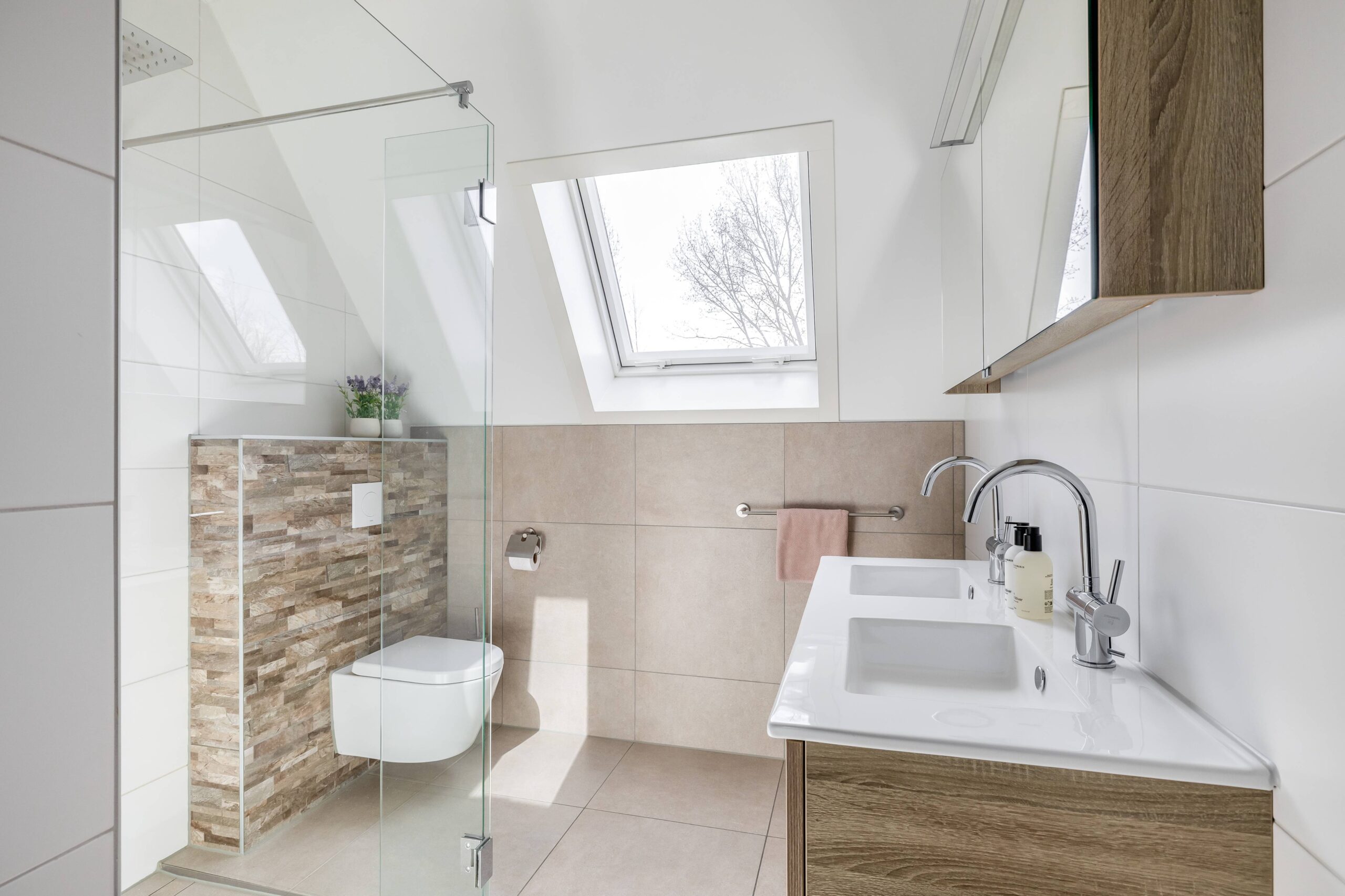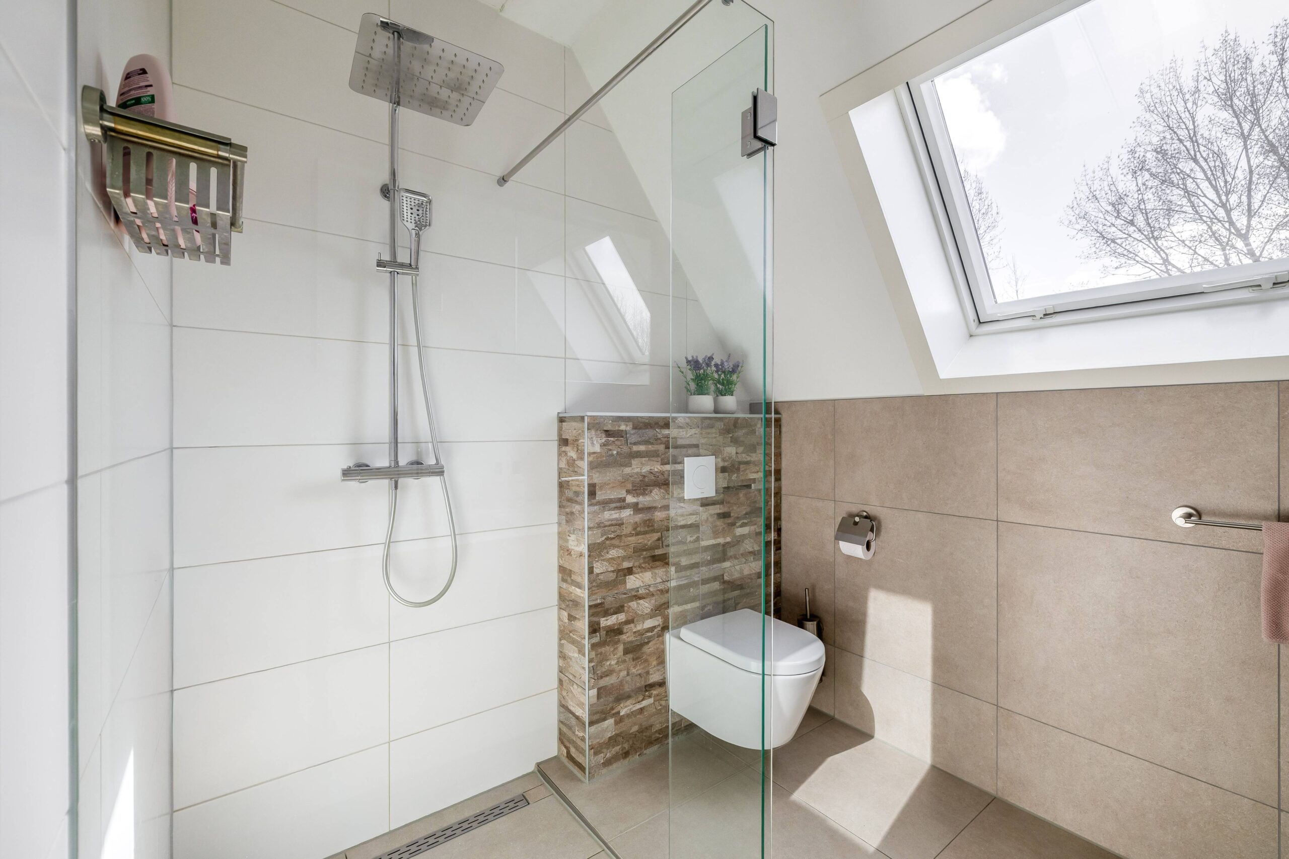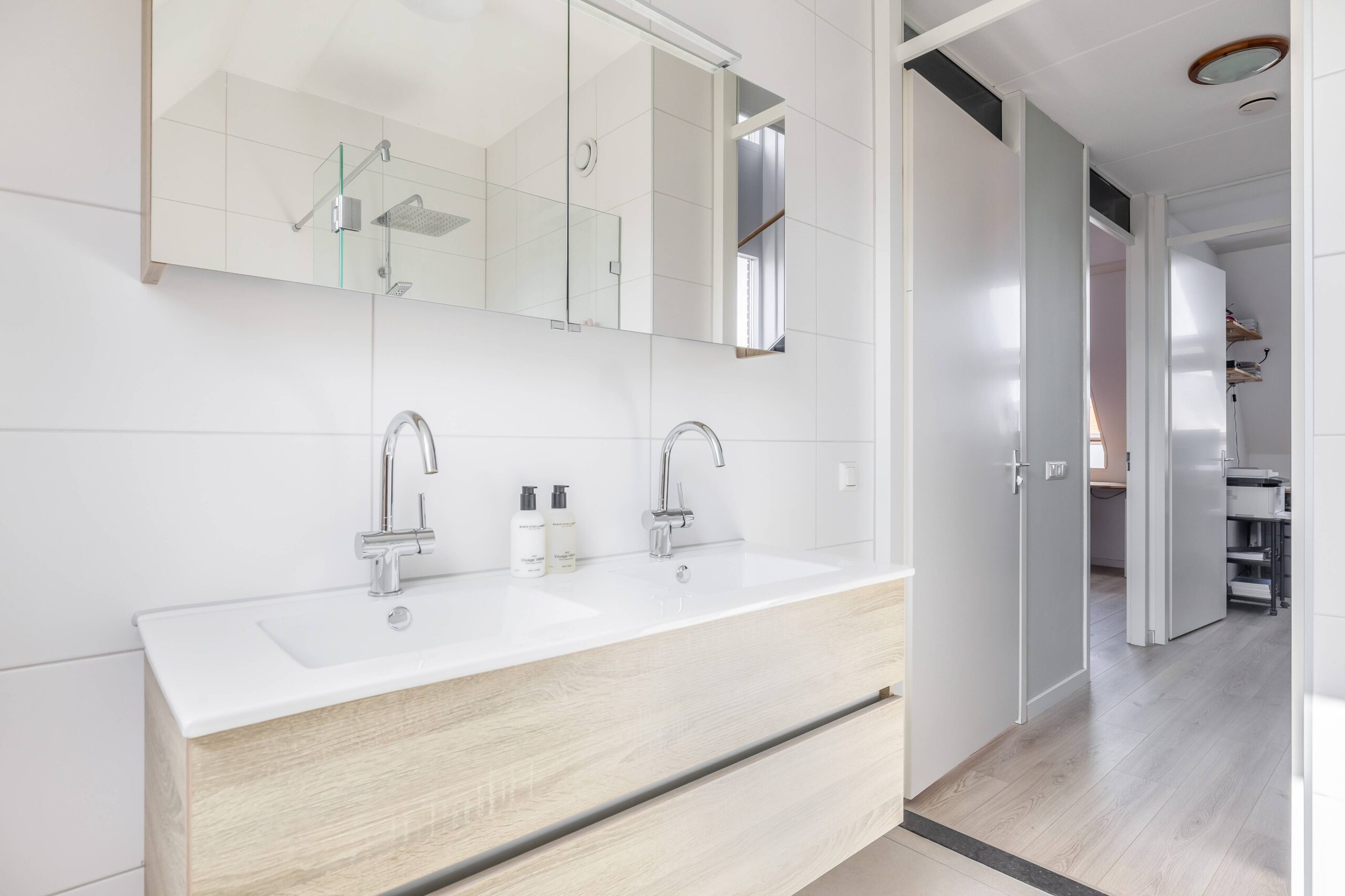 Op de 1e verdieping zijn drie slaapkamers gesitueerd met dubbele dakramen aan de achterzijde welke zorgen voor veel licht en een dakkapel aan de voorzijde. De badkamer is eveneens keurig met een ruime douchecabine voorzien van een stort en handdouche, 2e vrijdragend toilet met speels tegelwerk en een dubbele wastafel met meubel.
