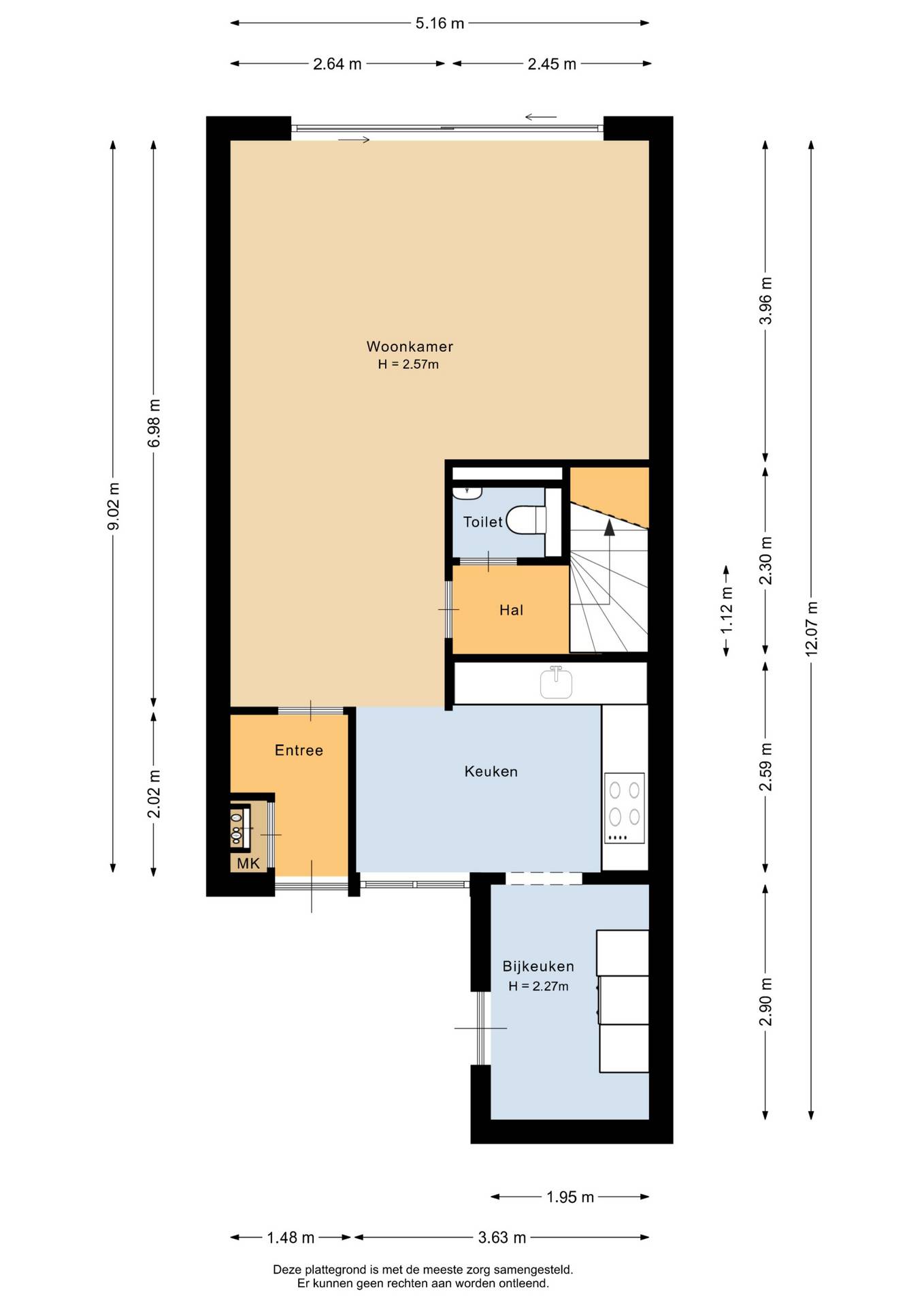 De indeling van de woning is als volgt: