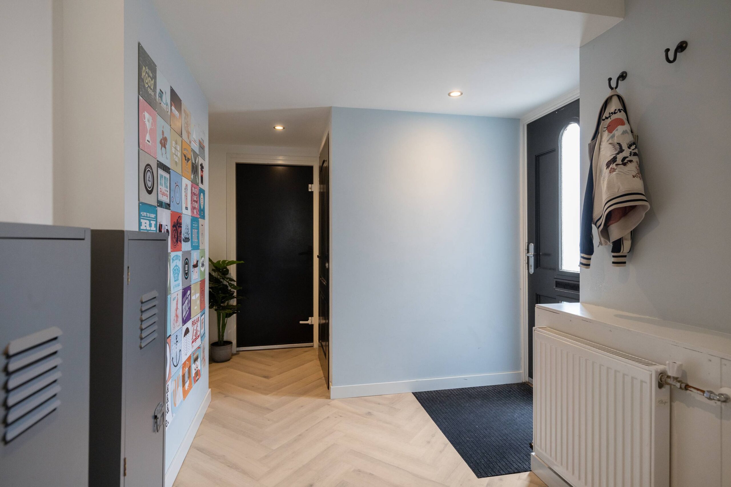 De entree van de woning is vergroot, waardoor de hal extra ruim is. Vanuit de hal toegang tot het toilet met fontein, de garage en de woonkamer.