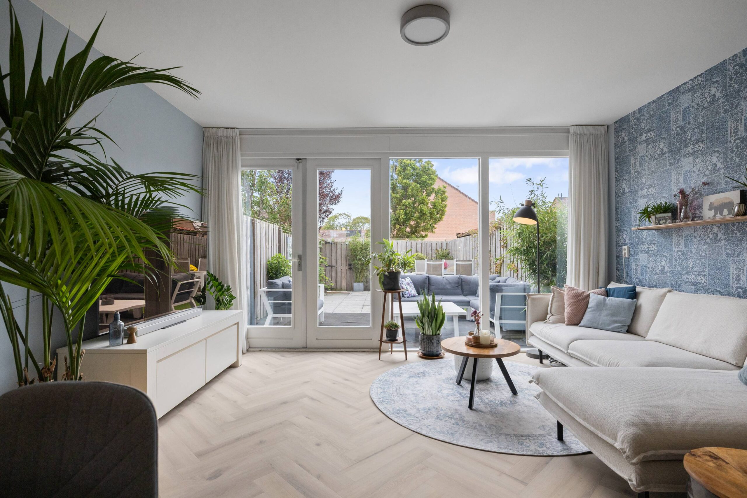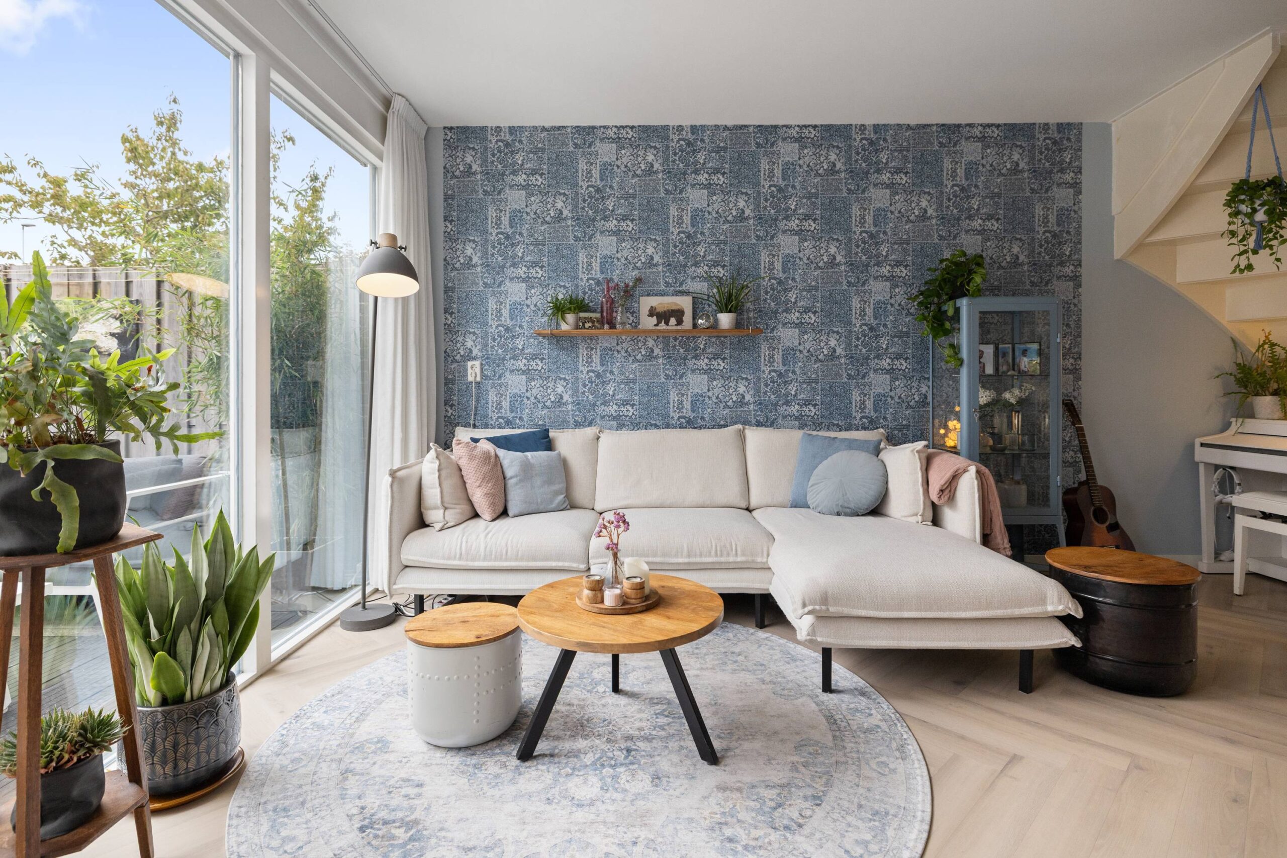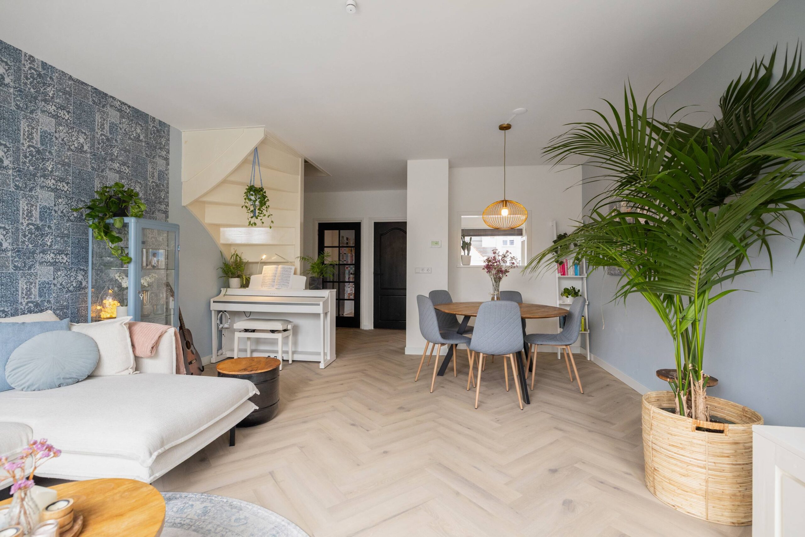 De woonkamer is erg licht dankzij de grote raampartijen en openslaande deuren naar de achtertuin. Op de vloer ligt een moderne pvc-vloer (2023 en topkwaliteit) in visgraat met daaronder vloerverwarming. Aan de voorzijde van de woning tref je de halfopen keuken. Deze is in hoekopstelling geplaatst en ingericht met een 4-pits gaskookplaat, afzuigkap, koel-vriescombinatie, vaatwasser en combimagnetron.