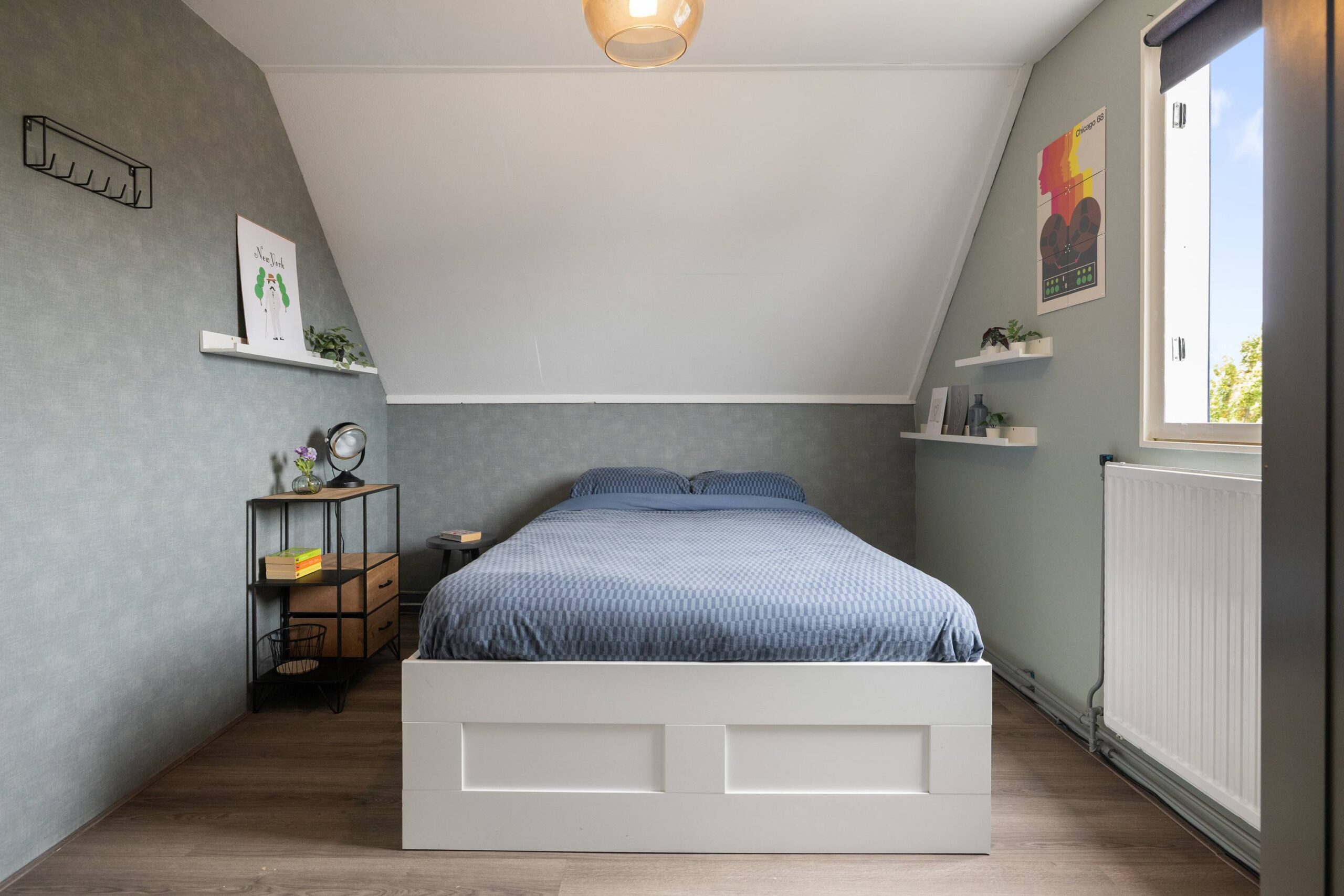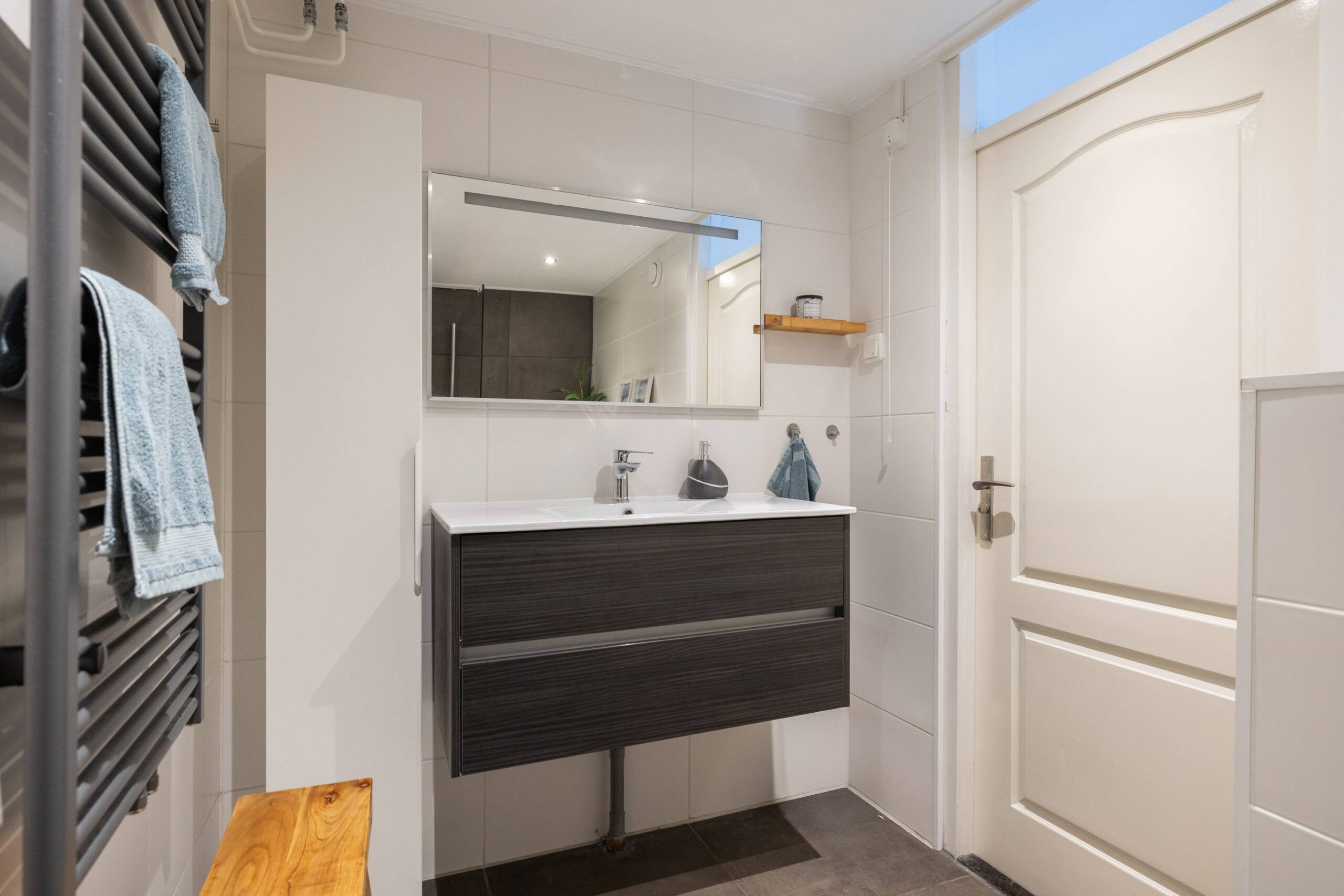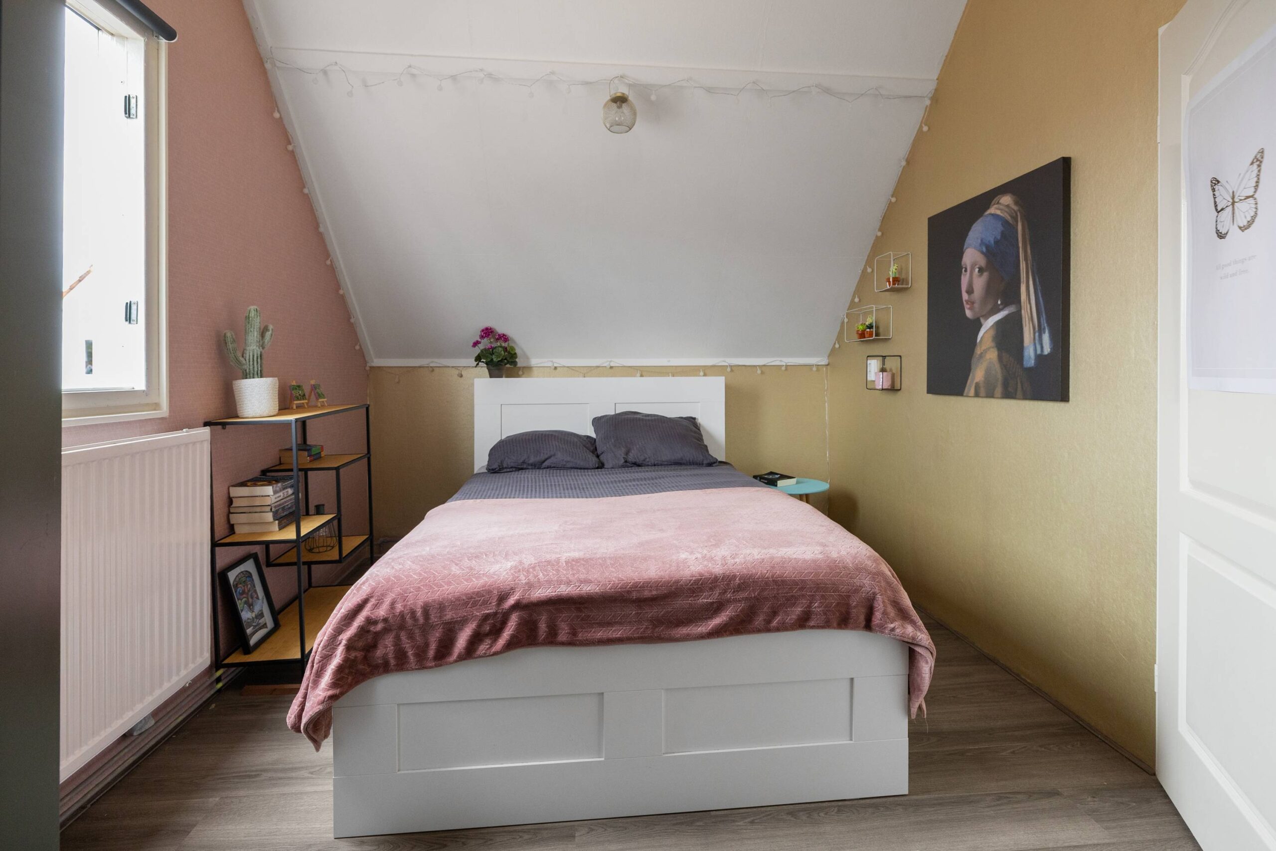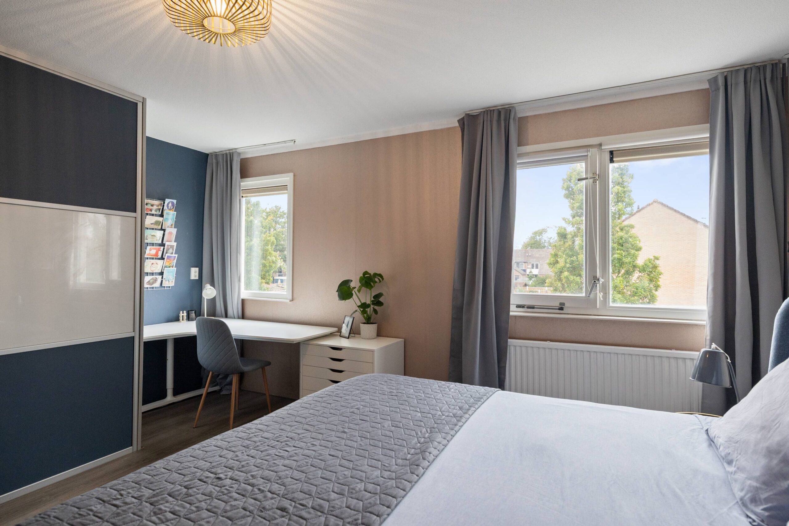 Op de 1e verdieping bevinden zich twee slaapkamers en de vergrootte badkamer. De slaapkamers zijn netjes en de slaapkamer aan de achterzijde is voorzien van een vaste kastenwand. De badkamer is ingericht met een wastafelmeubel, 2e vrijdragend toilet, een ruime inloopdouche en handdoekradiator.