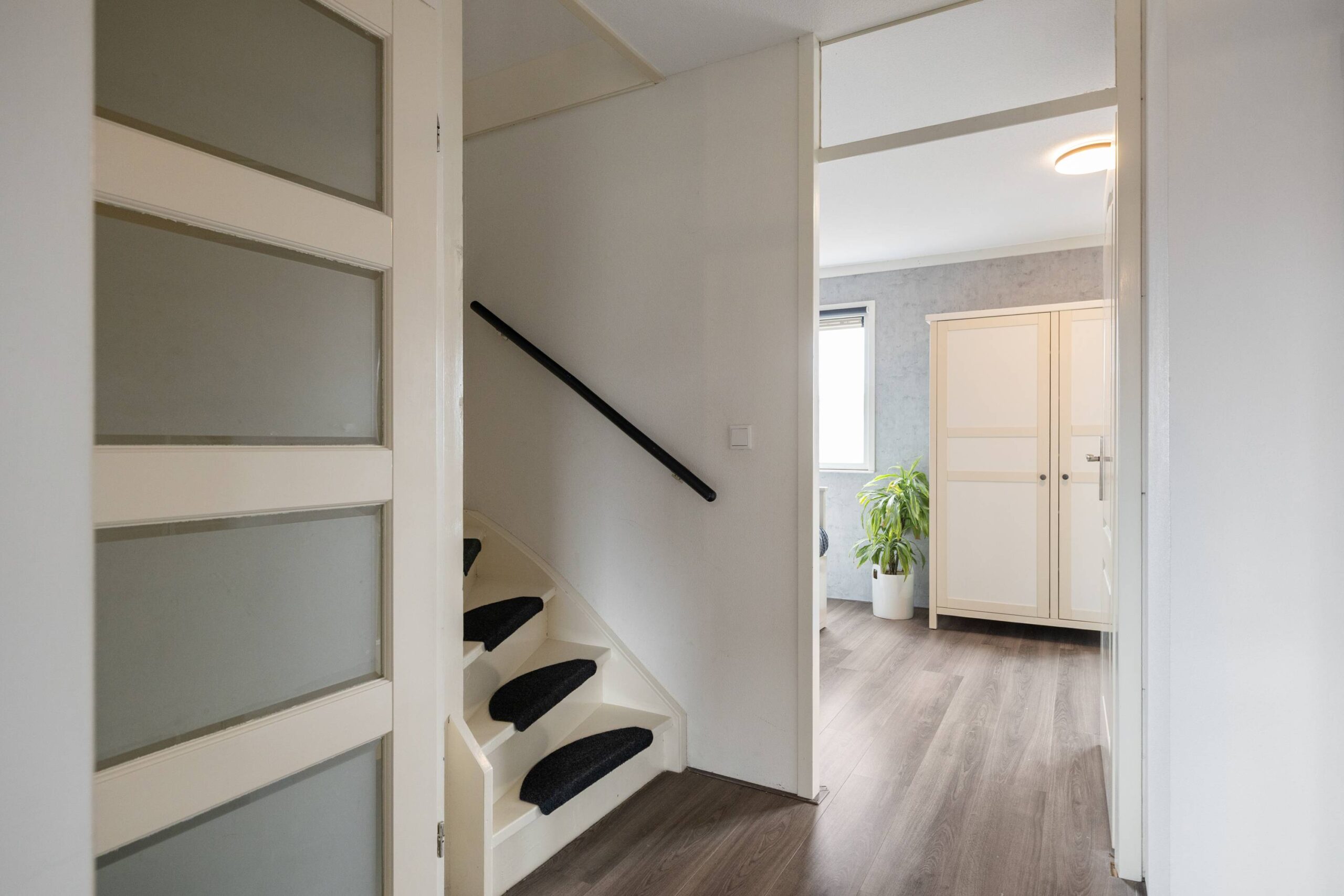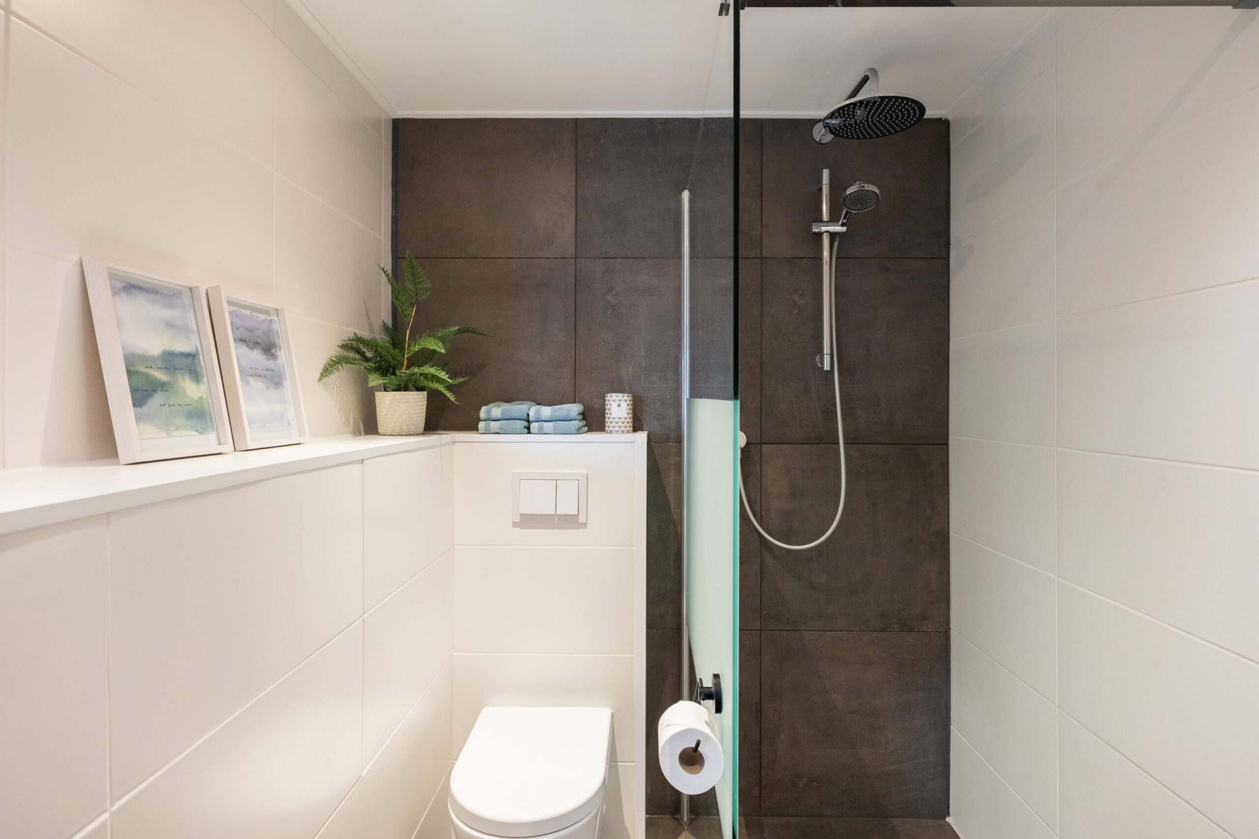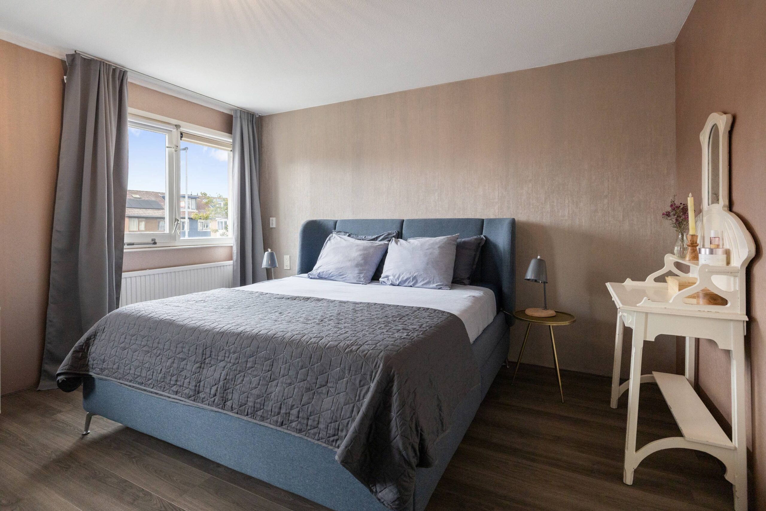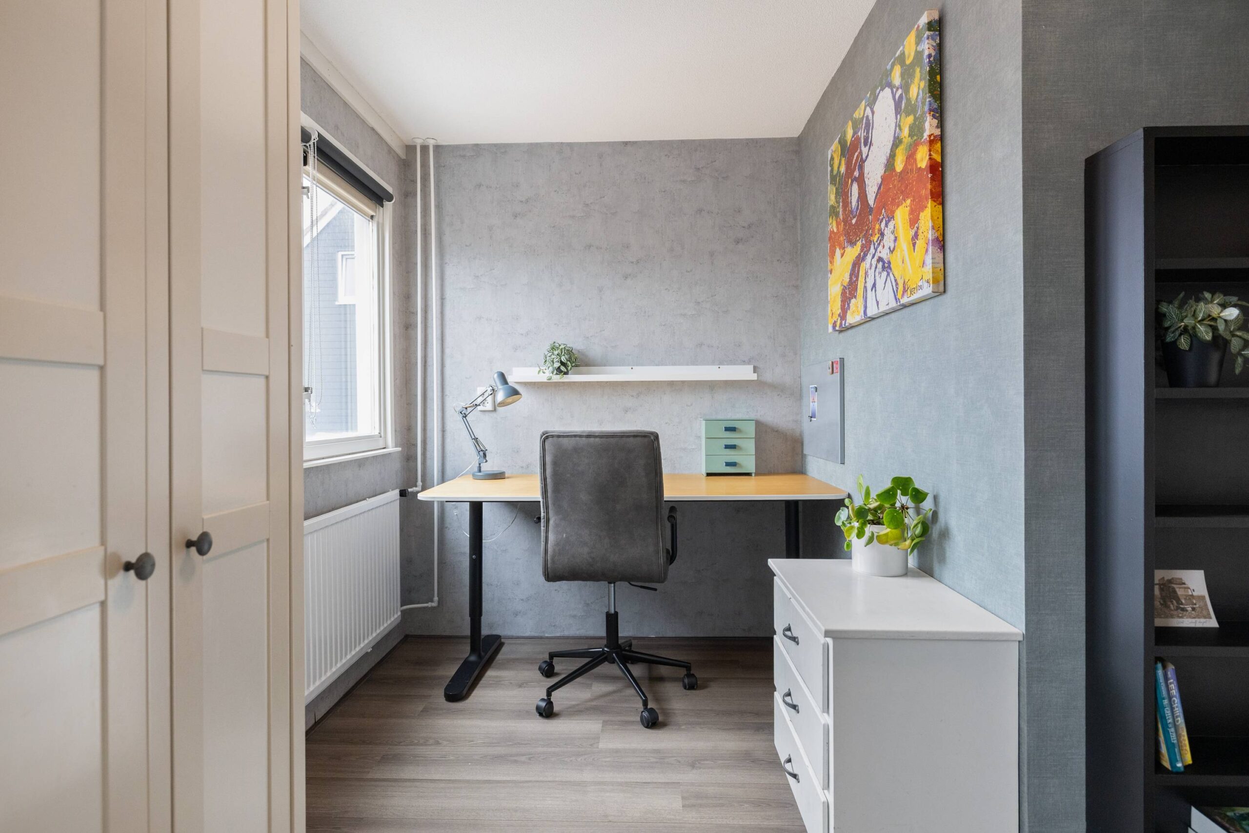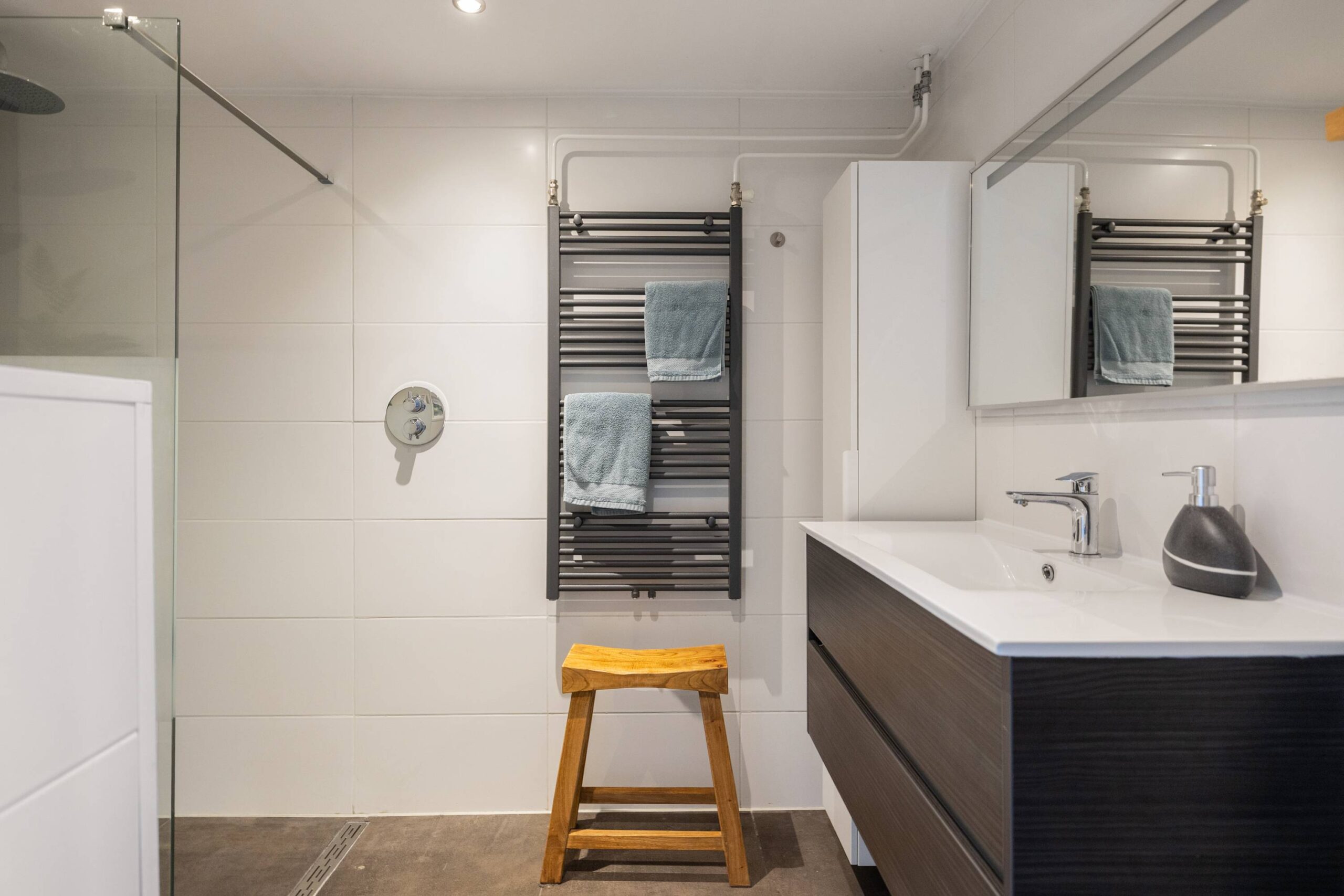 Op de 1e verdieping bevinden zich twee slaapkamers en de vergrootte badkamer. De slaapkamers zijn netjes en de slaapkamer aan de achterzijde is voorzien van een vaste kastenwand. De badkamer is ingericht met een wastafelmeubel, 2e vrijdragend toilet, een ruime inloopdouche en handdoekradiator.