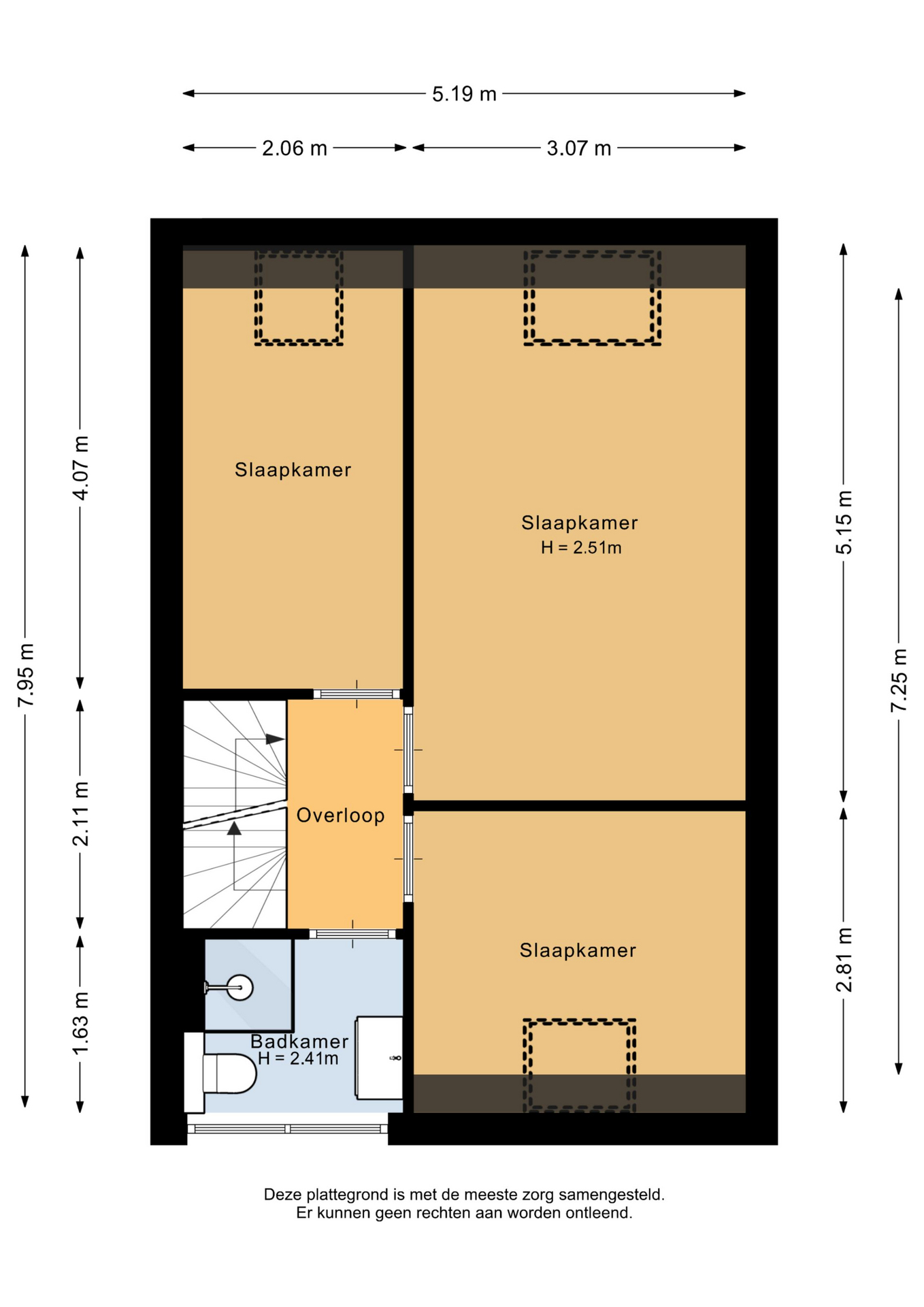 Op de verdieping zijn 3 slaapkamers allen van goed formaat. De dakramen aan de achterzijde zijn hier al vernieuwd.