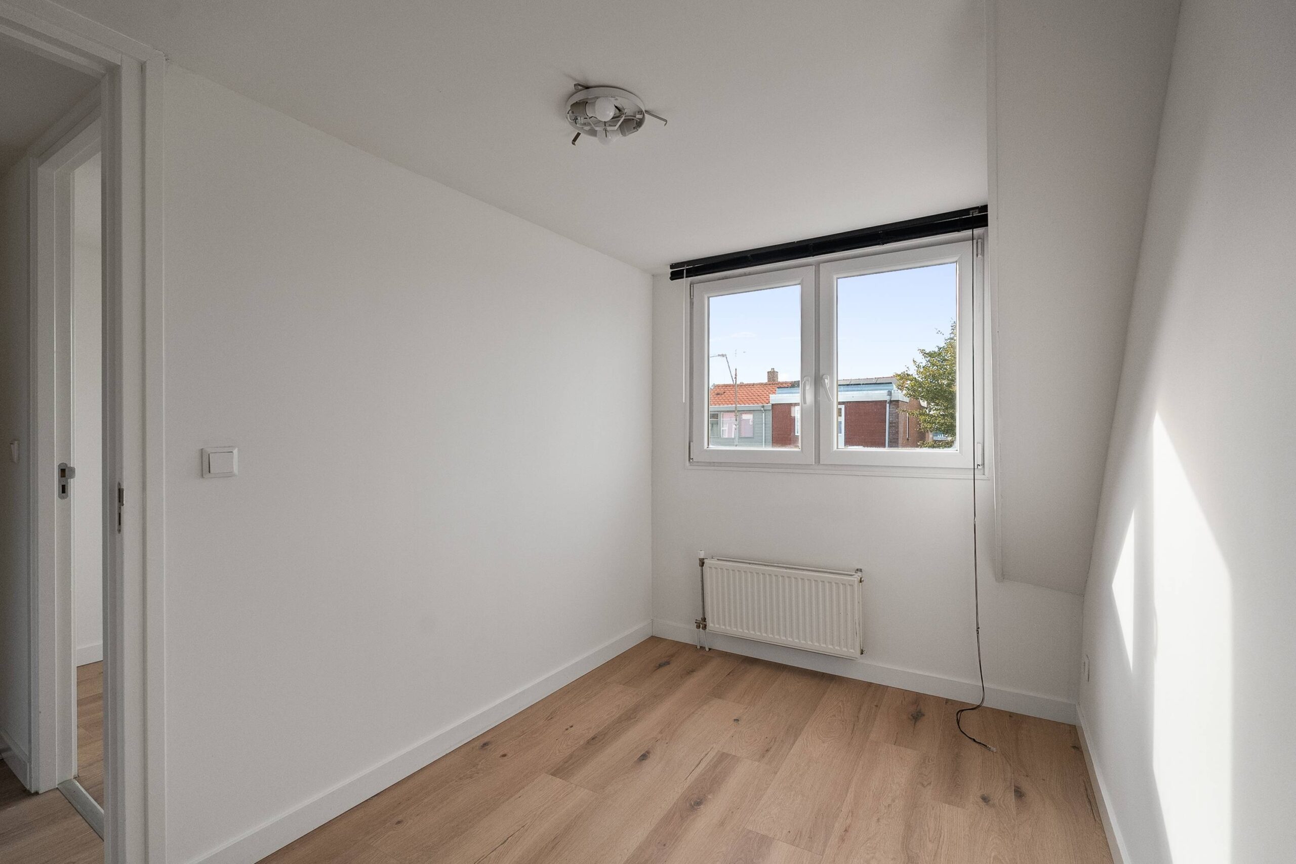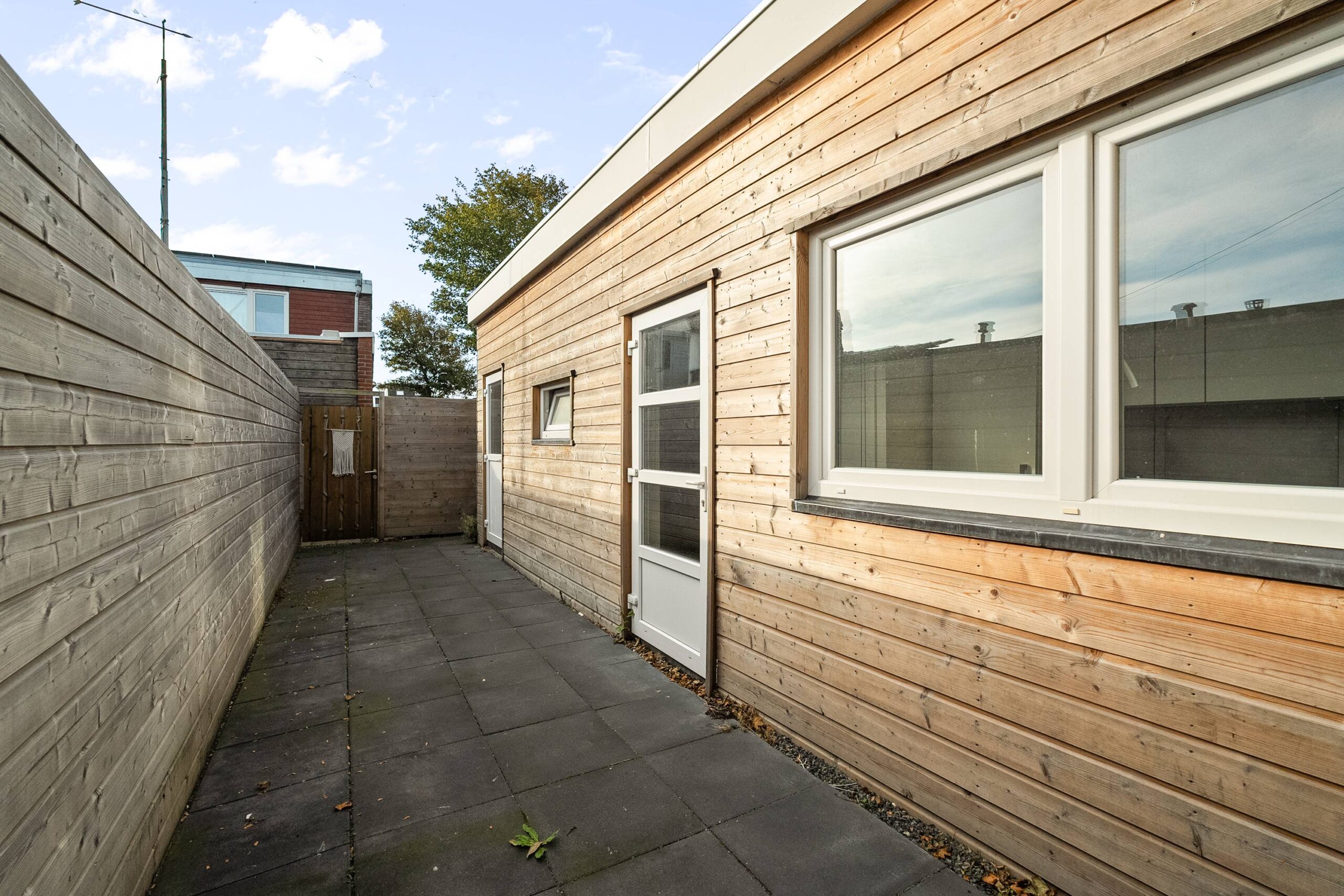 Indeling: entree, hal met nieuwe meterkast. De woonkamer is royaal en voorzien van mooie laminaatvloer en stucwerk wanden en plafond. In de uitbouw tref je de moderne keuken voorzien van inbouwapparatuur waaronder een vaatwasser, combimagnetron, inductiekookplaat en koelkast. Aansluitend de vernieuwde toiletruimte en een luxe, volledig betegelde badkamer, ingericht met wastafelmeubel en douchecabine. De achtertuin ligt op het zonnige zuiden en is volledig bestraat. Er is een berging voor de fiets en een achterom.