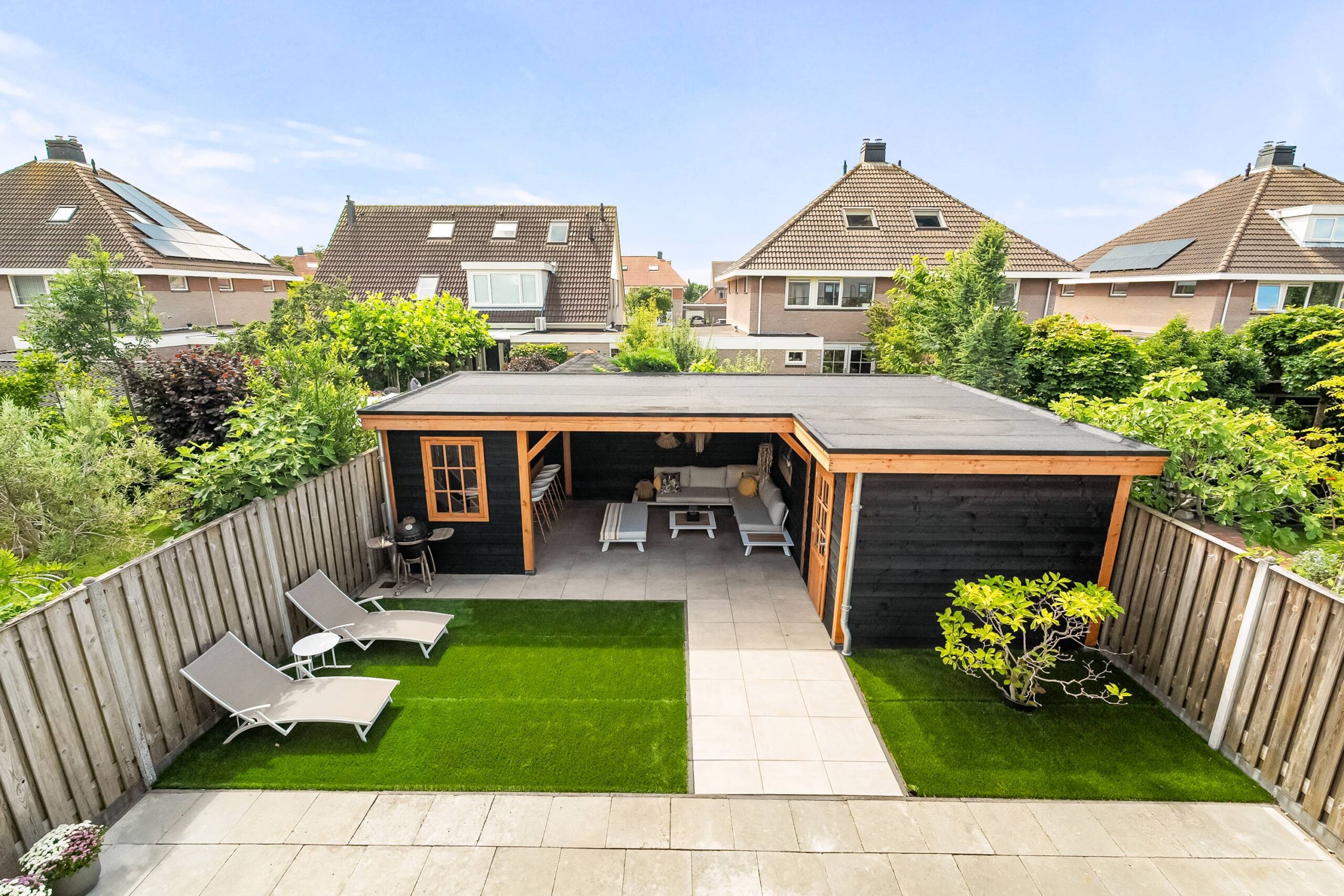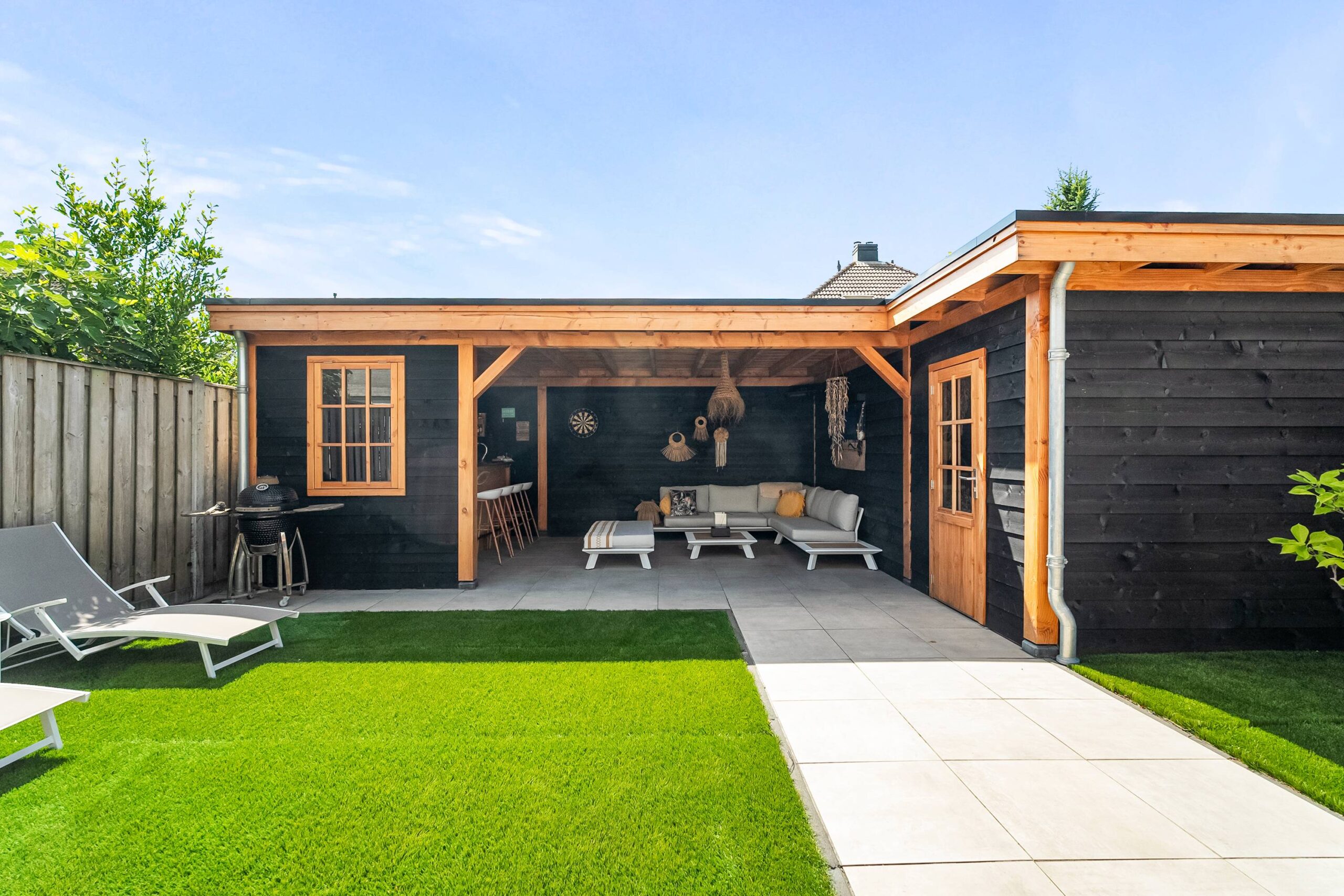 Overkapping om in de avond uurtjes ook nog heerlijk te genieten. Schilderwerk is nog dit jaar buitenom gedaan.