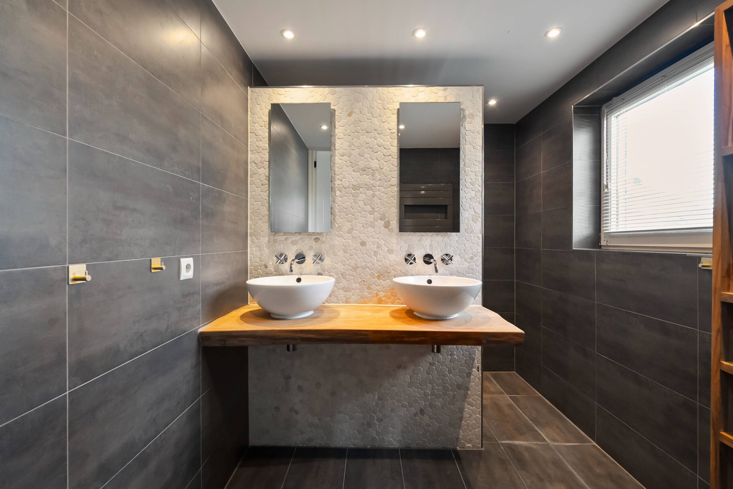 Op de 1e verdieping 3 slaapkamers waarvan 1 met balkon en airco-unit. De slaapkamers zijn opnieuw ingedeeld en voorzien van nieuwe deuren. Luxe badkamer met een grote inloopdouche, wastafelmeubel met 2 kommen, vloerverwarming en handdoekenradiator. Apart toilet op de overloop.