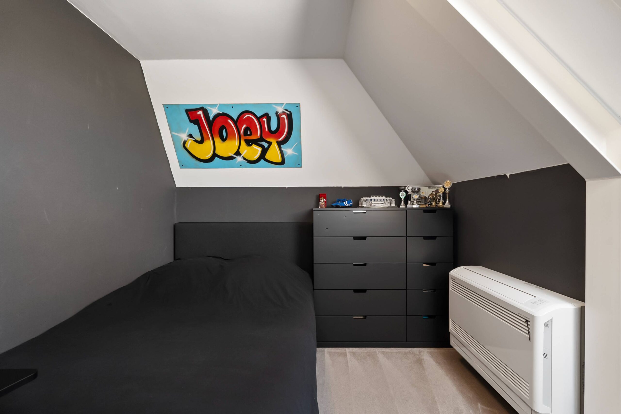 Op de 2e verdieping nog 2 riante slaapkamers met elektrische zonwering in de dakramen. Ook hier airco aanwezig. Het witgoed is hier ook opgesteld. Vlizotrap nog naar bergvliering.