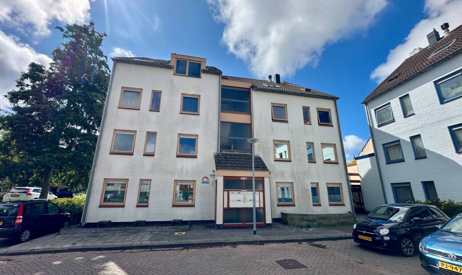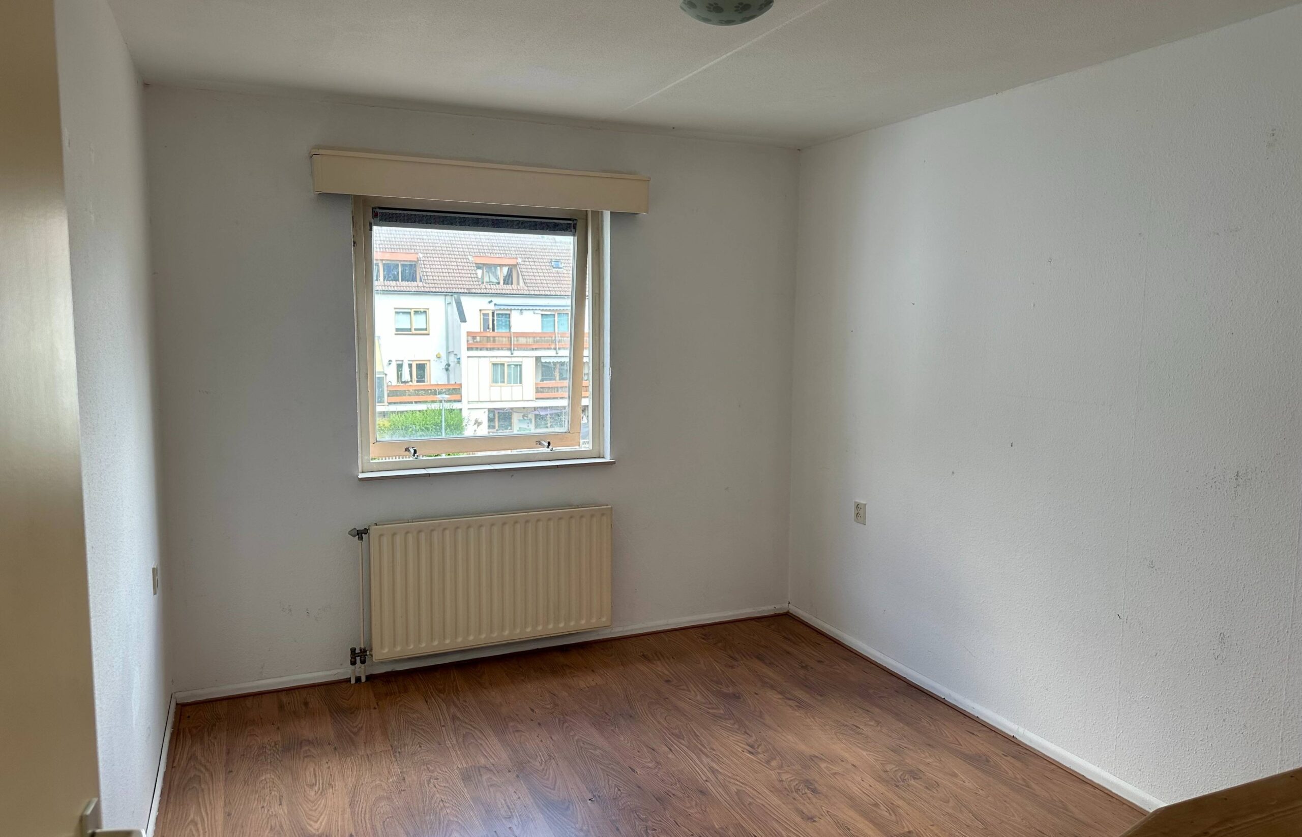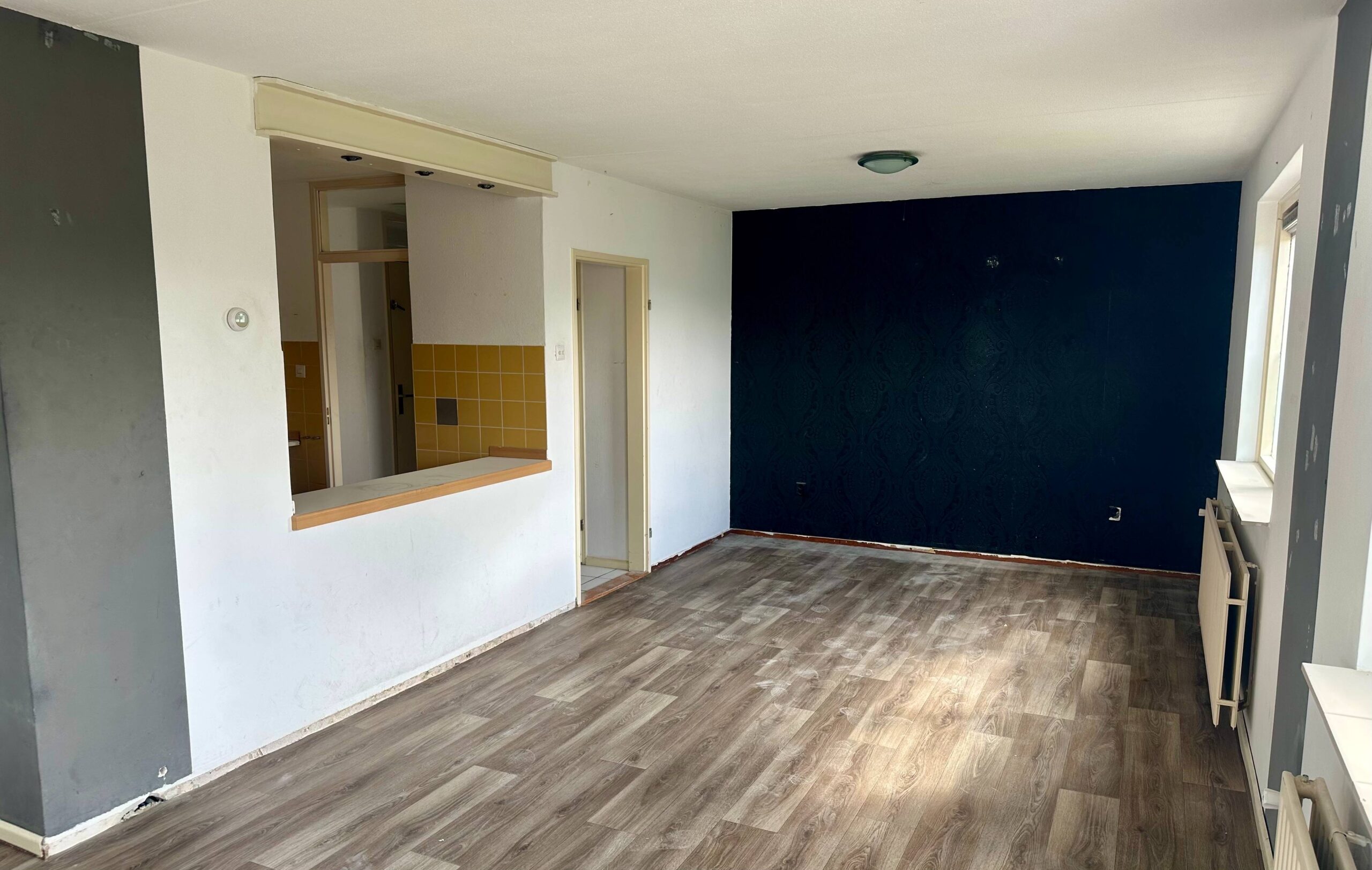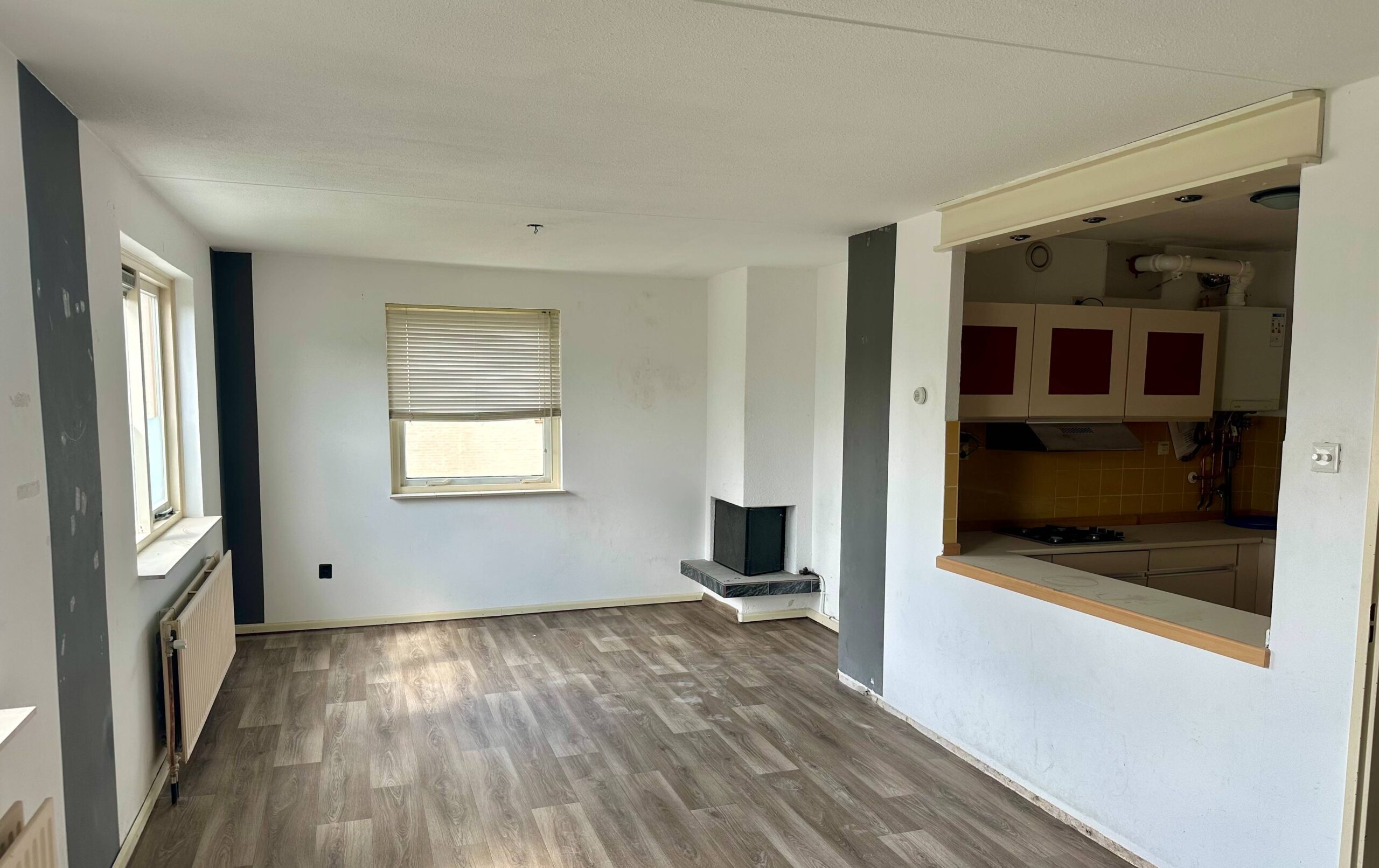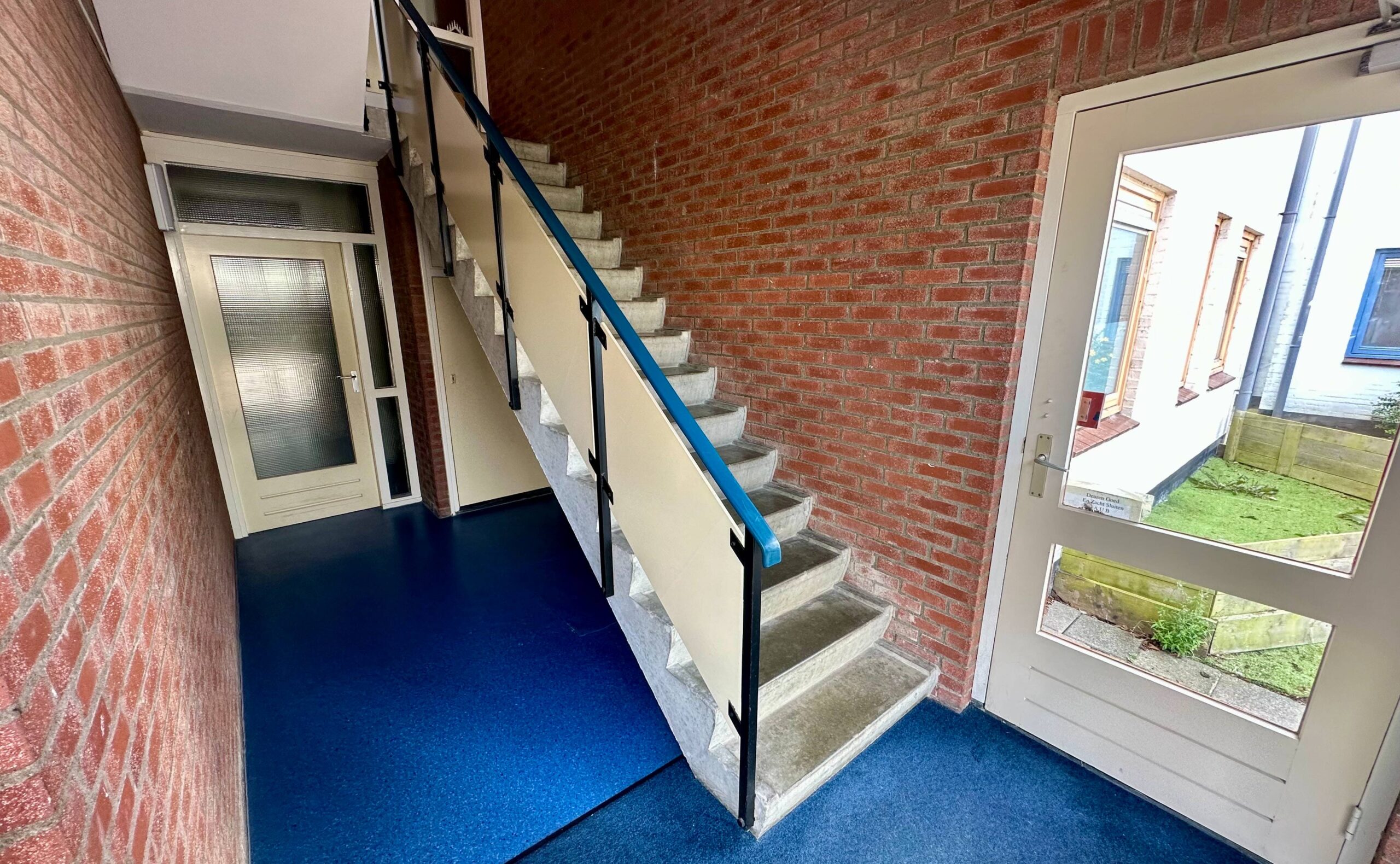 Centrale entree met postvakken en trapopgang. Entree appartement op de tweede verdieping. Bij binnenkomst betreed je de hal met meterkast en toiletruimte. Vanuit hier heb je toegang tot de ruime woonkamer met grote raampartijen die zorgen voor een prettige lichtinval. De neutrale vloer en wanden vormen een goede basis voor een frisse update.