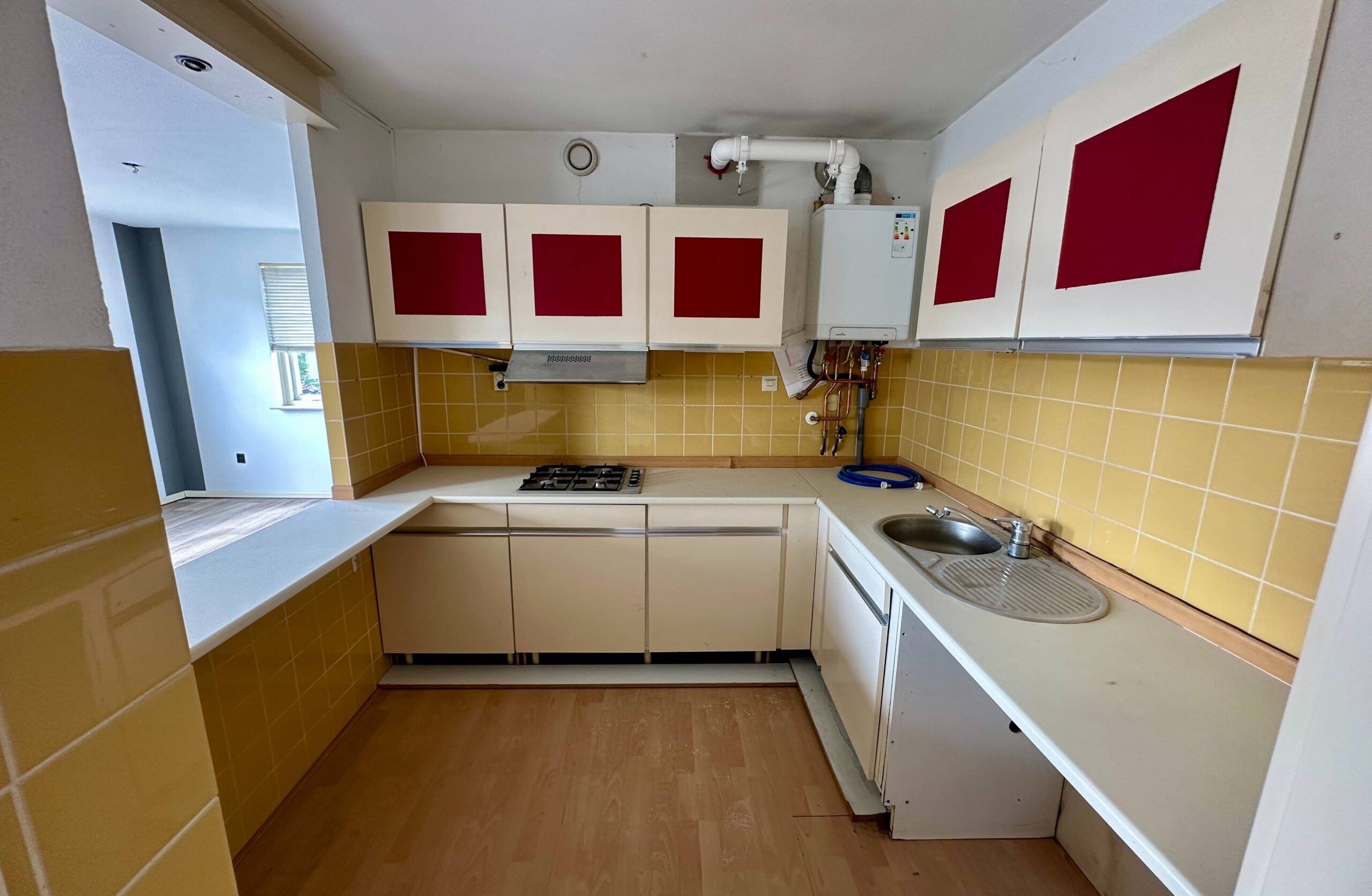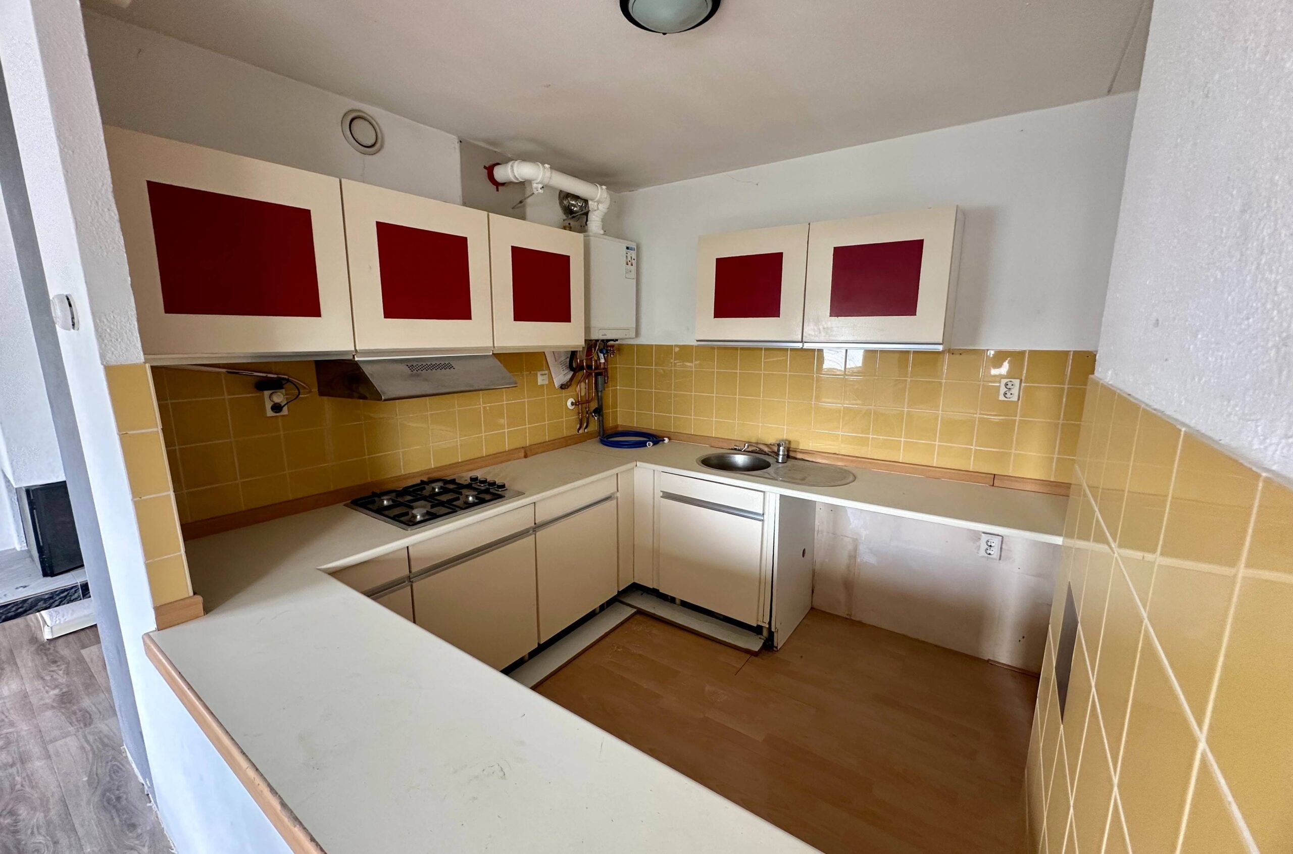 De keuken is opgesteld in een u-vorm en voorzien van een gaskookplaat en afzuigkap. Ook de opstelling van de cv-ketel bevindt zich in de keuken. De twee slaapkamers zijn verrassend ruim – beide geschikt voor een tweepersoonsbed en kastruimte. De badkamer is functioneel ingericht met een ligbad, aparte douche, wastafel en de aansluiting voor de wasmachine.