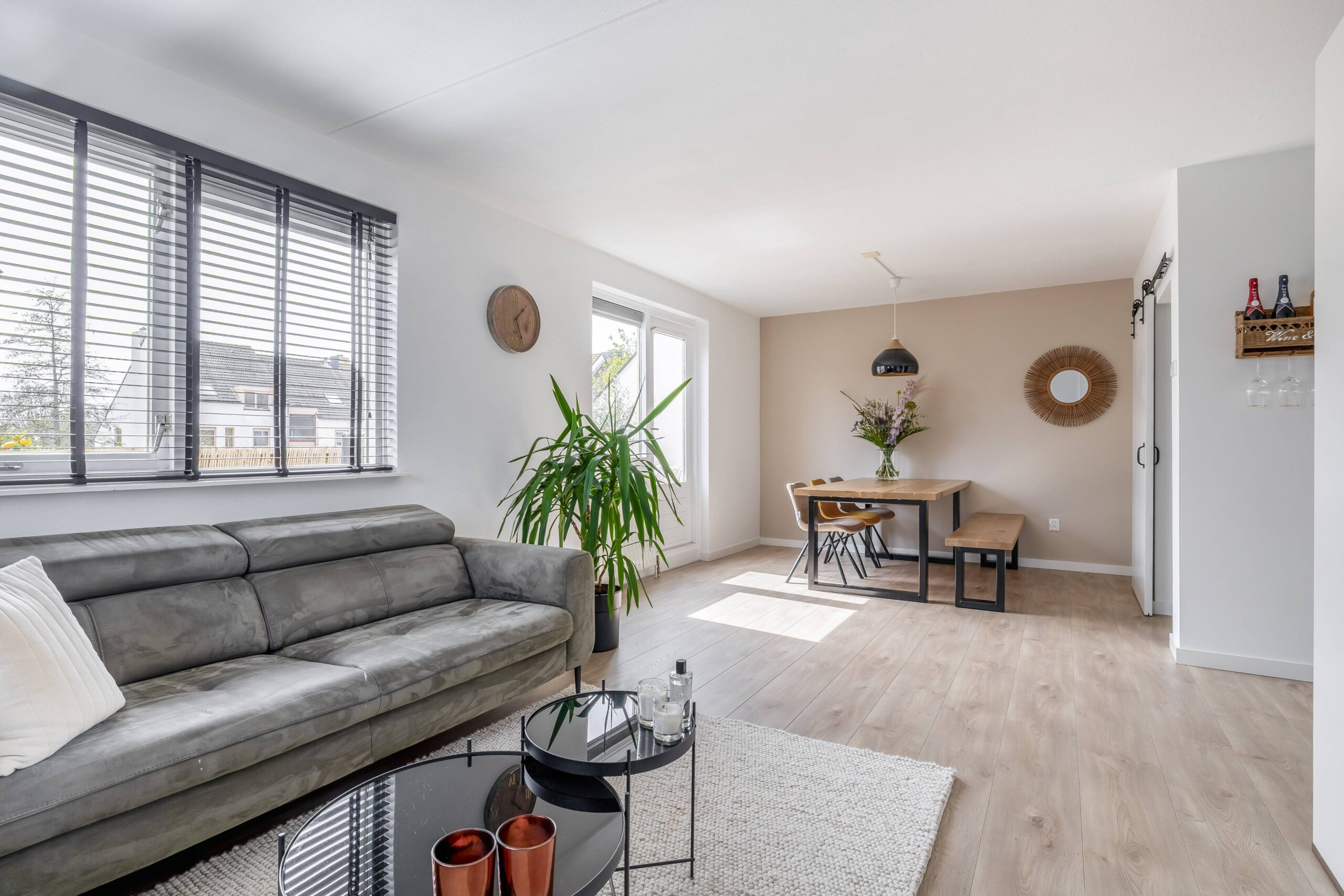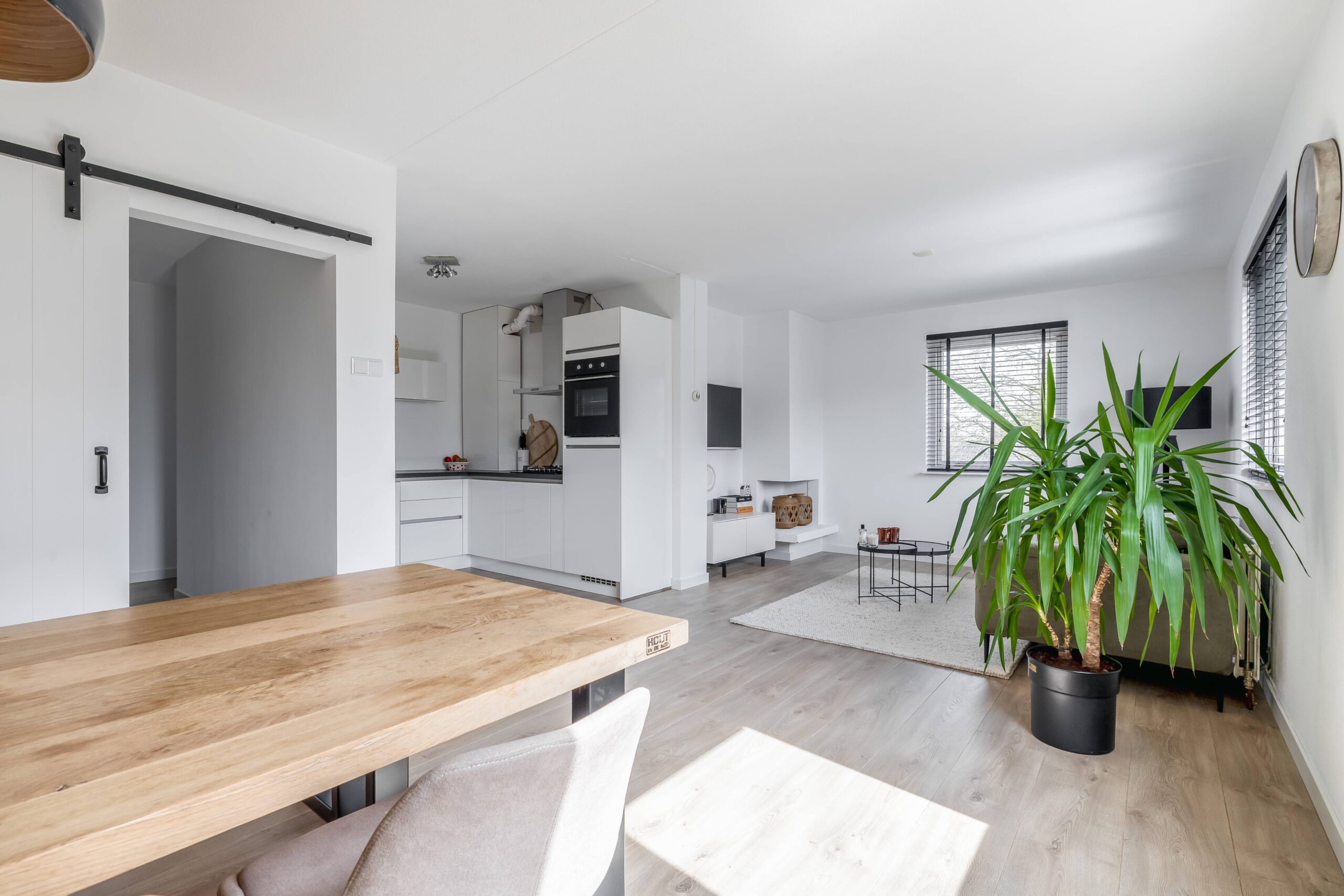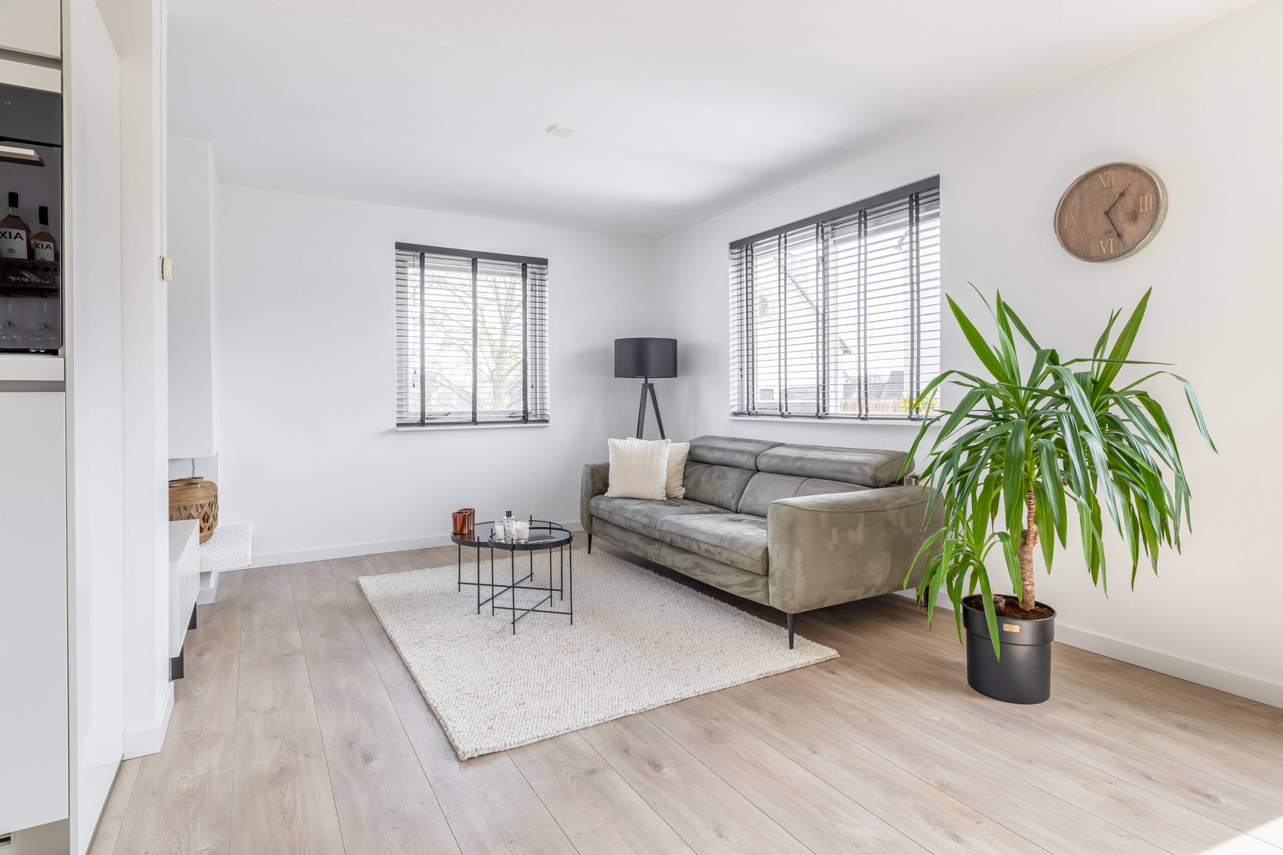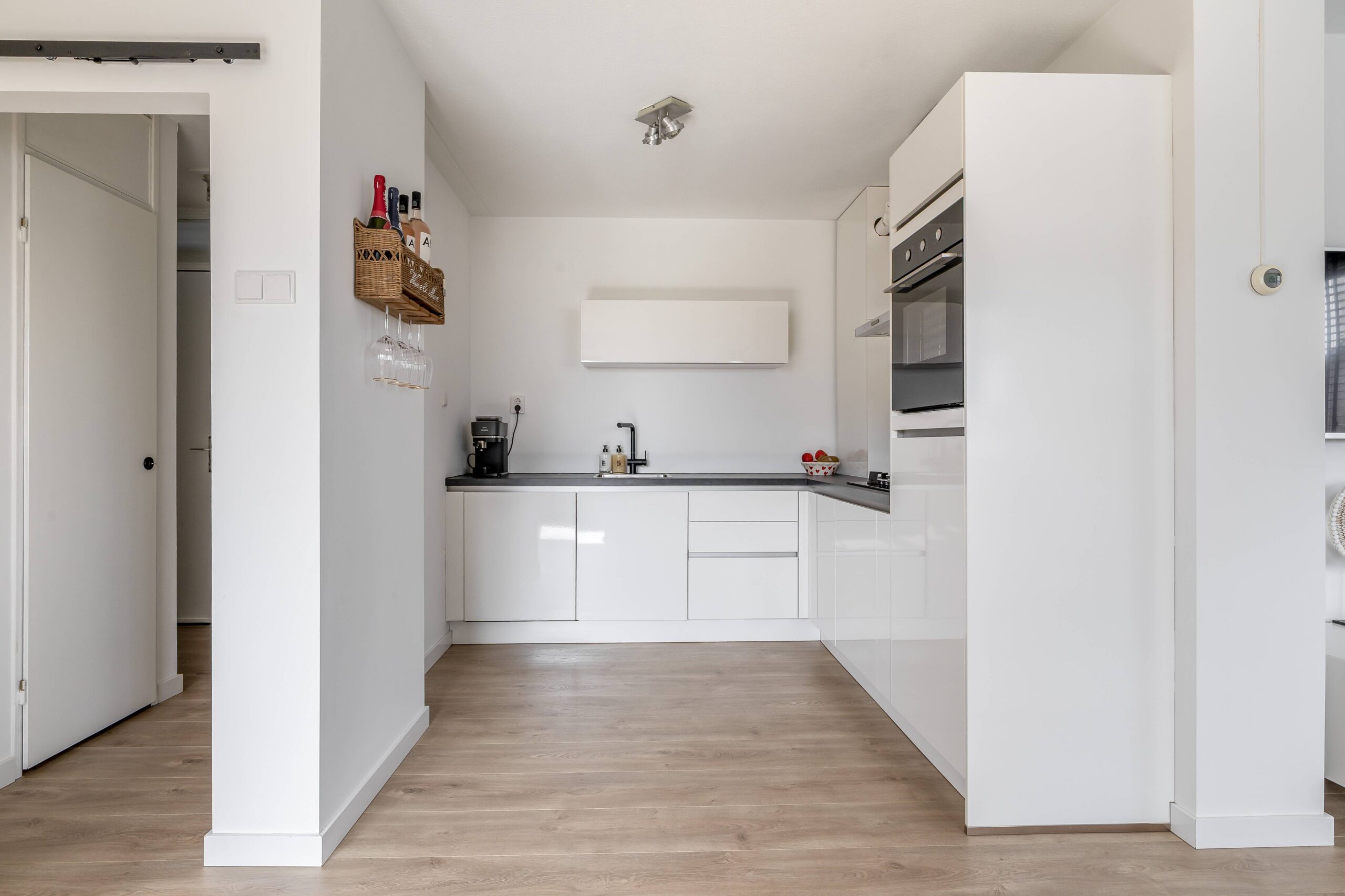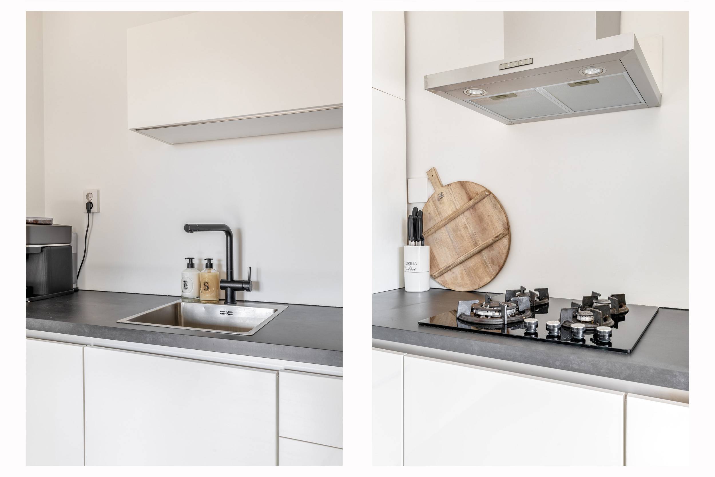 Bij binnenkomst valt direct de nette en moderne afwerking op. De woonkamer is licht en uitnodigend, met voldoende ruimte voor een gezellige zit- en eethoek. De open keuken is uitgevoerd in een neutrale kleurstelling en voorzien van alle wenselijke inbouwapparatuur: een gaskookplaat, afzuigkap, koelkast, combioven en vaatwasser. De CV-ketel is keurig weggewerkt in een keukenkast.