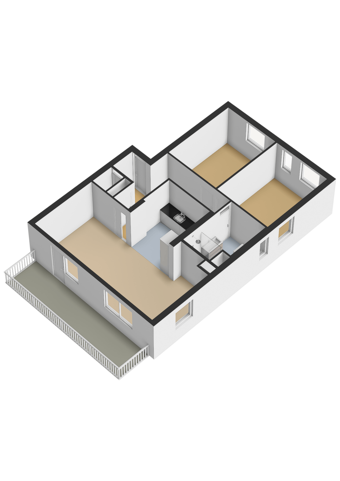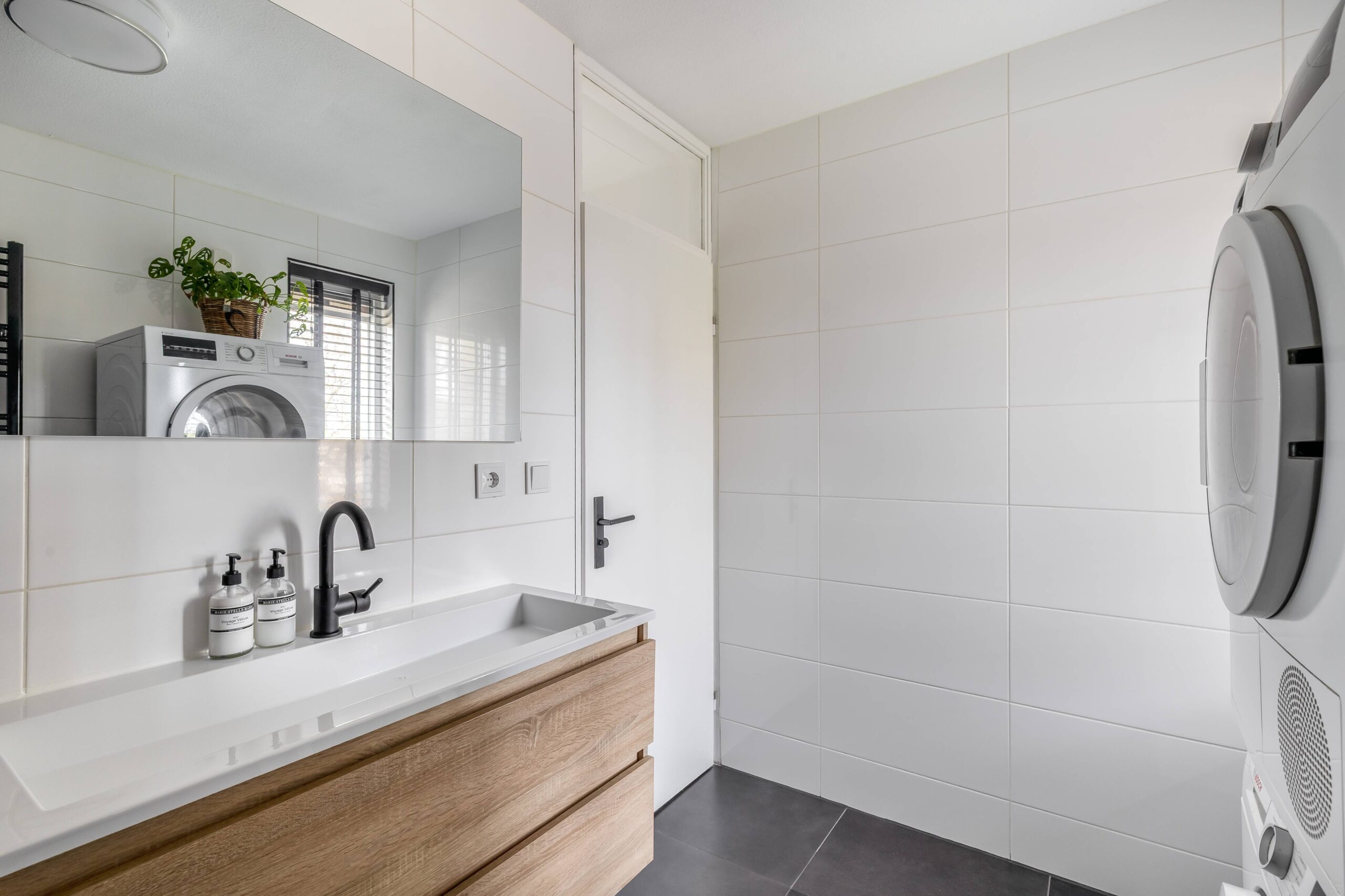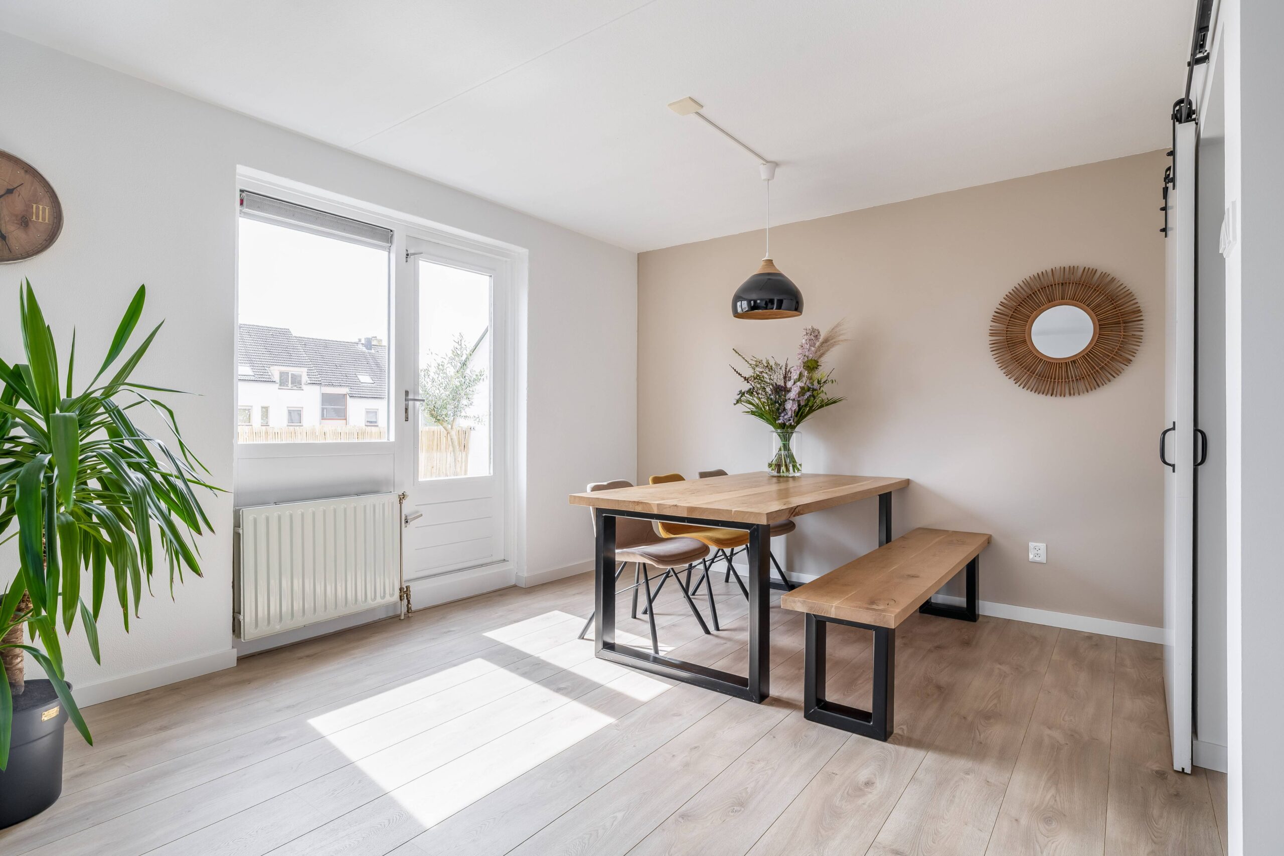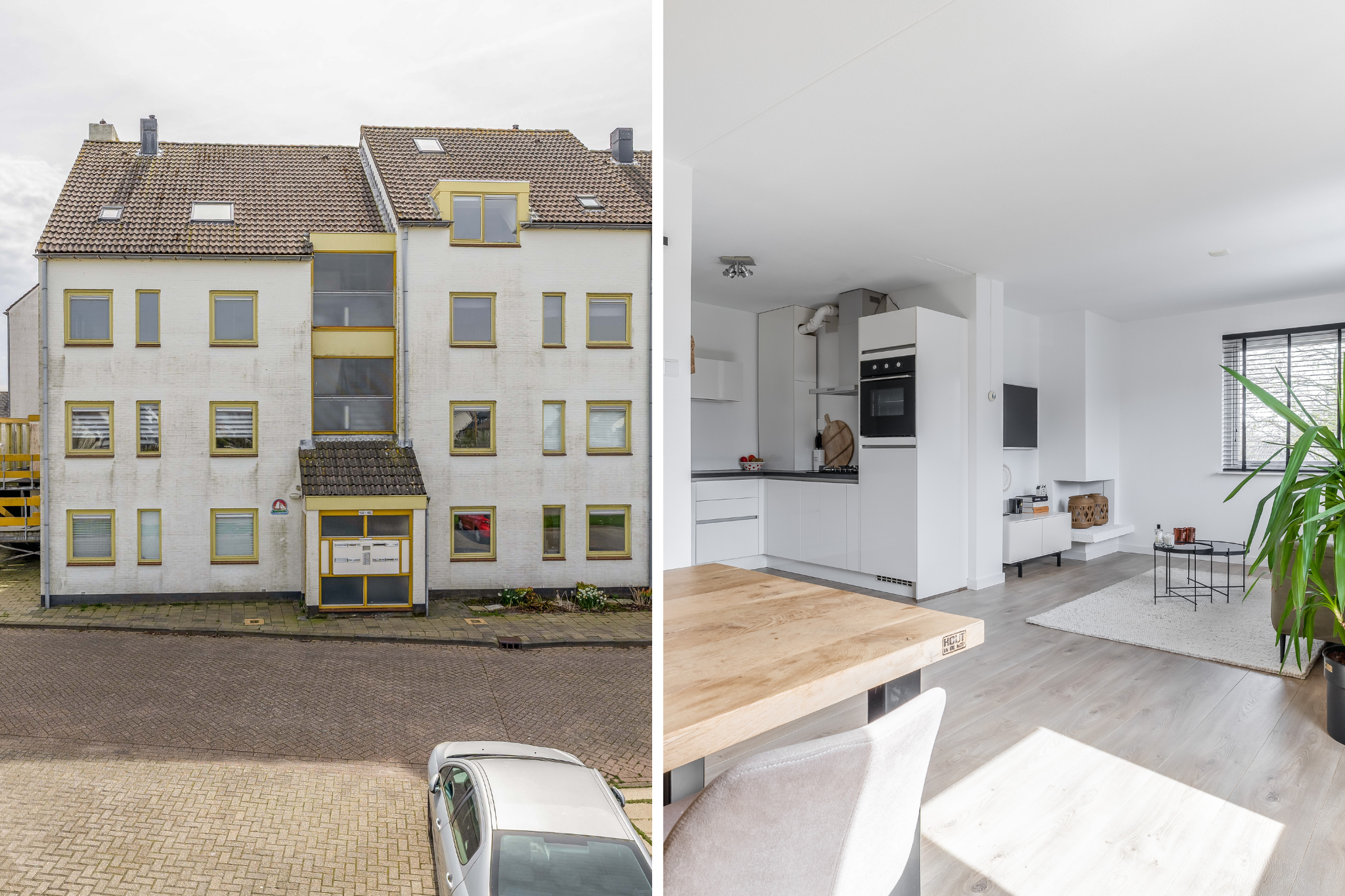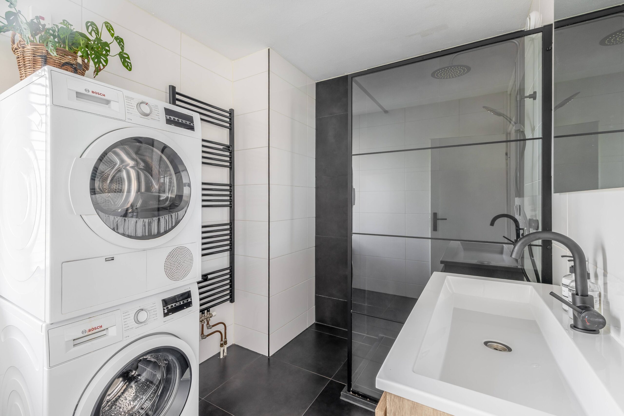 Bij binnenkomst valt direct de nette en moderne afwerking op. De woonkamer is licht en uitnodigend, met voldoende ruimte voor een gezellige zit- en eethoek. De open keuken is uitgevoerd in een neutrale kleurstelling en voorzien van alle wenselijke inbouwapparatuur: een gaskookplaat, afzuigkap, koelkast, combioven en vaatwasser. De CV-ketel is keurig weggewerkt in een keukenkast.