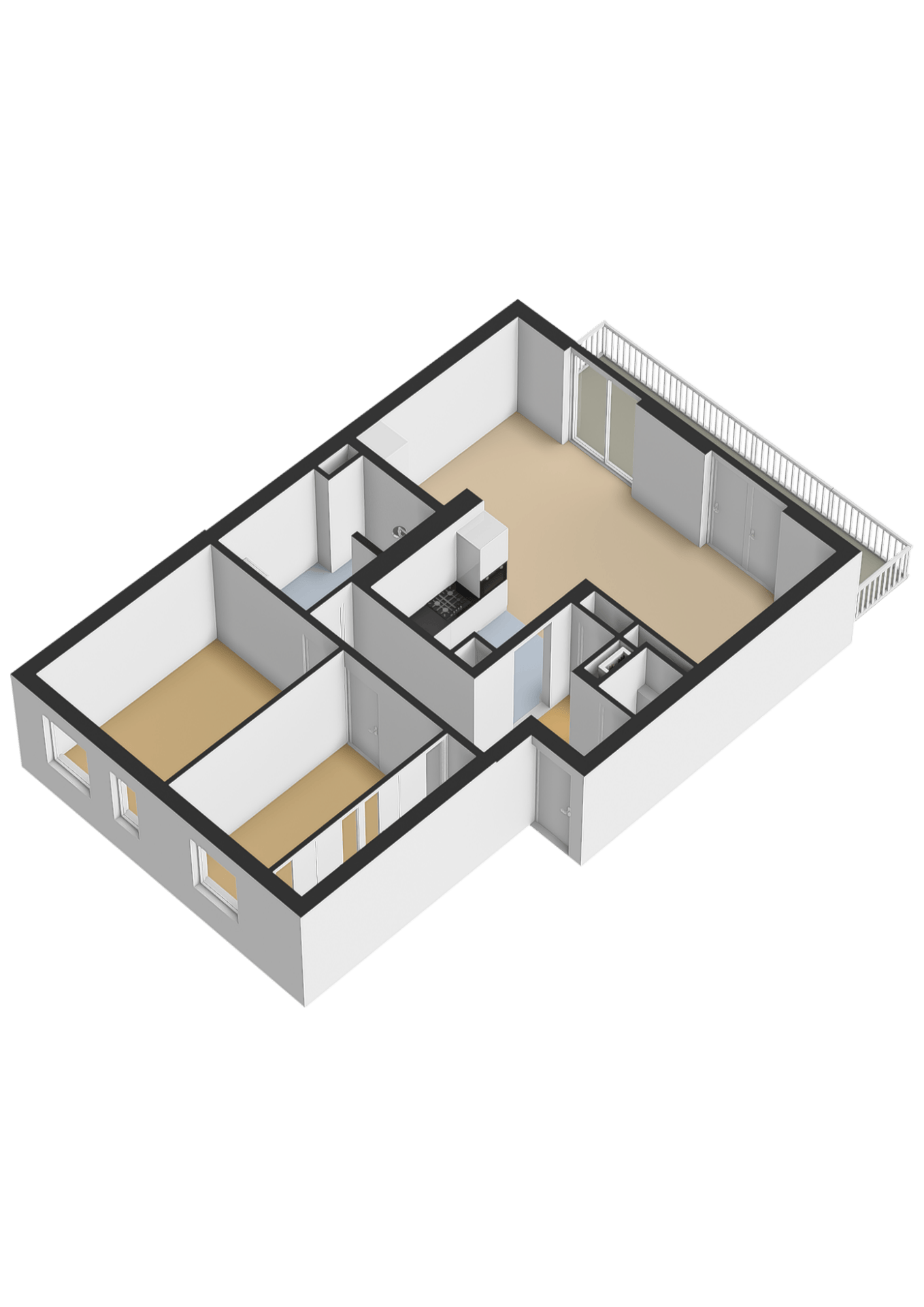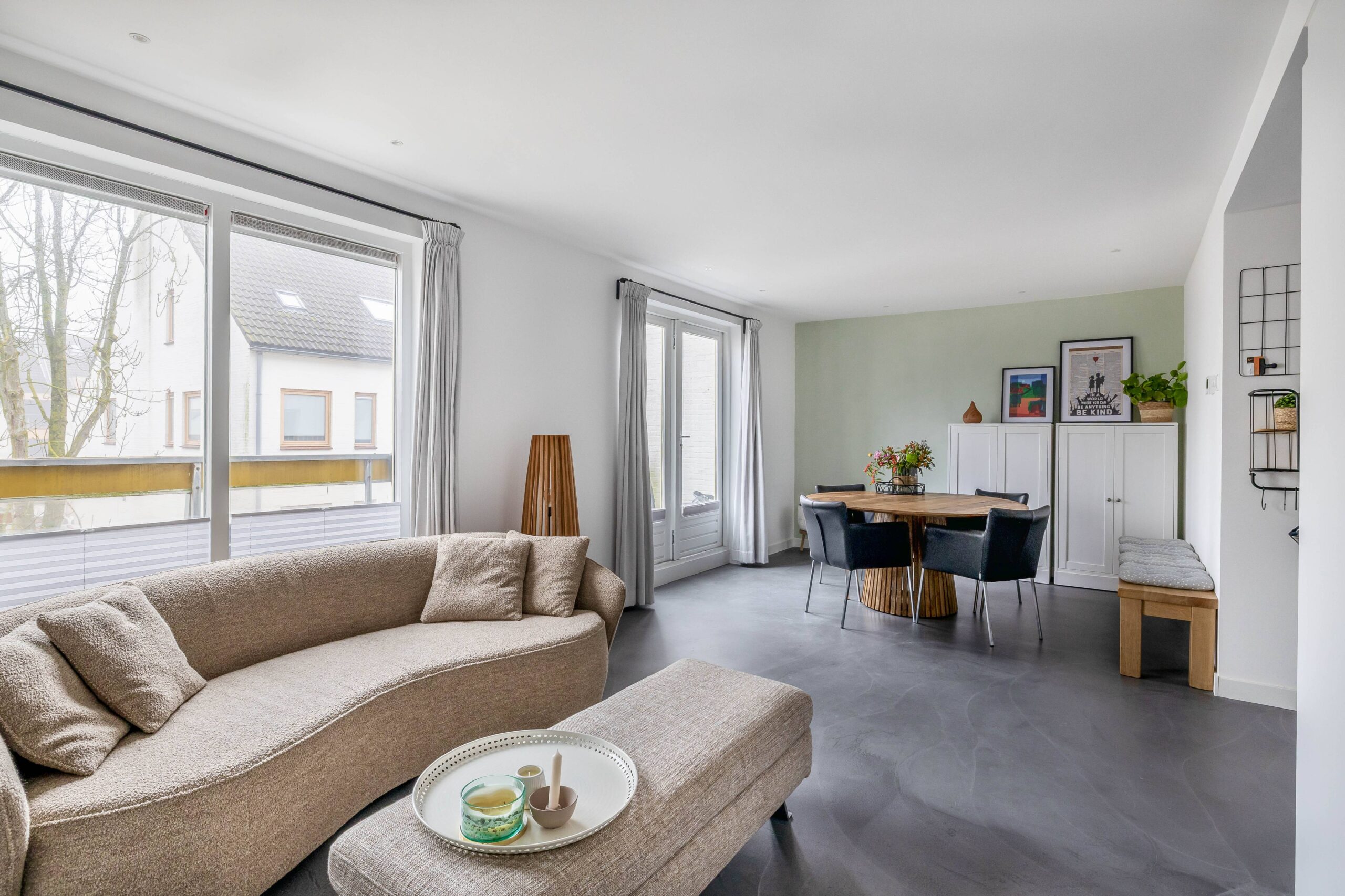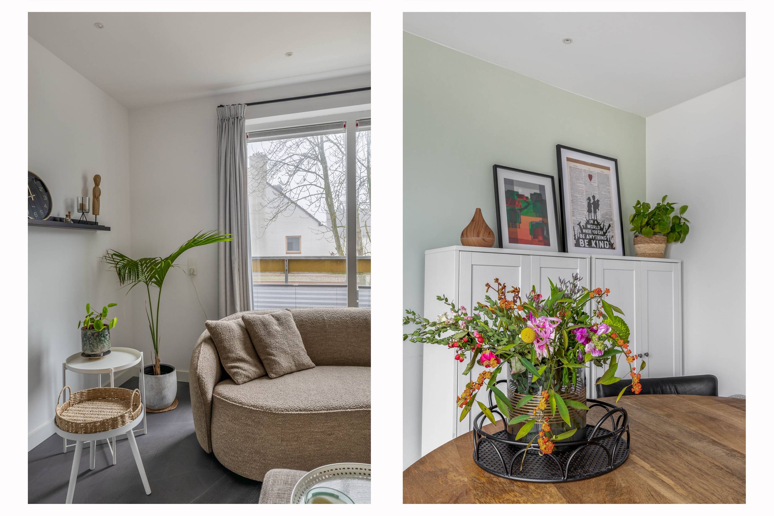 De woonkamer is ruim en licht en via de openslaande tuindeuren bereik je het balkon over de gehele breedte van het appartement. Deze is op het zonnige zuiden gelegen, dus een heerlijke plek om van de middag- en avondzon te genieten.
