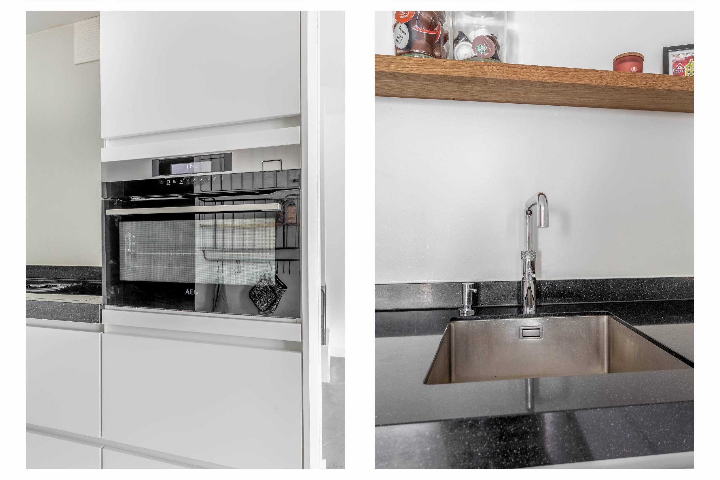 De moderne keuken is voorzien van een inductiekookplaat met geïntegreerde afzuiging, een koel-vriescombinatie, stoomoven, vaatwasser, Quooker en zeeppompje. De cv-ketel is verplaatst naar de vaste kast in de hal en vernieuwd in 2020.