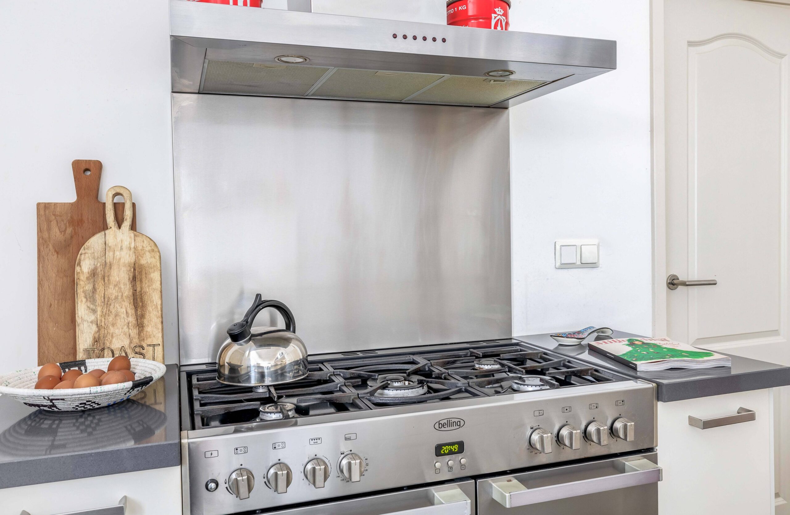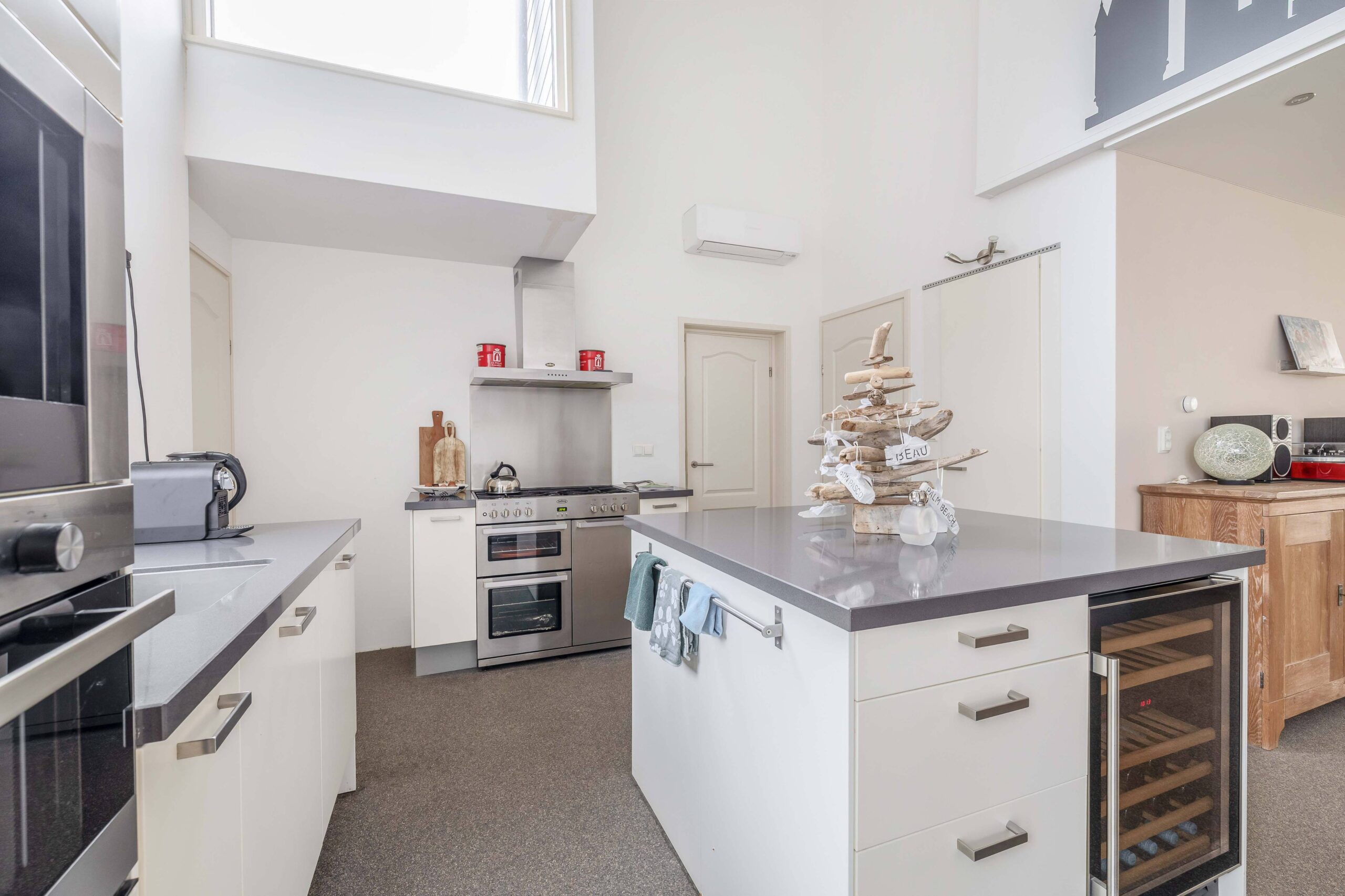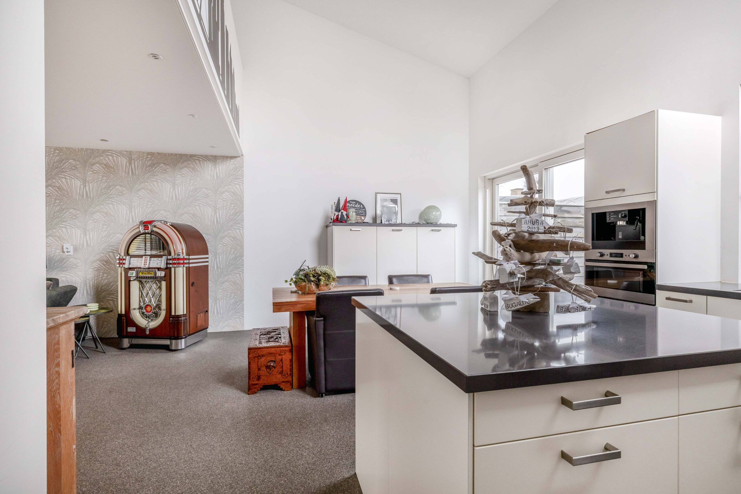 Bijkeuken met keukenblok en opstelling van het witgoed. Alles netjes weggewerkt. Kast met opstelling van de CV ketel (’23). Deur naar de tuin en de praktijkruimte/voormalige garage. Deze is voorzien van voorzetwanden, kunststof pui en deur en dakisolatie.