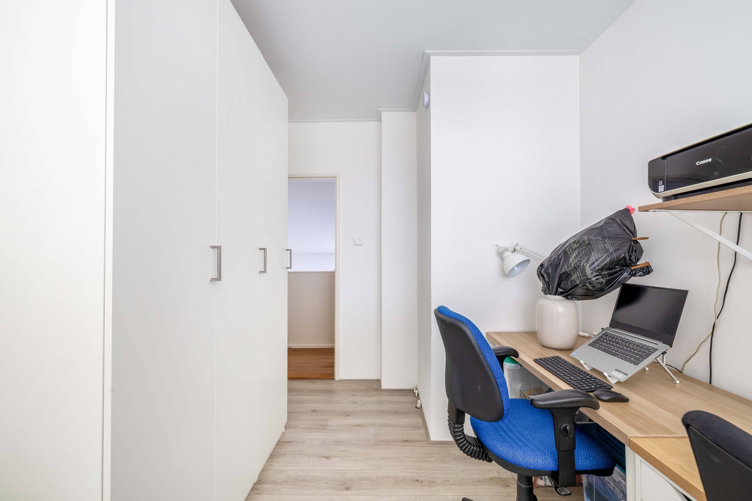De hoofdslaapkamer is op de begane grond met daarnaast de 2e kamer thans in gebruik als inloopkast. Tussen de slaapkamers de luxe badkamer (’20) met een lichtkoepel, inloopdouche met stort en handdouche, wastafelmeubel, 2e vrijdragend toilet, vloerverwarming en designradiator.