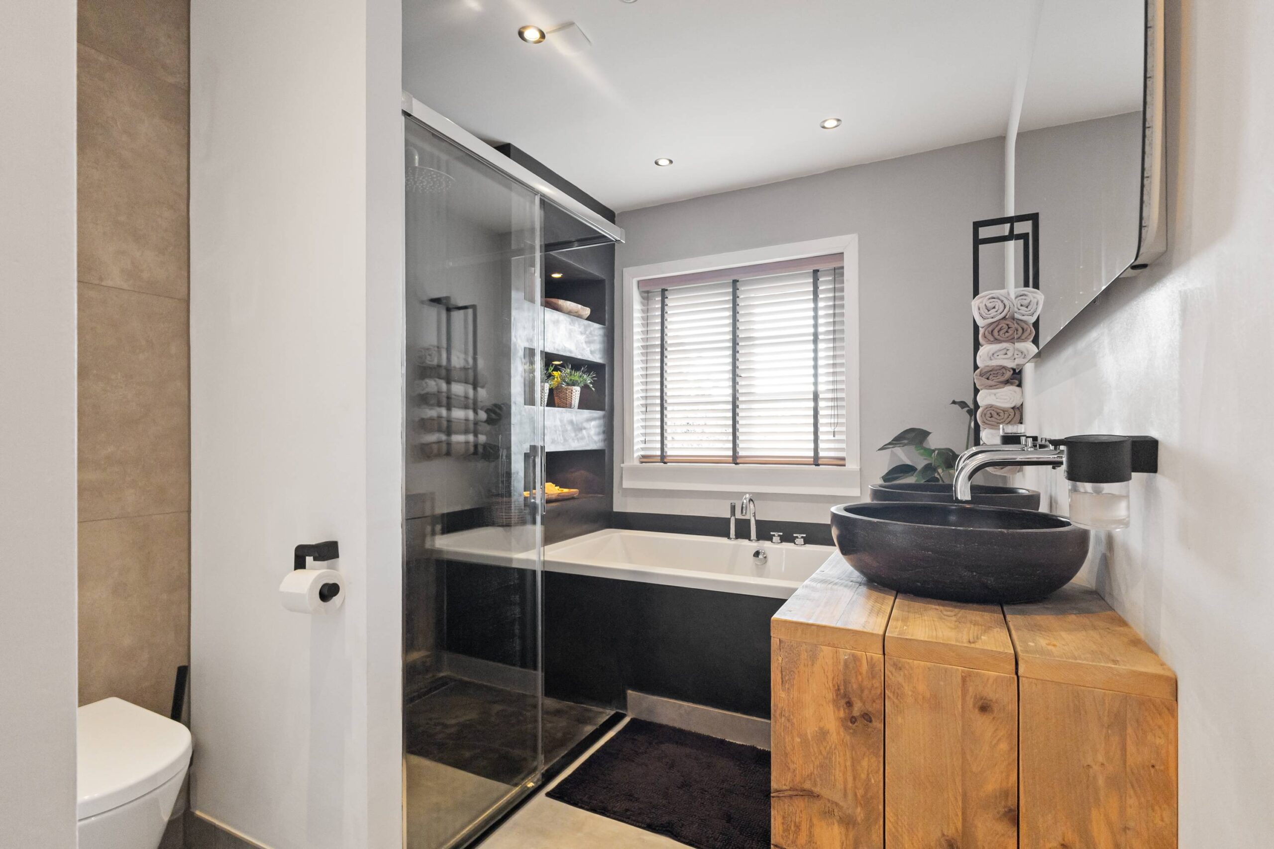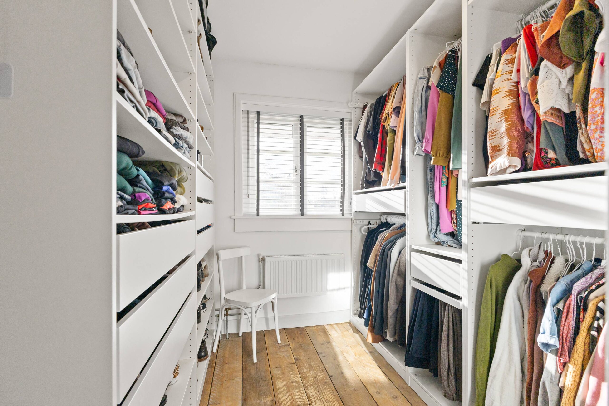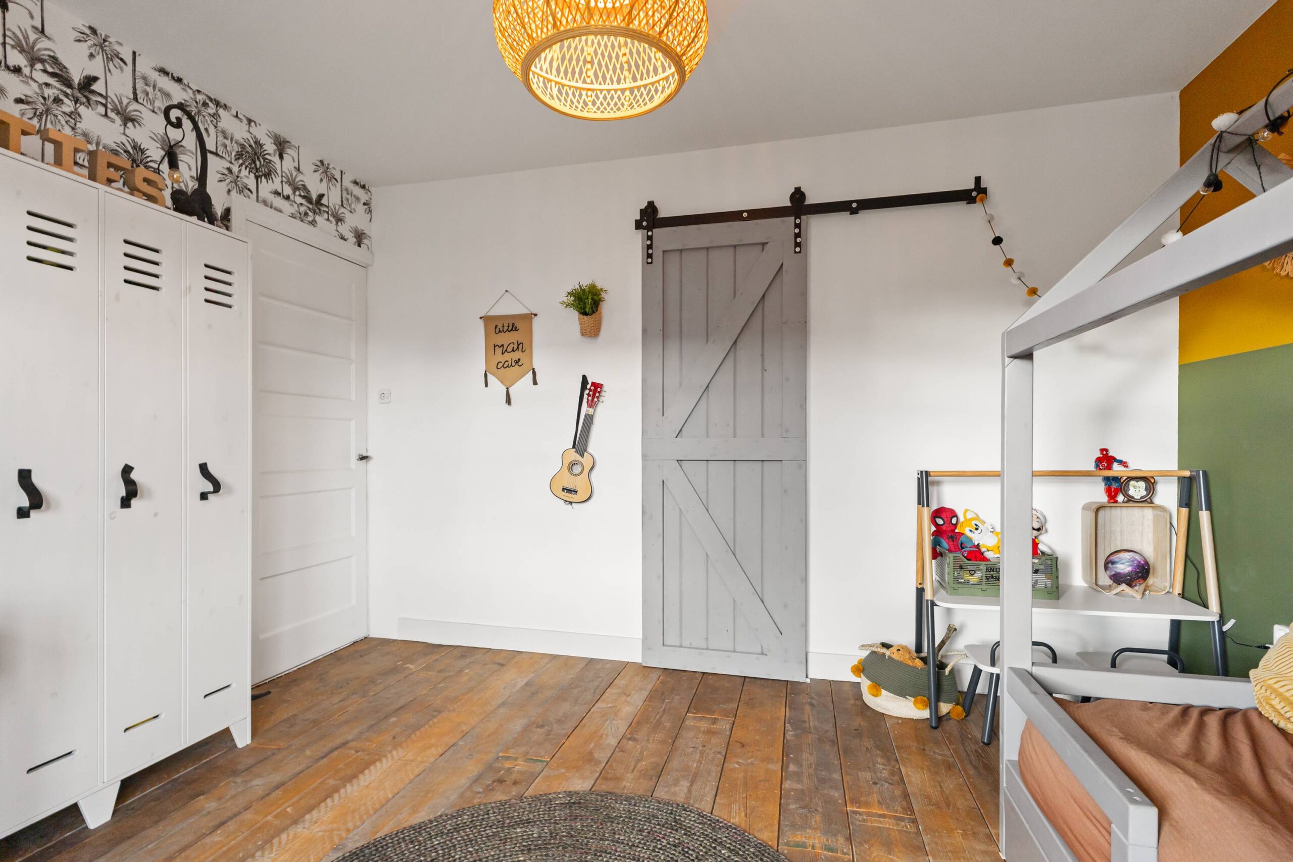 Een inbouwkast op de overloop met de CV ketel (’16) en de opstelling voor het witgoed. Vaste trap naar zolder waar je een balzaal hebt als slaapkamer. Mooie grote Velux dakramen en veel sfeer. Het dak zelf is vernieuwd in 2019 en is geïsoleerd.