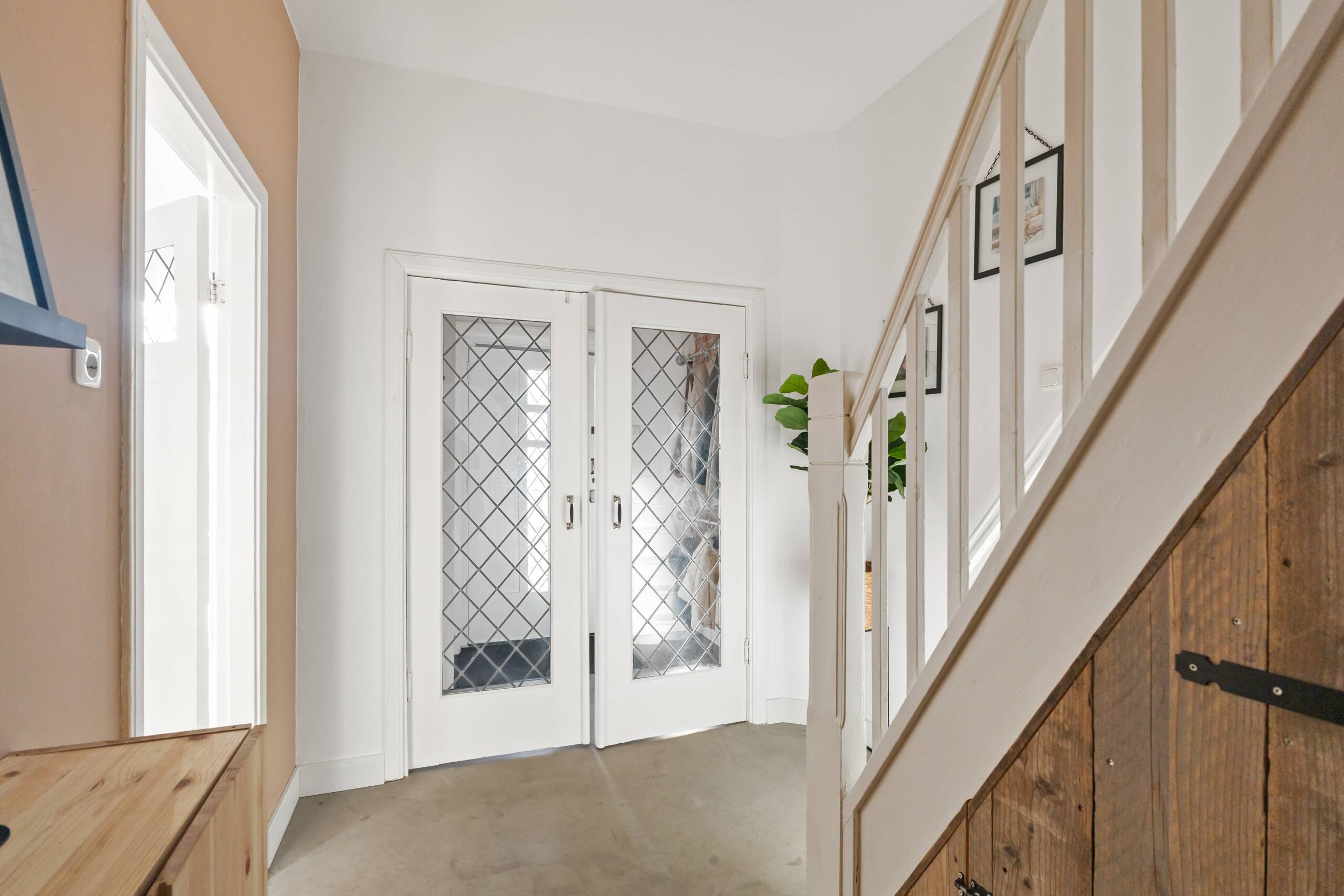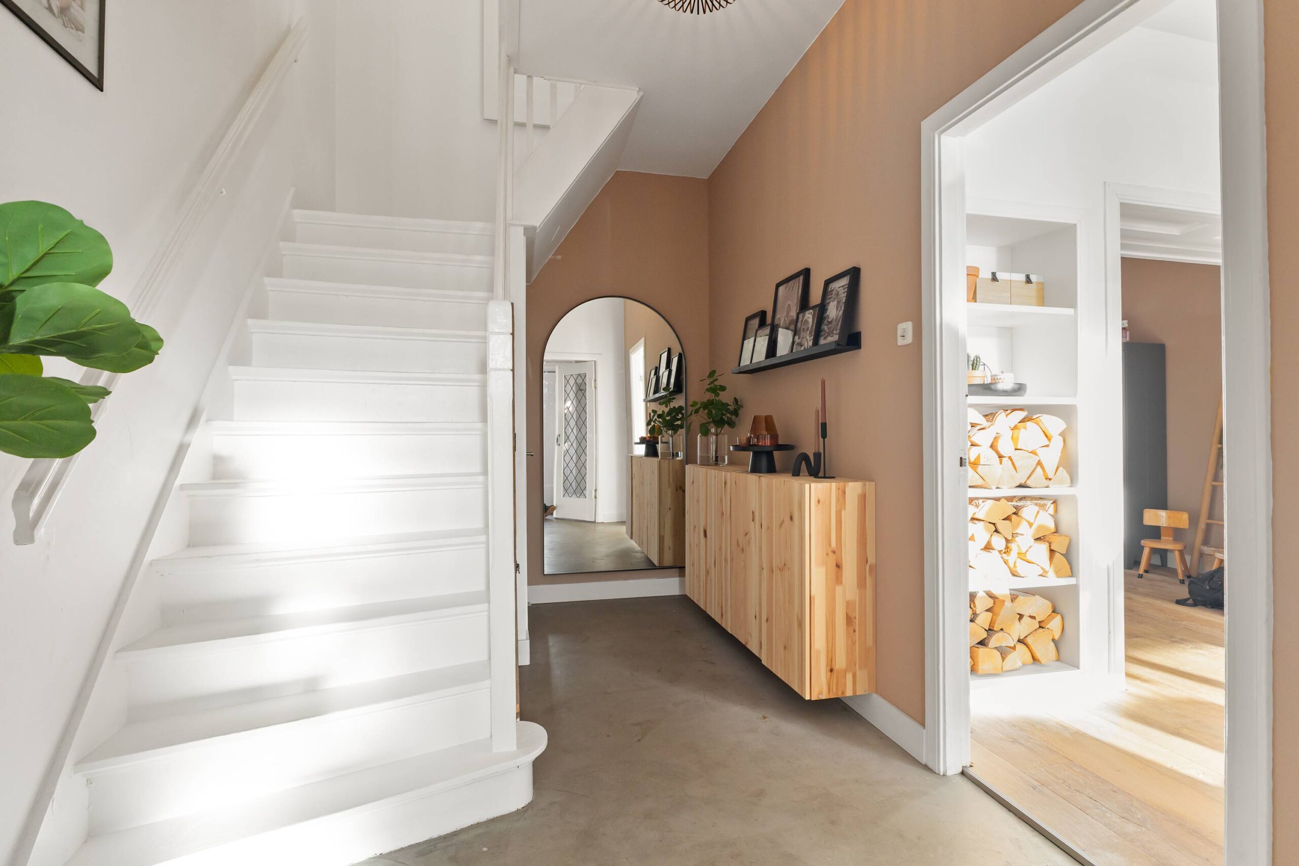 Het begint al op de Prins Willem-Alexandersingel zelf qua aangezicht. Ruime voortuin met erker en balkon op de 1e verdieping. Mooie houten deur geeft toegang tot het ruime voorportaal met veel ruimte voor de jassen, een kast en de meterkast (8 groepen en dubbele aardlekschakelaar). Dubbele deuren met glas in lood naar de hal. Hier vind je het toilet welke luxe is afgewerkt en de trapopgang met een kast eronder.