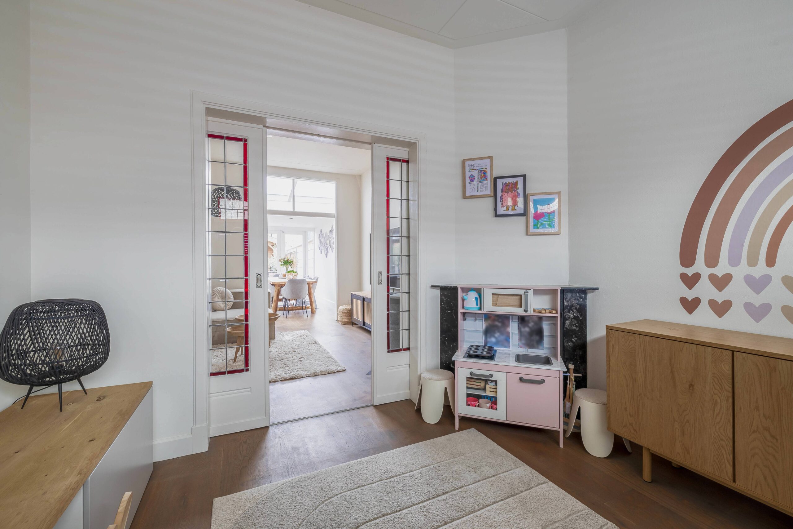 Soms zeggen foto’s inderdaad meer dan woorden. Toch vertellen we je graag wat deze goed onderhouden en ruime gezinswoning zo bijzonder maakt. De uitgebouwde begane grond biedt heerlijk veel leefruimte, terwijl authentieke elementen zoals de erker, glas-in-loodramen, kamer-en-suitedeuren en paneeldeuren zorgvuldig bewaard zijn gebleven. Precies zoals je het graag ziet bij een woning uit deze bouwperiode.