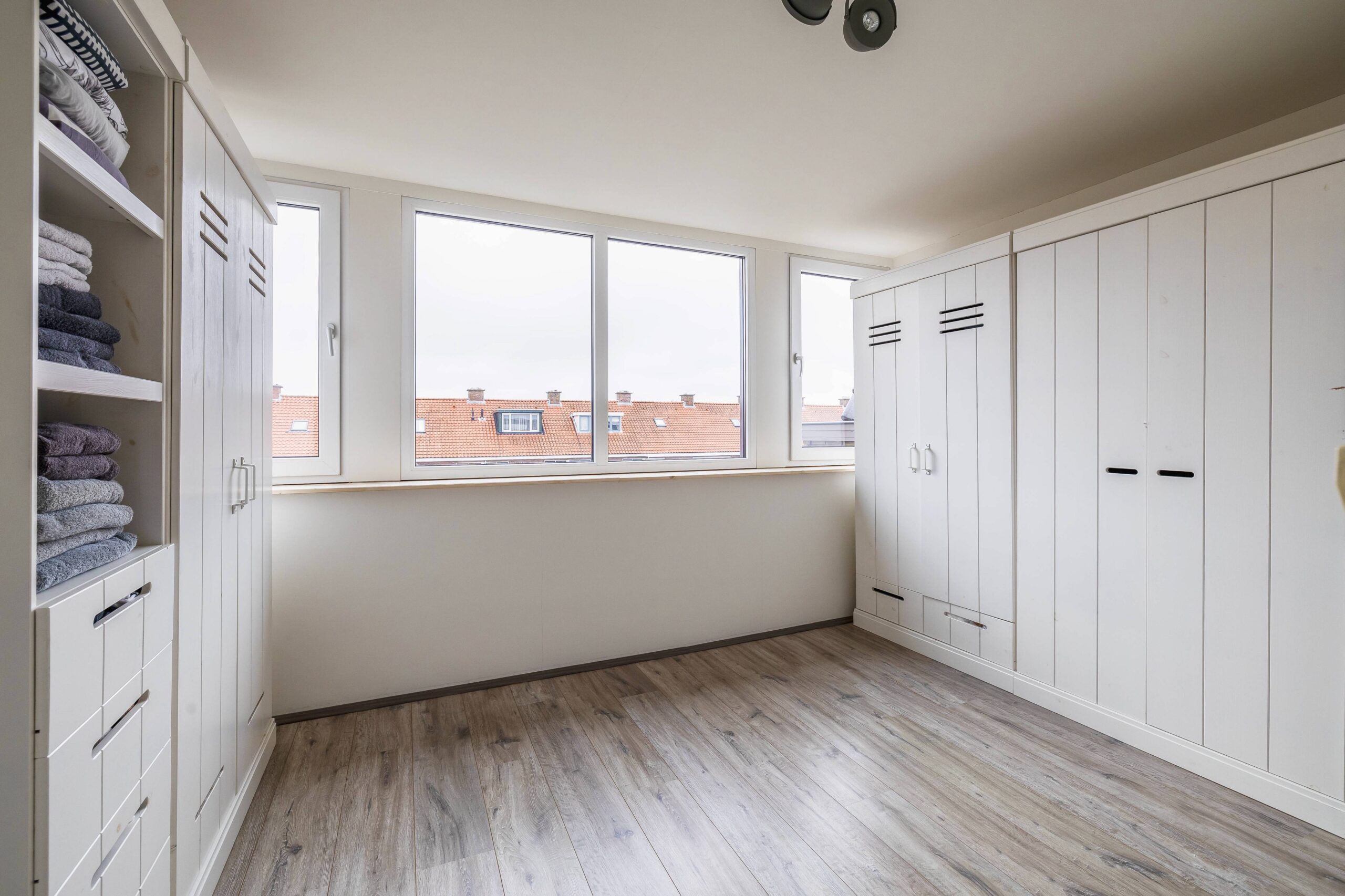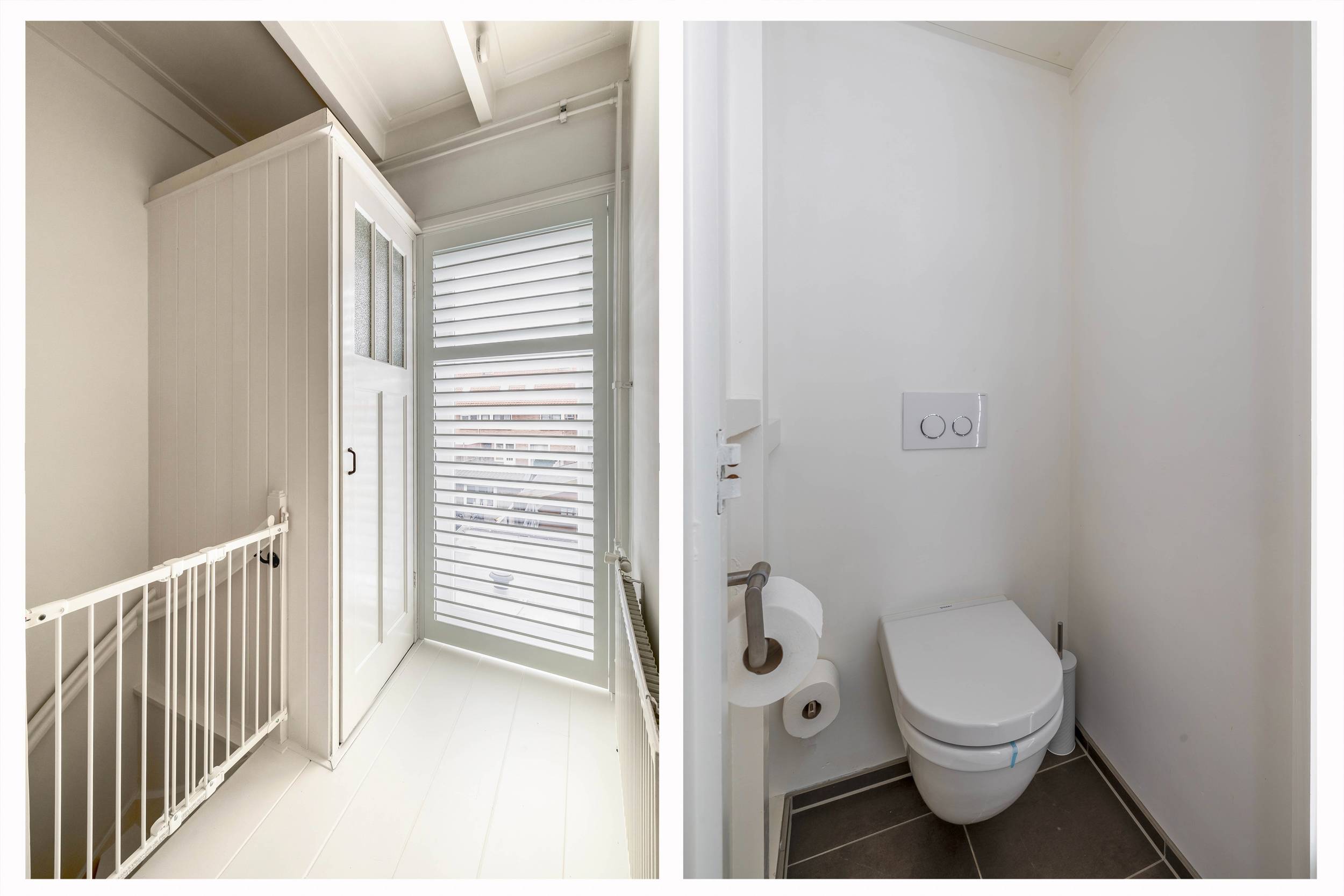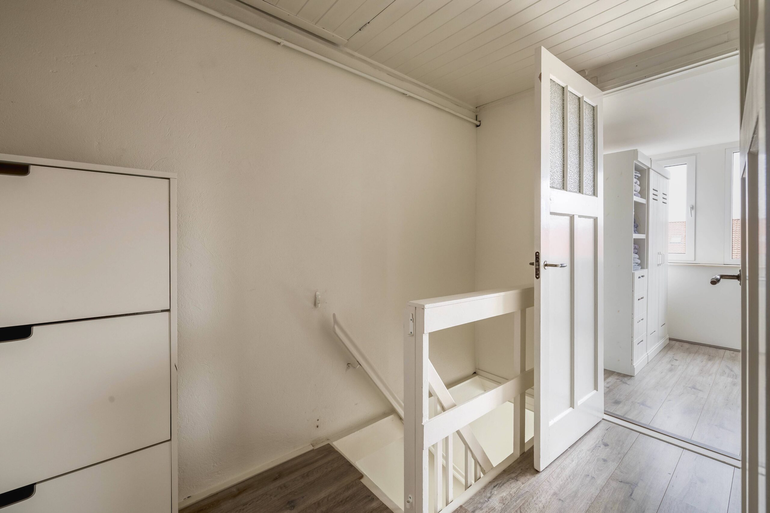 Op de tweede verdieping vind je nog eens twee grote slaapkamers en de opstelling van de cv-installatie en het witgoed.
